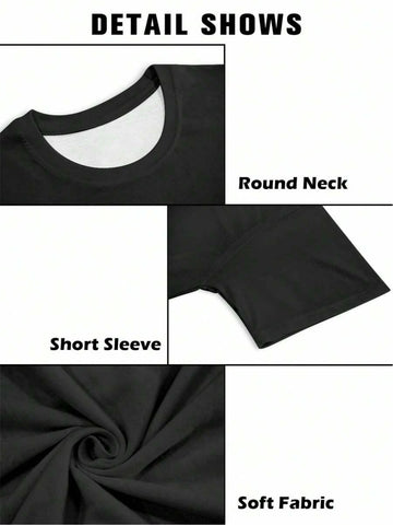 Lined For Added Warmth: No. Features: Softness. Activity: Daily & Casual. Pattern Type: Christmas. Neckline: Round Neck. Color: Men's-black. Sleeve Length: Short Sleeve. Length: Regular. Number of Pieces: 1 Piece Set. Fabric Elasticity: Slight Stretch. Material: Knitted Fabric. Composition: 100% Cotton. Pockets: No.