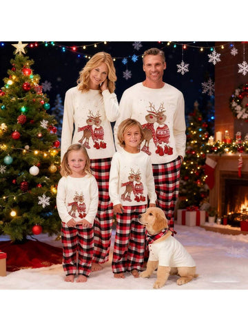 Season: Spring/Fall, Fall/Winter; Pattern Type: Christmas; Color: White Deer 1; Type: Pajama Sets; Neckline: Round Neck; Sleeve Length: Long Sleeve; Sleeve Type: Regular Sleeve; Number of Pieces: 2 Piece Set; Fit Type: Regular Fit; Underwear & Sleepwear Users: Family; Festivals: Christmas; Scenes: Home, Private Party; Fabric Elasticity: Slight Stretch; Length: Regular; Material: Composite Fabric; Belt: No; Sheer: No; Placket type: Pullovers.