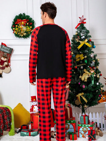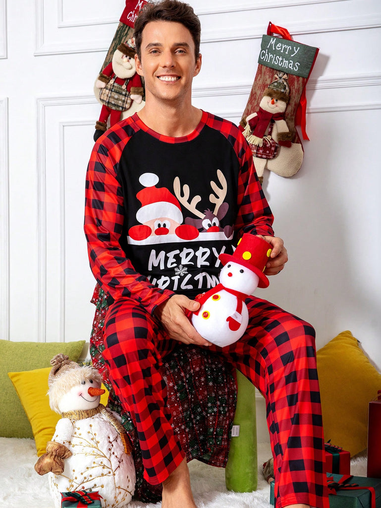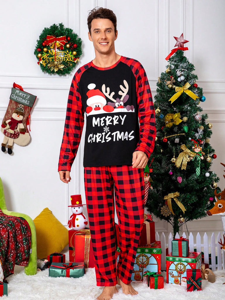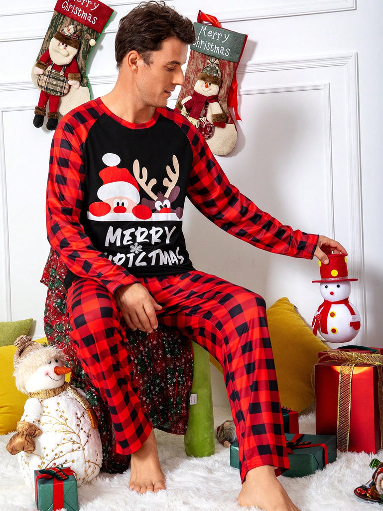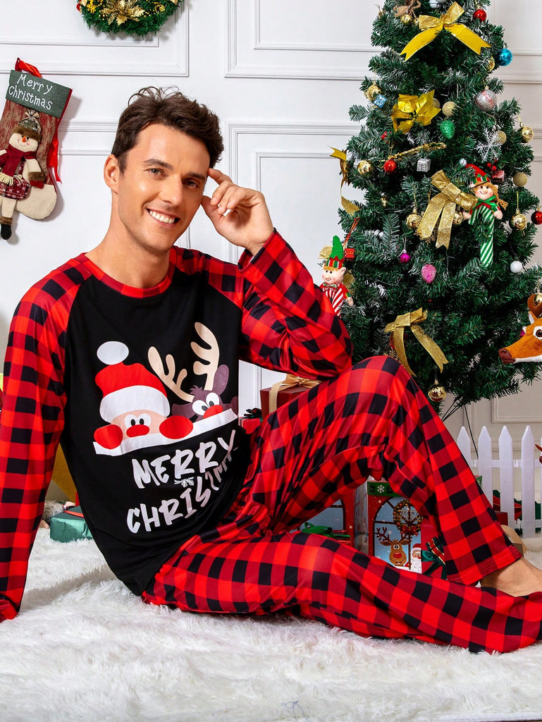 Autumn And Winter Christmas Men's Long-Sleeved Christmas Pants 2 Pieces Suit, Red Cartoon Christmas Print Rich Festive Atmosphere Skin-Friendly Comfortable Breathable Fabric Men's Home Clothing Suit