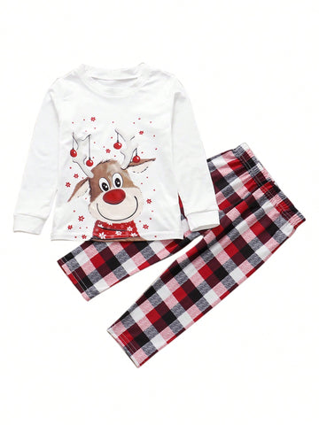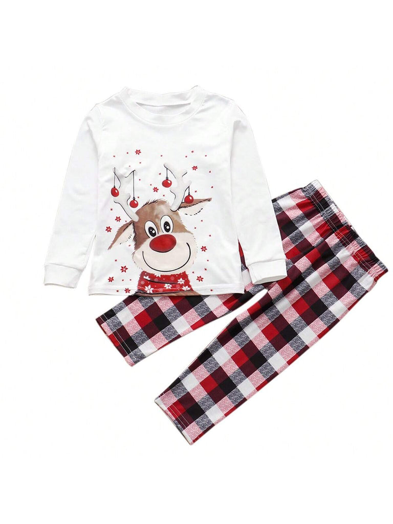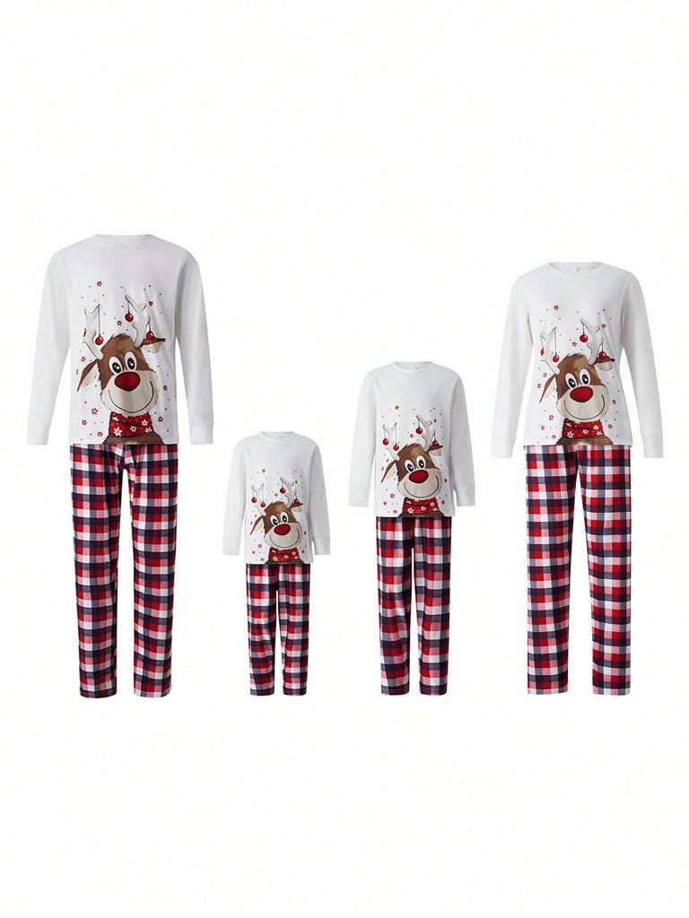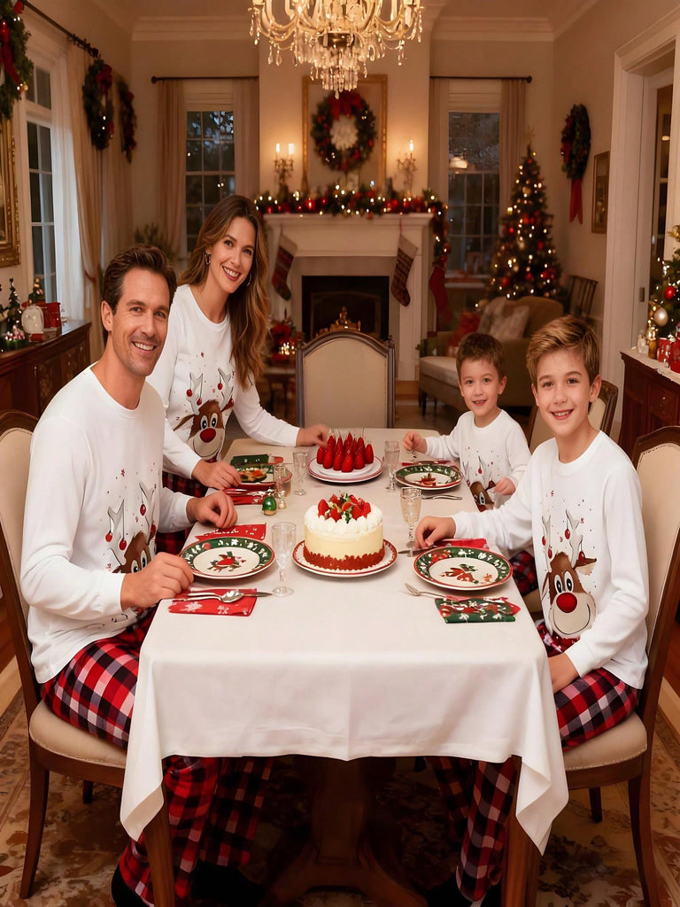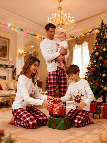 Christmas Family Pajama Set, Reindeer Pattern Top Long Stretch Pants Loungewear Set, Suitable For A Family Of Three, Christmas Loungewear Set, Parent-Child Set.