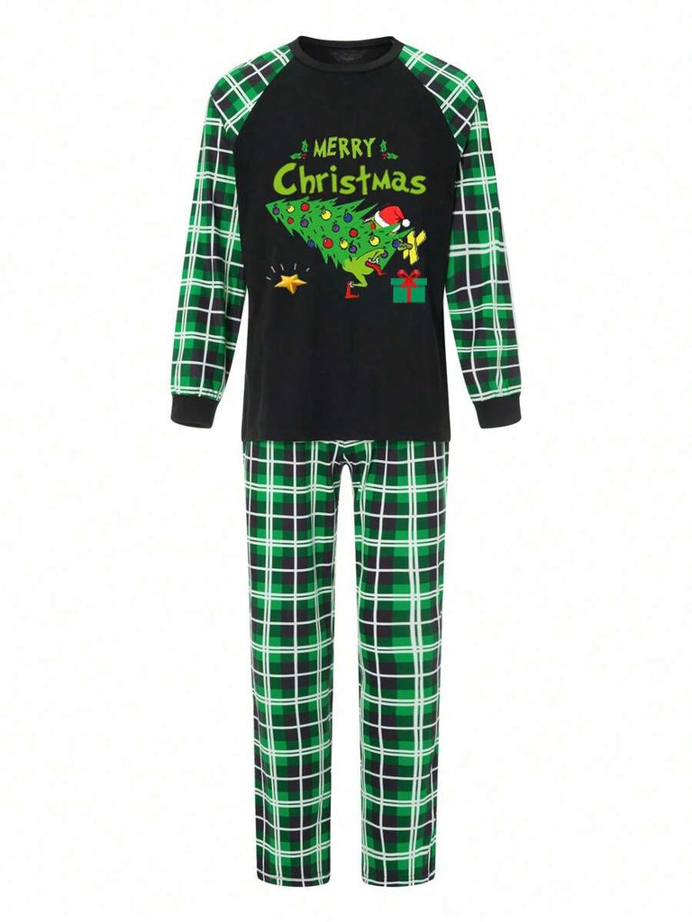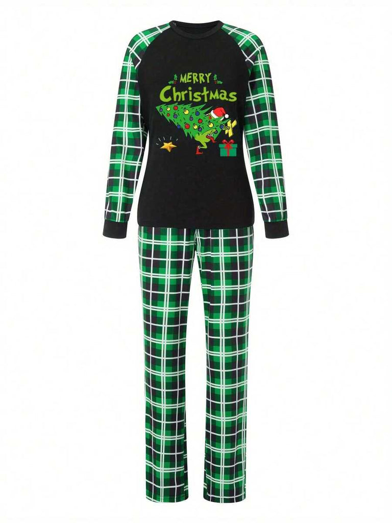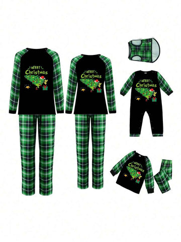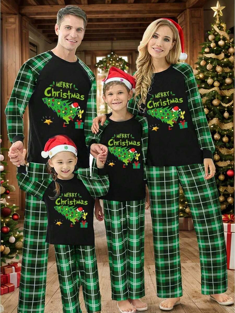 Christmas Family Pajamas Xmas Matching Set Funny Tree Print Long Sleeve Tops Trousers Set Holiday Nightwear