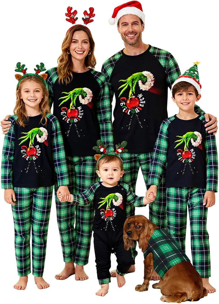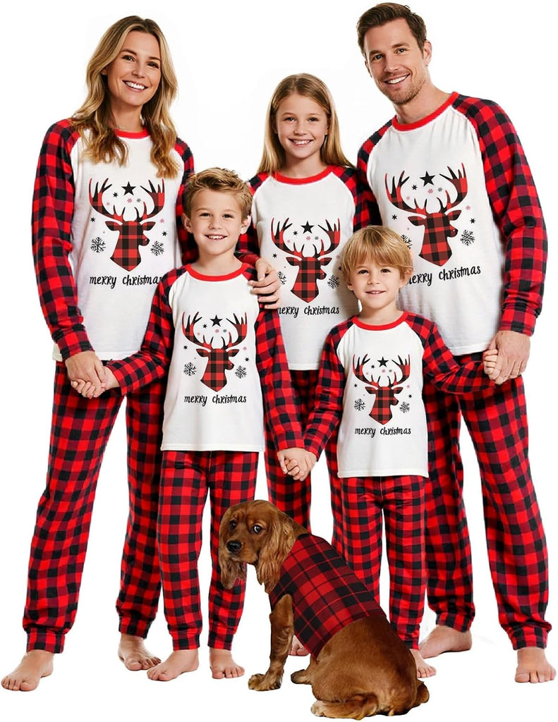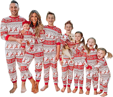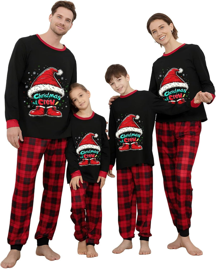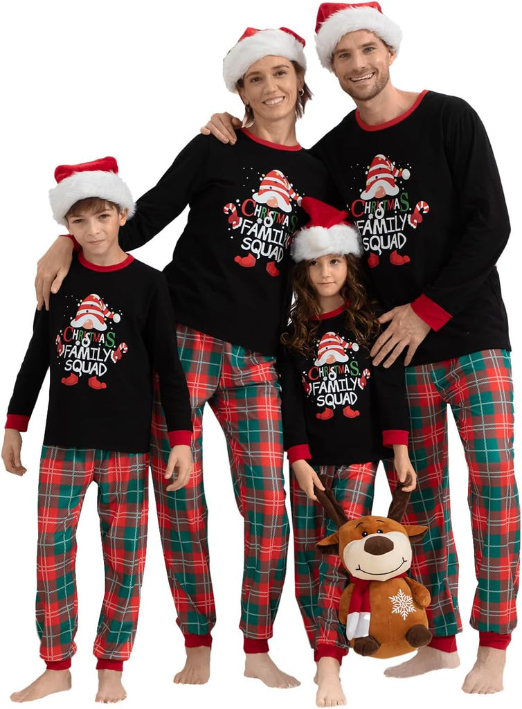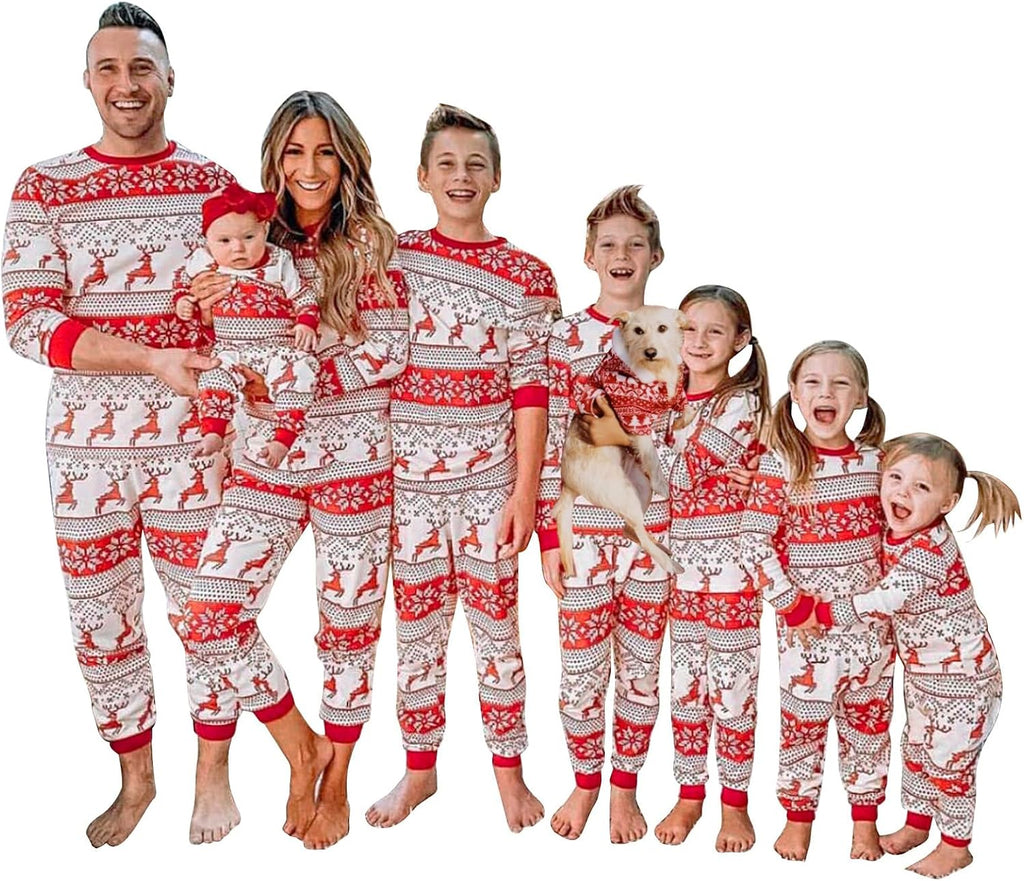 Pajama Set: A set only includes one top and one pair of pants. Christmas Pjs are made of polyester blend or cotton blend, which are comfortable, breathable, skin-friendly and durable. The fabric of each style is different, please pay attention to whether you like it. Size Suggestion: Matching Pjs provide size options for different people. If you are also ordering for others, please check the size chart of different styles. If the order size is too large or too small, you can contact us. Excellent Quality: All Christmas pajamas are machine washable. They are well-made and have strong seams. The fabric is stretchy and not easy to pilling and fading. Suitable for long-term wear. Christmas Prints: Family pajamas sets use fun Christmas patterns and bright colors to complement the Christmas theme. Pajama sets allow your whole family to enjoy the festive atmosphere during Christmas. Christmas Gift: Matching pajama sets can be given as gifts to cousins, couples, and even dogs. They are ideal for creating everlasting memories and enjoying cozy moments with loved ones.