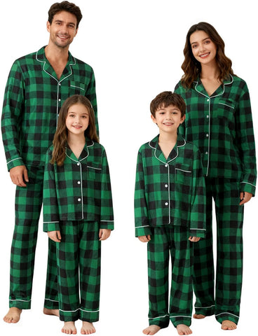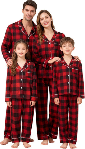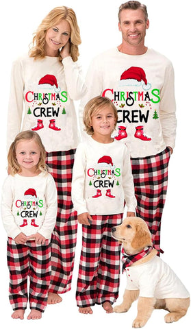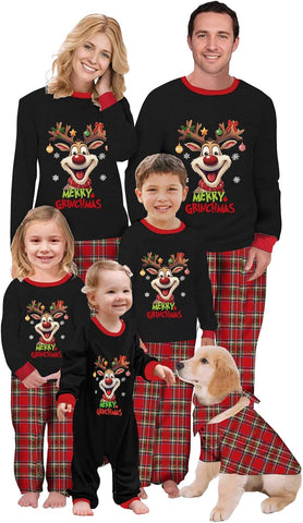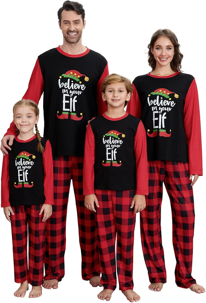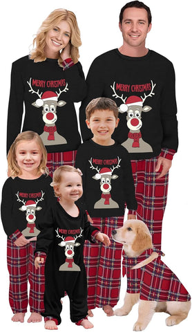 Fabric type: Cotton Blend. Care instructions: Machine Wash. Origin: Imported. Product Facts: Elevate your festive family tradition with our Christmas Pajamas Family Matching Set, designed to bring style, comfort, and togetherness to your holiday celebrations. Unwrap the joy of the season in these charming and unique pajamas. Crafted with care, our pajama set features tops made from a soft cotton blend and trousers made from durable polyester-cotton fabric. Say goodbye to pilling and fading – these PJs are made for long-lasting softness and comfort. They are easy to clean and boast stain-resistant properties for added convenience. Our pajama sets showcase a stylish design with a delightful deer head print pullover, elastic waist, and plaid trousers, adding a touch of holiday flair. Start a delightful tradition with your family wearing these matching pajamas that bring everyone together in style. From capturing Christmas morning pictures to cozy movie nights and gift-giving traditions, our family pajama set is versatile for all your unforgettable moments. Whether it's breakfast with Santa or a family movie night, these comfy and stylish PJs will make every moment special. Available in sizes for the entire family, our Christmas Pajamas offer the perfect coordinated look for your holiday gatherings. Create lasting memories filled with laughter and joy by kicking off a memorable family tradition with these festive and comfortable pajamas.