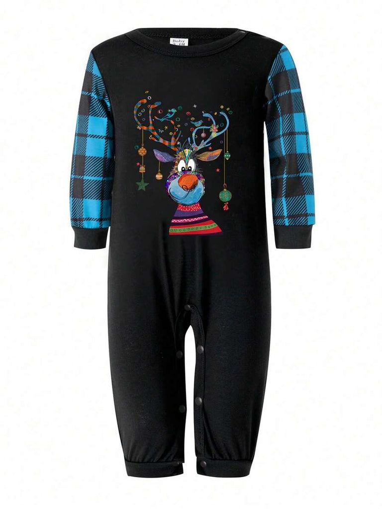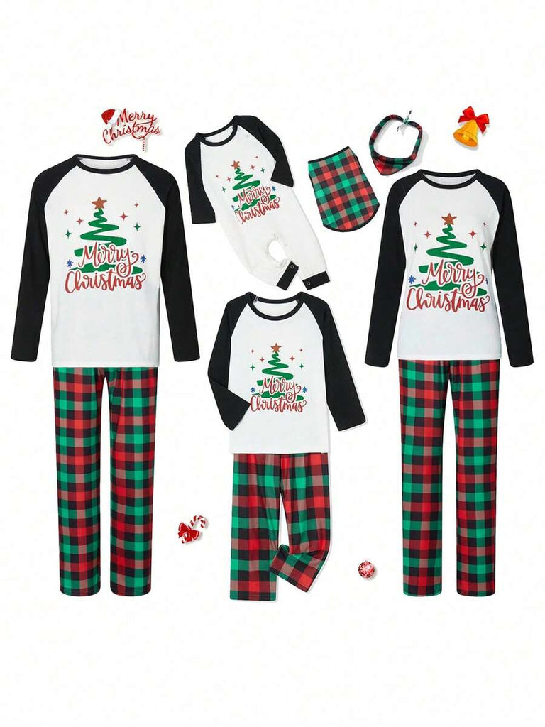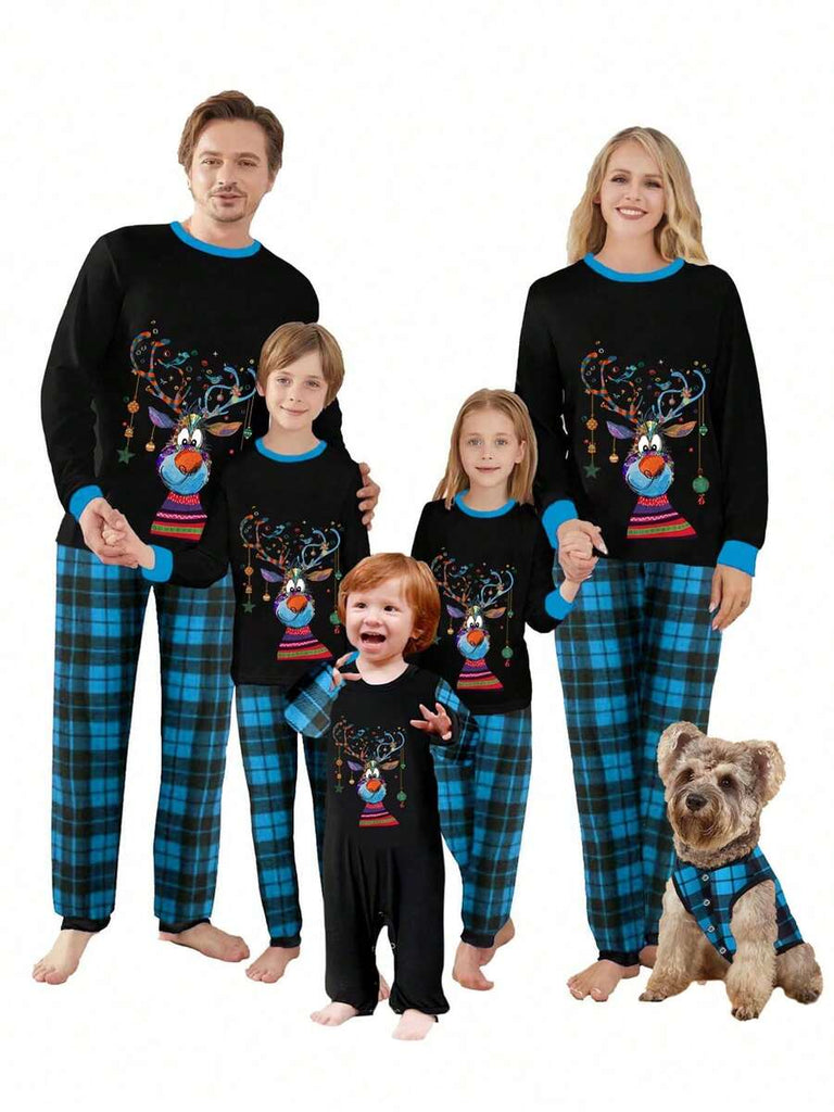 Family Christmas Pajamas Long Sleeve Tops And Striped Pants Holiday Pjs Xmas Jammies Sleepwear For Dad Mom Kid Baby