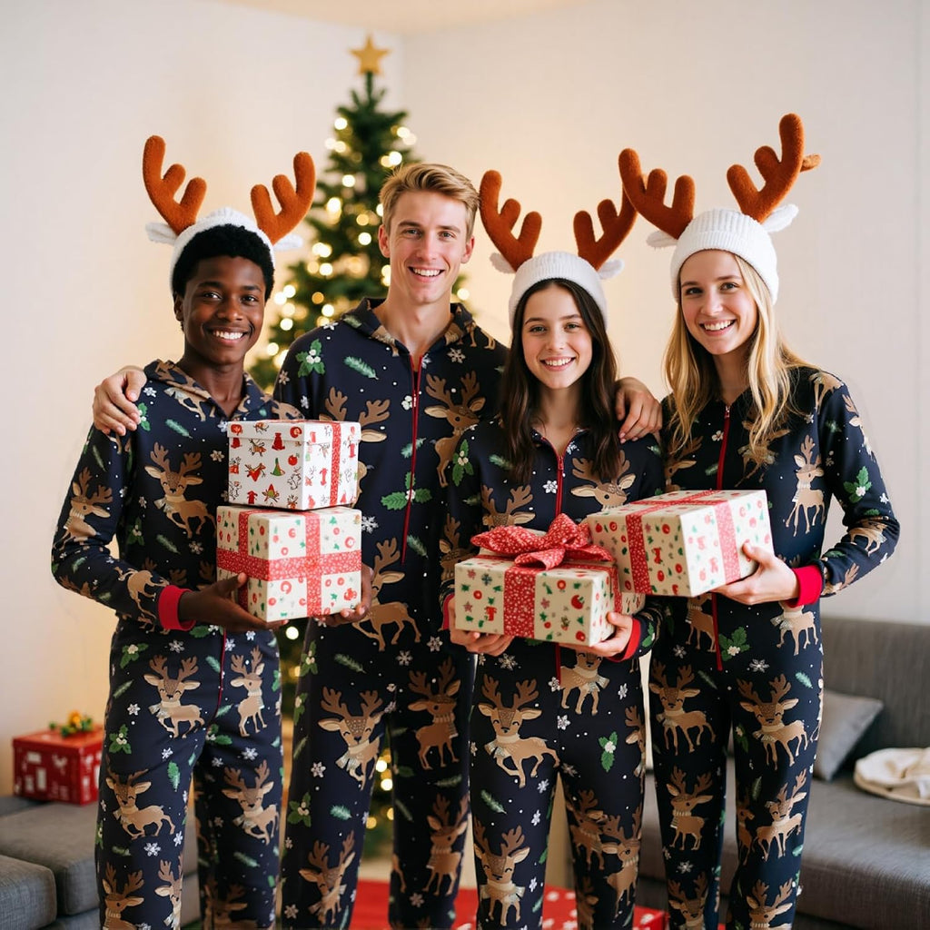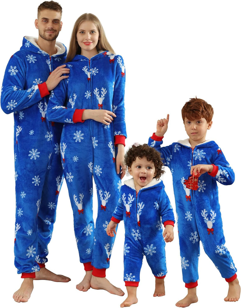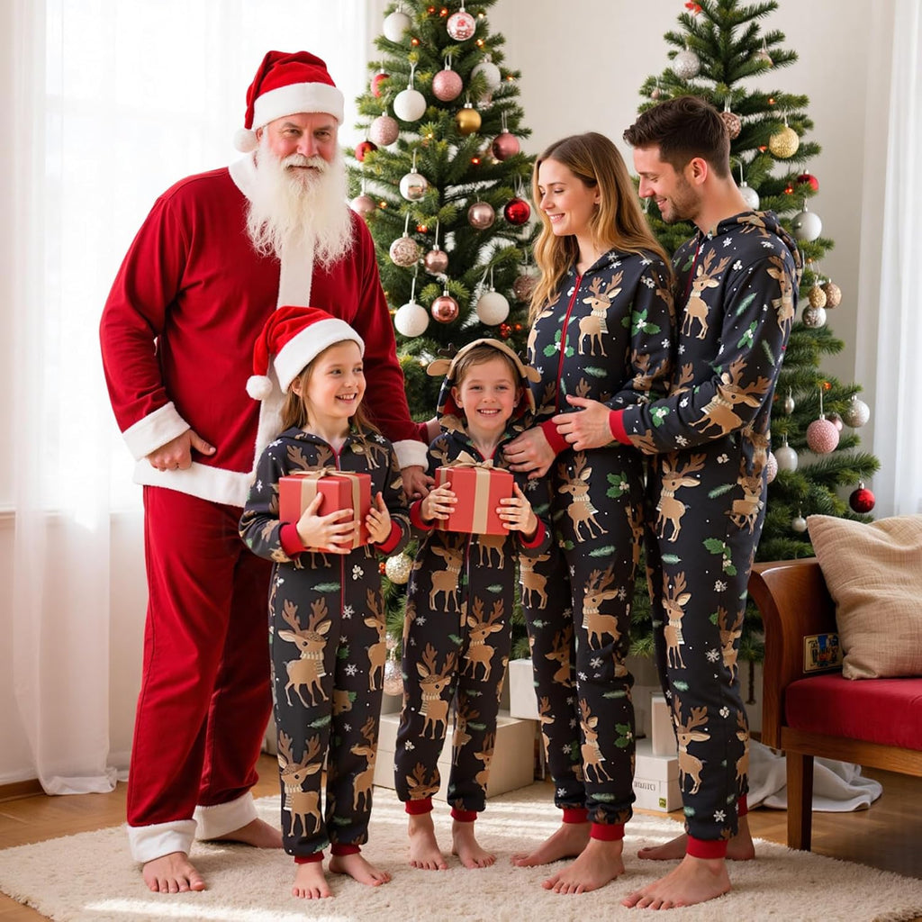 【Attention】Elevate your family's holiday spirit with our exquisite range of matching christmas pajamas for couples! Each set is sold individually, ensuring a perfect fit for every member. Don't forget to consult our size chart before making your selection. Easy to care for with machine washability. 【Festive Flair】Our Family Christmas Pajama collection boasts a delightful array of patterns and styles—from classic stripes to cute elk, Christmas snowflakes, and more! These designs are not just for Christmas but will keep you cozy and stylish all winter long. 【Cozy Comfort】Indulge in the luxurious comfort of our pajamas, expertly crafted from high-quality polyester and spandex. These soft, breathable sets are designed for optimal coziness. With long-sleeved tops and full-length pants, your family will stay warm during the holiday season. 【Unify in Style】Create lasting memories with matching PJs for the whole family. Available in sizes for adults, boys, girls, and babies, our coordinated sets are perfect for capturing heartwarming moments and creating a picture-perfect holiday look. 【Versatile Occasions】Whether it's a festive family party, Christmas celebration, lounging, or a cozy night in, our charming family Christmas pajamas are perfect for any occasion. Spread holiday cheer by gifting these cozy sets to your loved ones this winter, making every moment special.