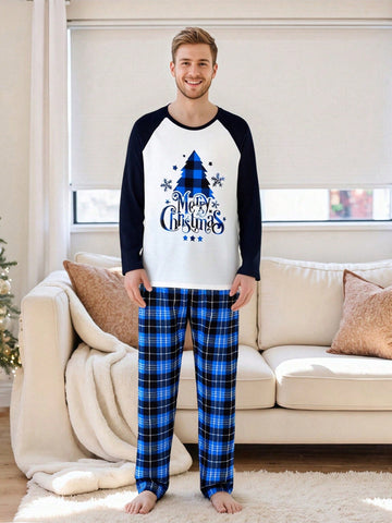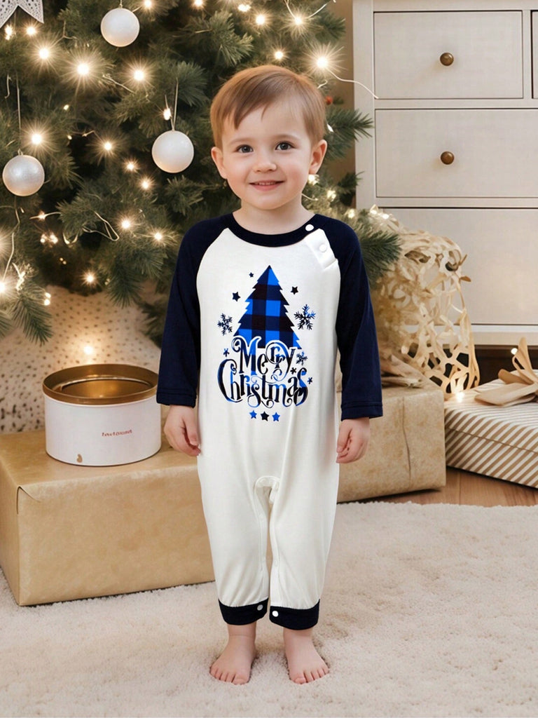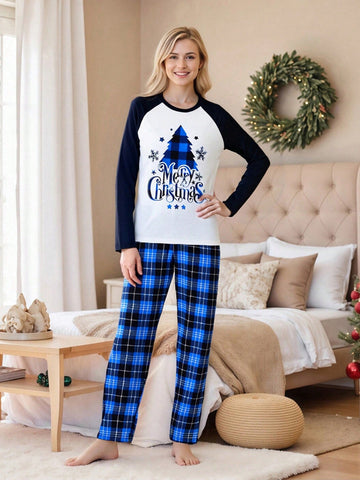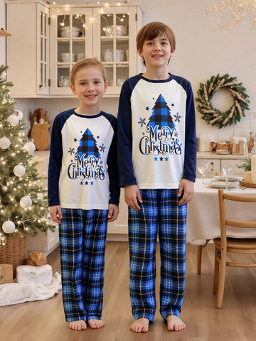 Family Christmas Pajamas Matching Sets Christmas Tree Letter Print Top And Plaid Bottom Pants Sleepwear Christmas Family Matching Outfits
