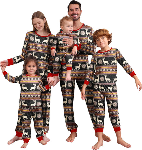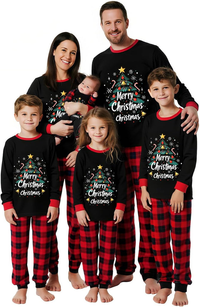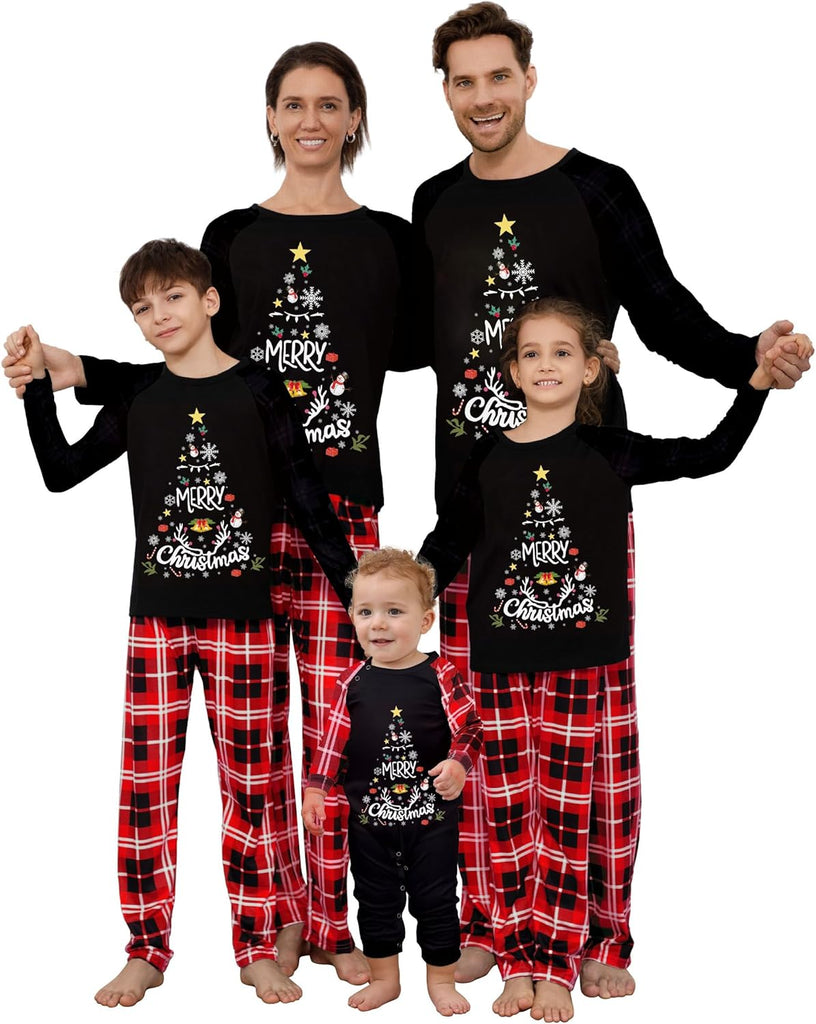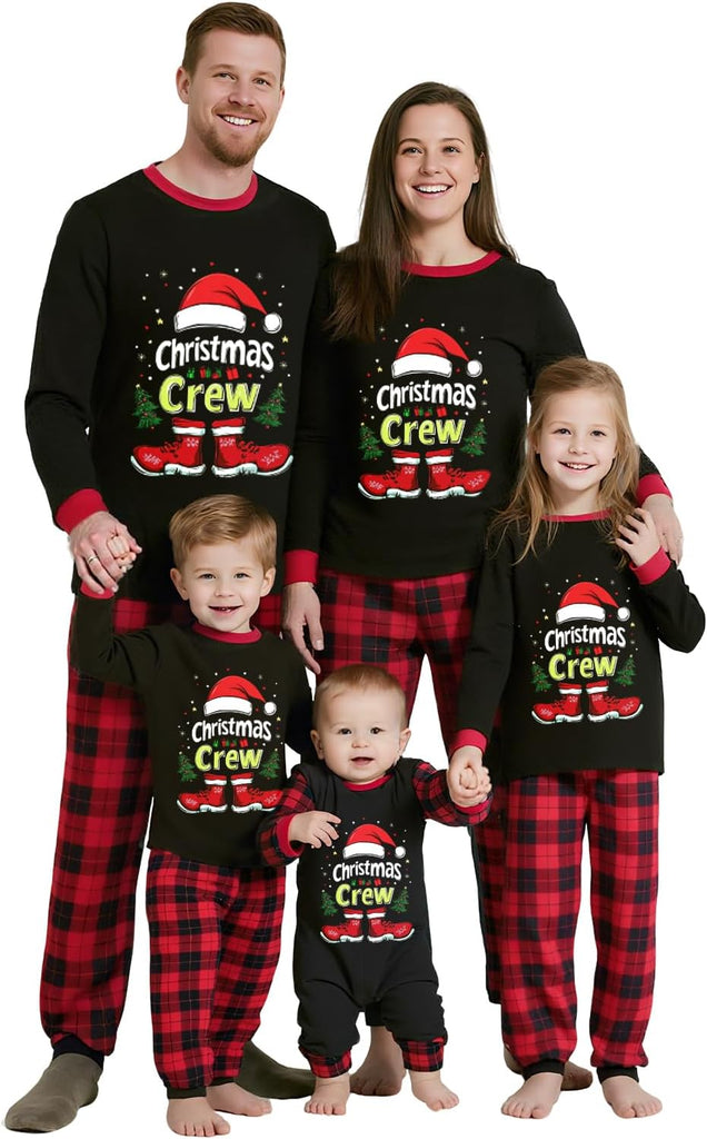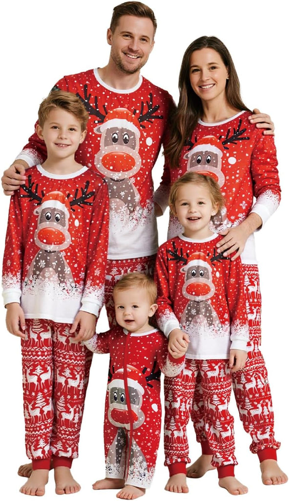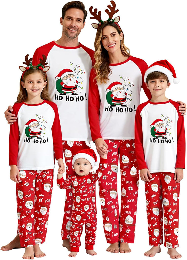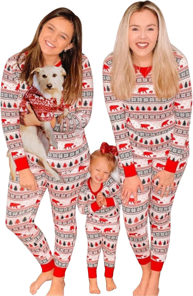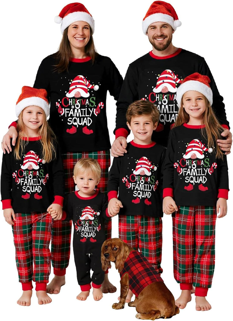 Fabric type: 95% Polyester, 5% Elastane. Product Facts: 【Sizing Guide】 Our pet sizing (S, M, L) is based on larger breed standards. For a snuggly fit, measure your pet’s chest and back length, then consult our size chart before ordering. 【Complete Sizing for All】 Ideal Christmas pajamas for couples and families, our set includes sizes for adults, kids, infants, and even pets. This family Christmas pajamas matching set ensures every family member can fully immerse in the joyful holiday atmosphere. 【Classic Elements Design】 These Christmas PJs feature iconic and joyful prints of reindeer, snowflakes, and Christmas trees. More than just sleepwear, they’re a visual celebration. 【Soft & Durable Fabric】 Our matching Christmas pajamas for family are crafted from a premium cotton-polyester blend. This fabric balances breathable comfort with resilience, ensuring color vibrancy and minimal shrinkage after washing. 【Heartwarming Gift of Love】 A cherished gift choice, these matching christmas pajamas for couples and families are a heartfelt way to share warmth. They create lasting memories, making them a great present for your partner, entire family, or friends.