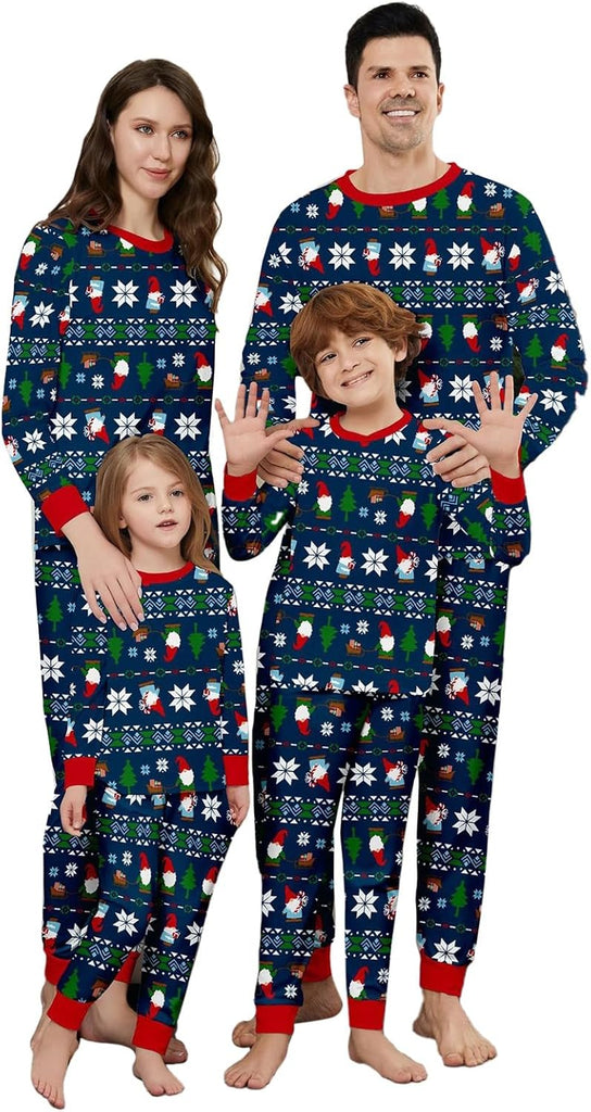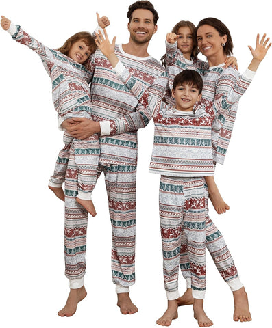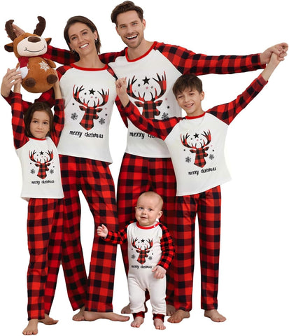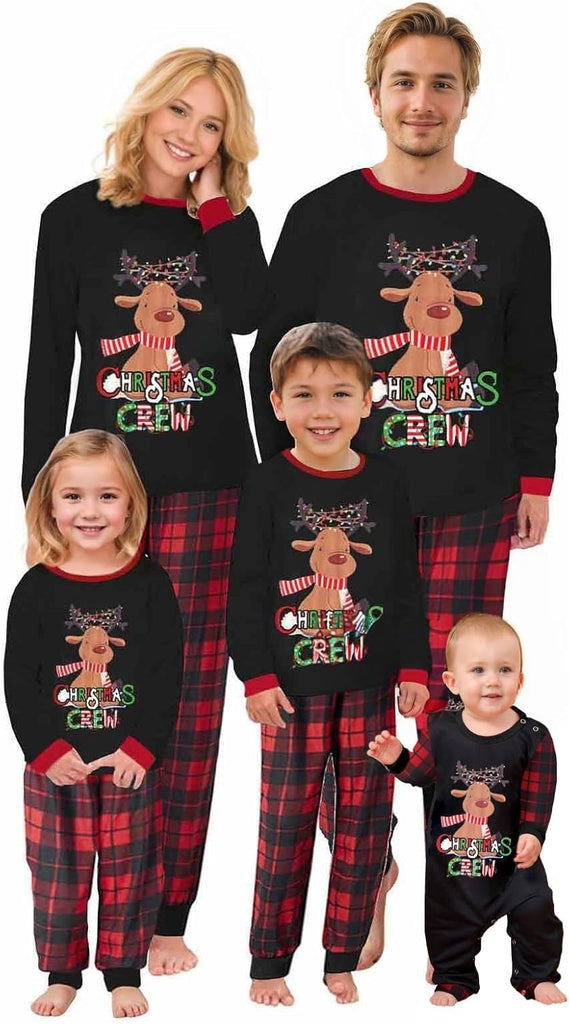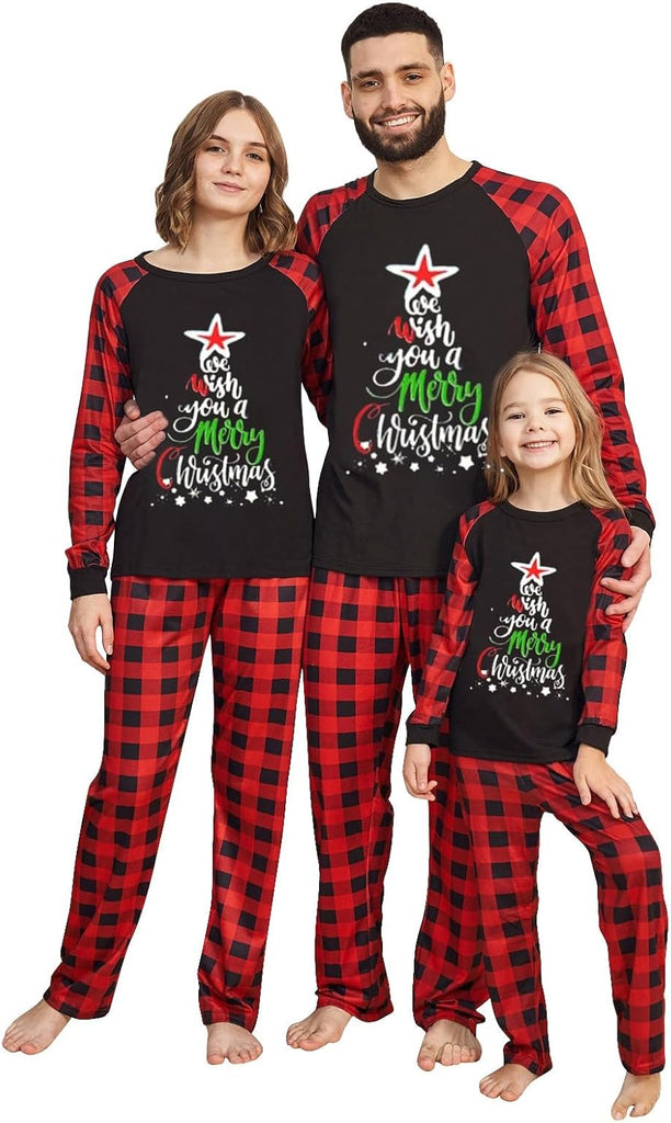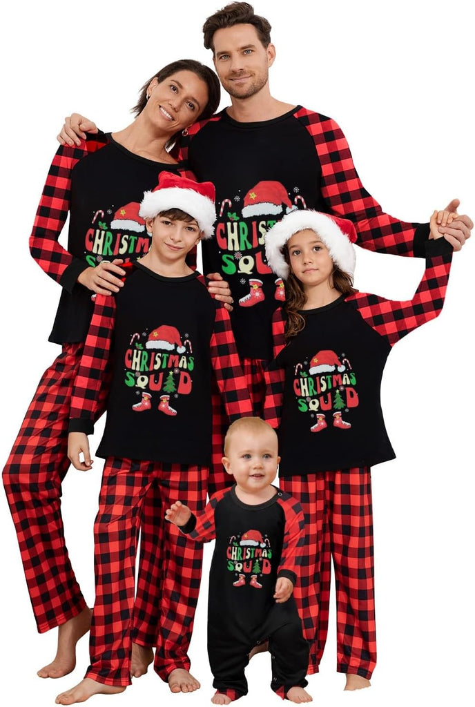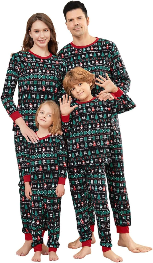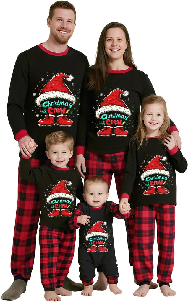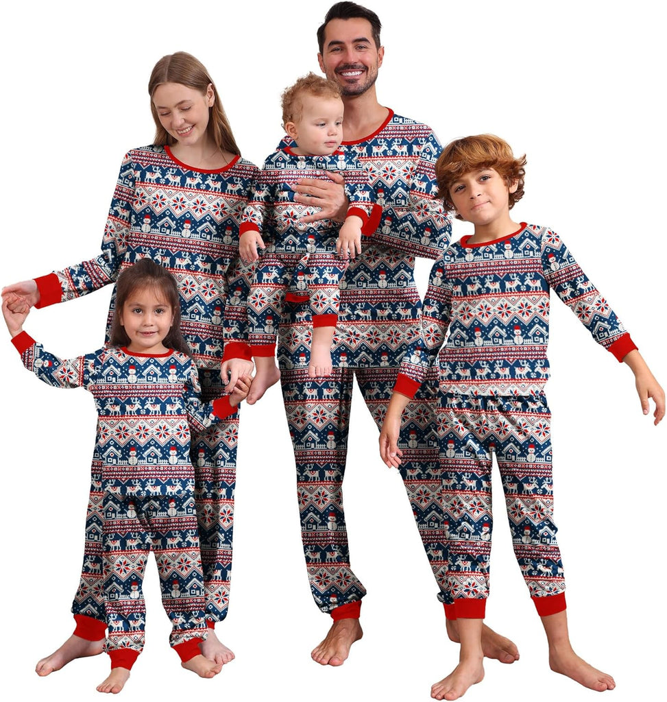 Fabric type: 95% Polyester, 5% Elastane. Product Facts: 【Sizing Guide】 Our pet sizing (S, M, L) is based on larger breed standards. For a snuggly fit, measure your pet’s chest and back length, then consult our size chart before ordering. 【Complete Sizing for All】 Ideal Christmas pajamas for couples and families, our set includes sizes for adults, kids, infants, and even pets. This family Christmas pajamas matching set ensures every family member can fully immerse in the joyful holiday atmosphere. 【Classic Elements Design】 These Christmas PJs feature iconic and joyful prints of reindeer, snowflakes, and Christmas trees. More than just sleepwear, they’re a visual celebration. 【Soft & Durable Fabric】 Our matching Christmas pajamas for family are crafted from a premium cotton-polyester blend. This fabric balances breathable comfort with resilience, ensuring color vibrancy and minimal shrinkage after washing. 【Heartwarming Gift of Love】 A cherished gift choice, these matching christmas pajamas for couples and families are a heartfelt way to share warmth. They create lasting memories, making them a great present for your partner, entire family, or friends.
