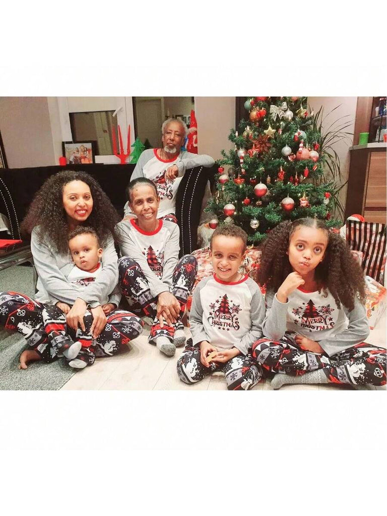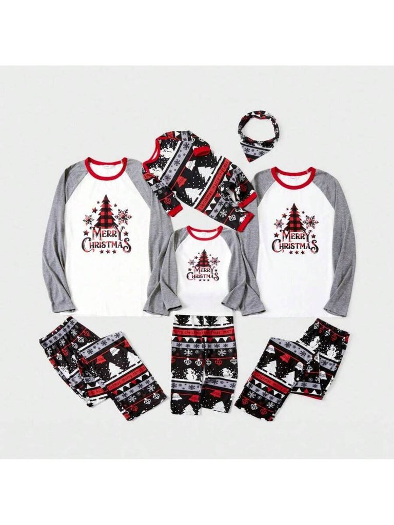 Family Christmas Pajamas Set, Letter Print Home Clothes, Women's Christmas Outfit