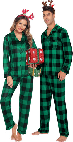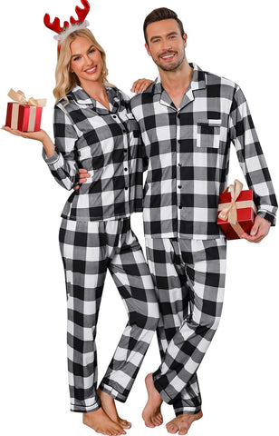 - A FABULOUS IDEA FOR Couples PARTY: The simple and classic design makes it not only suitable for Christmas but for all winter, soak through fun by wearing matching pajamas for Couples. These matching Couple's sleepwear sets are perfect for lounging and Christmas pictures. It is also a fabulous gift for your husband, wife, dad, mom, or other friends.