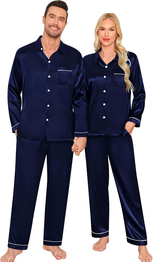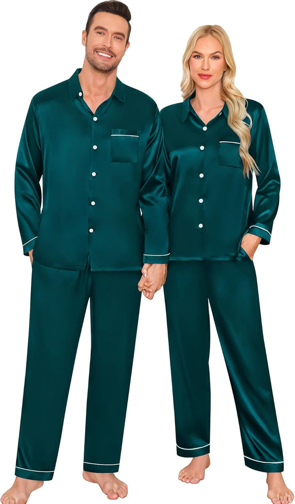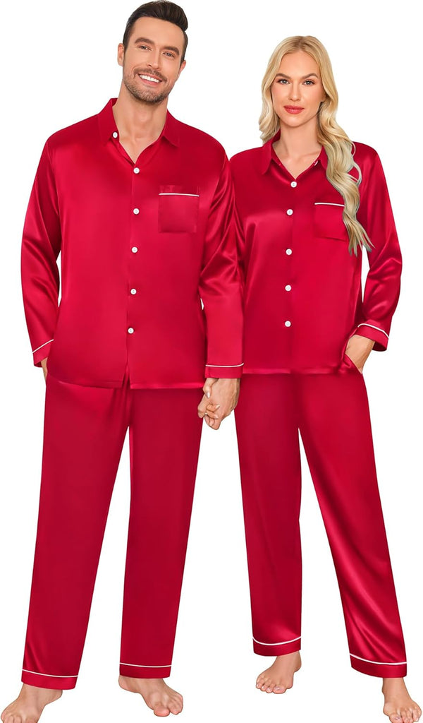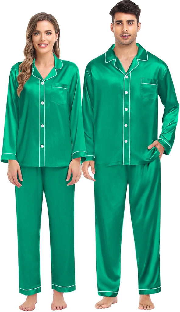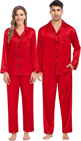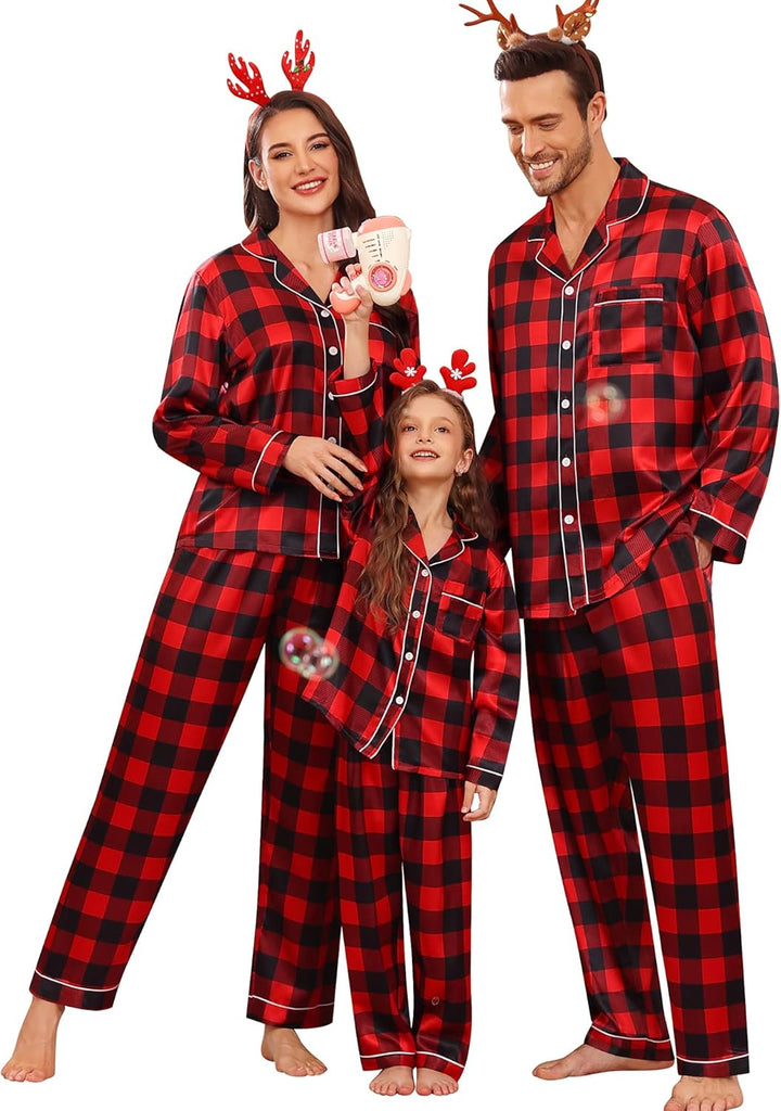 Fabric type: Silky Satin: 95% Polyester, 5% Spandex (TIPS: Each Set of These Matching PJs is Sold Separately, Please Look Out for "Men" "Women" "Kids"). Care instructions: Hand Wash or Machine Wash. Origin: Made in the USA or Imported. Product Facts: 【Premium Material】- These cozy family pajamas are made of high-quality satin (95% Polyester, 5% Spandex), which is extra-soft and comfortably comfy. These matching silk satin pajamas make cozy lounging a shared experience. Bring them out during family game night, get matching sets as a couple to make your time together extra fun. Tips: Each set of these family pajama set is sold separately. You can purchase the men's or women's or kids pajamas individually. 【The Whole Family】- The family satin pjs set are available in sizes for women, men, girls, boys and kids. Make this super-soft sleepwear part of your family’s party traditions. The whole family silk sleepwear features a notch collar, long sleeves, button-up shirt with front chest pockets, and pajama pants with an elastic waistband, which is sure to give you and your loved ones that warm and funny feeling. 【Family Gifts】- Casual Silky Pj Sets for Family are stylish, comfortable and daily, funzy with elements add family joy, making them the perfect piece of loungewear for everyone in the family! A great gift for our family! Also give a matching set to your friends family or an individual set to your husband, son or daughter! Makes for great family photos! 【Great Value】- We want you and your family to love our Holiday Family Matching Pajamas. Find matching items for all the family. All of the silk satin pajamas set is sustainably sourced and always will be. SWOMOG Family Pajamas Collection: easy-to-wear wardrobe staples that combine classic and contemporary styles. 【Kindly Tips】- Multi-funny colors and parents-child size for your choice, you can always find the most suitable one. Please check the size chart information in the left image or under the product description before ordering.