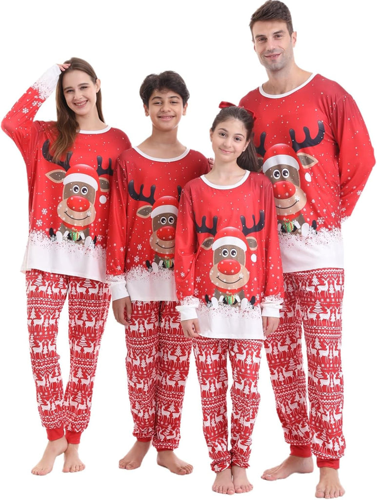 Classic Christmas Patterns: The patterns include classic Christmas patterns such as reindeer, snowflakes, and Santa Claus. Classic patterns and bright colors perfectly match Christmas decorations, leaving beautiful memories for the holiday. Family Christmas Pajamas Set: Provides sizes suitable for the whole family to wear, including women's, men's, boys', girls', and baby sizes. Create a perfect outfit during the holiday season, create family memories filled with laughter and joy, and start the tradition of matching Christmas pajamas for the whole family. High quality Christmas Pajamas Set: Christmas pajamas are made of soft materials, which have excellent elasticity, fit very well, are skin friendly, breathable, comfortable and soft to wear, easy to clean and stain resistant. These pajama sets ensure that the whole family can enjoy a comfortable and pleasant experience. Perfect Christmas Gift: The Family Christmas Pajama Set is the perfect Christmas gift for family and friends. Share Christmas joy with the whole family with this Christmas pajama family set. Applicable Occasions: Very suitable for casual wear, Christmas parties, pajama parties, and family gatherings. Wear our matching family pajamas to participate in various holiday activities. On Christmas morning, take a family photo, bake holiday cakes, exchange gifts, decorate the Christmas tree, light candles, sing Christmas carols, distribute candy, or host a cozy movie night.