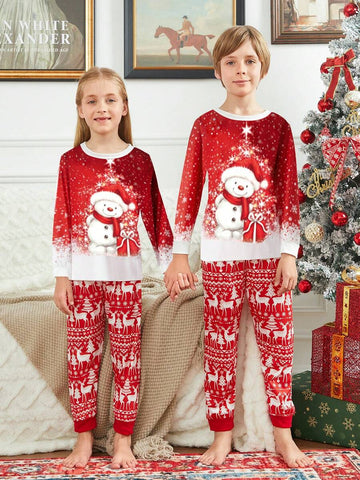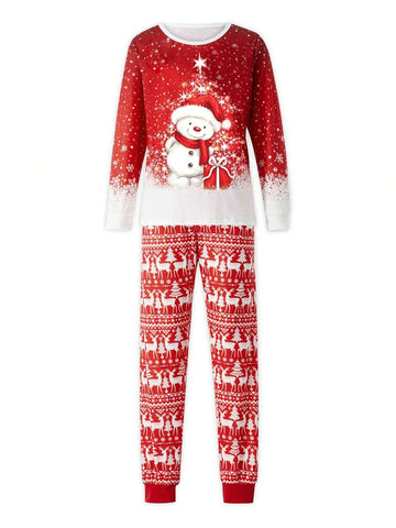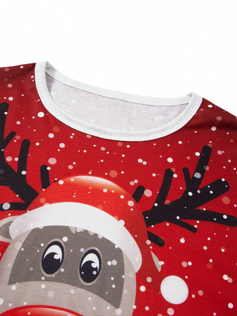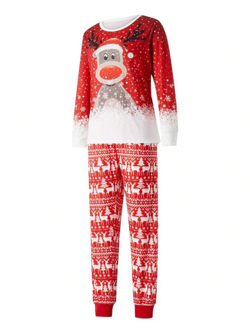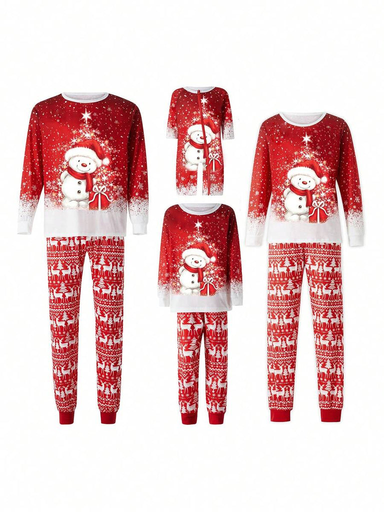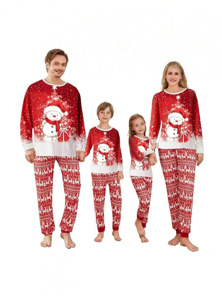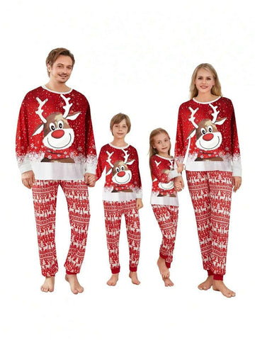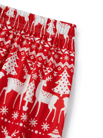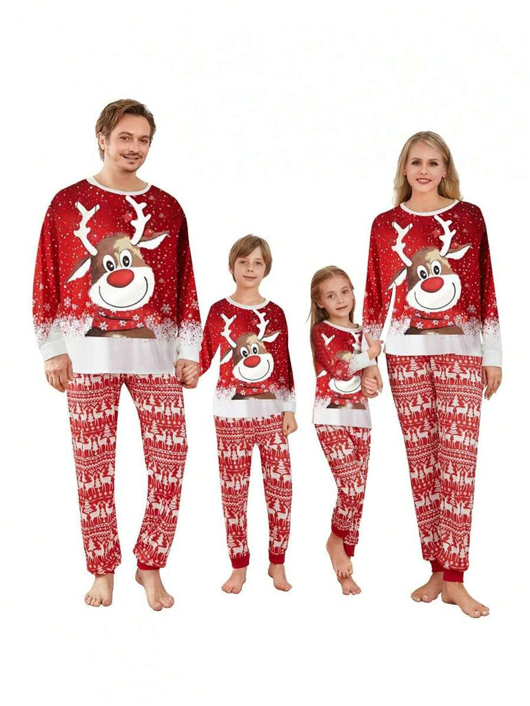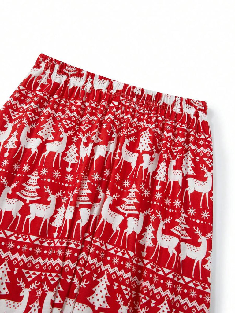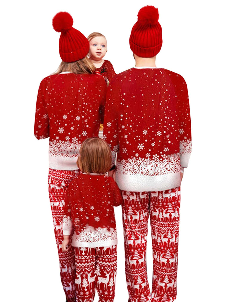Pattern Type: Christmas. Season: Spring/Fall. Details: Contrast Binding. Color: Red-c. Type: Pant Sets. Neckline: Round Neck. Sleeve Length: Long Sleeve. Sleeve Type: Regular Sleeve. Fit Type: Regular Fit. Number of Pieces: 7 Piece Set. Sheer: No. Underwear & Sleepwear Users: Family. Festivals: Christmas. Length: Long. Scenes: Daily. Composition: 94% Cotton, 6% Elastane. Belt: No. Placket type: Pullovers.