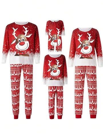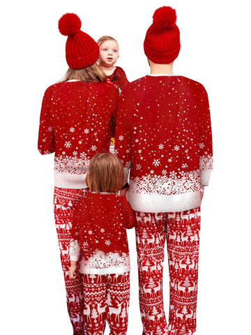 Matching Family Christmas Pajamas Deer Snowflake Print Long Sleeve Pullover Loose Pants Set Holiday Jammies For Adults And Kids Xmas Sleepwear