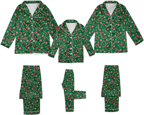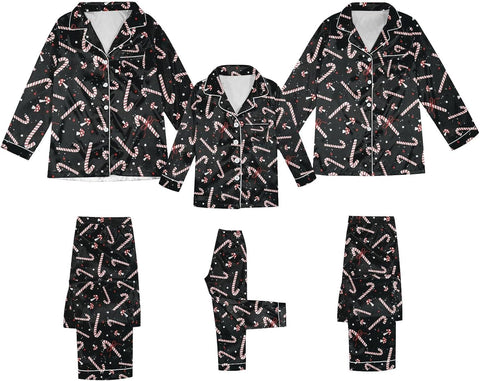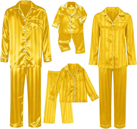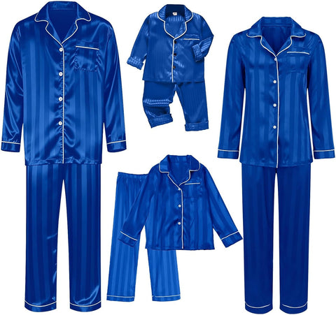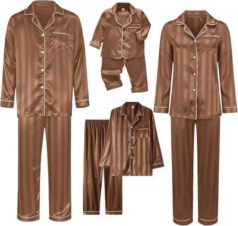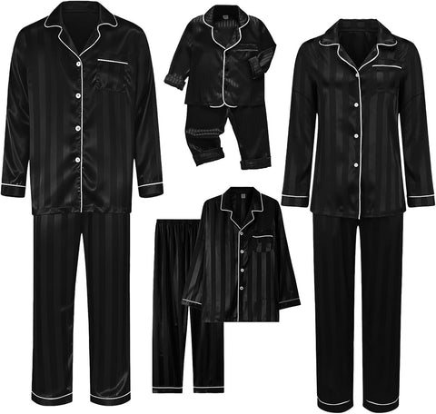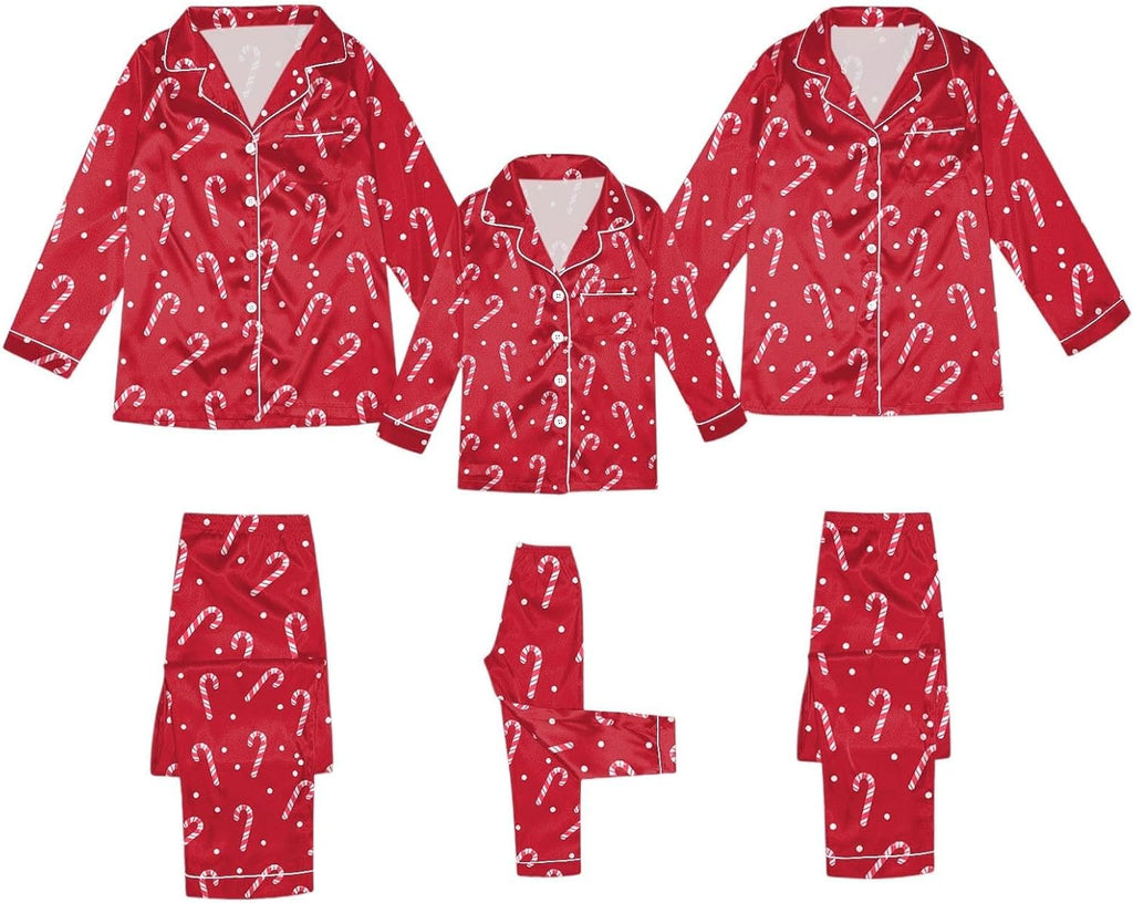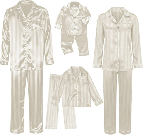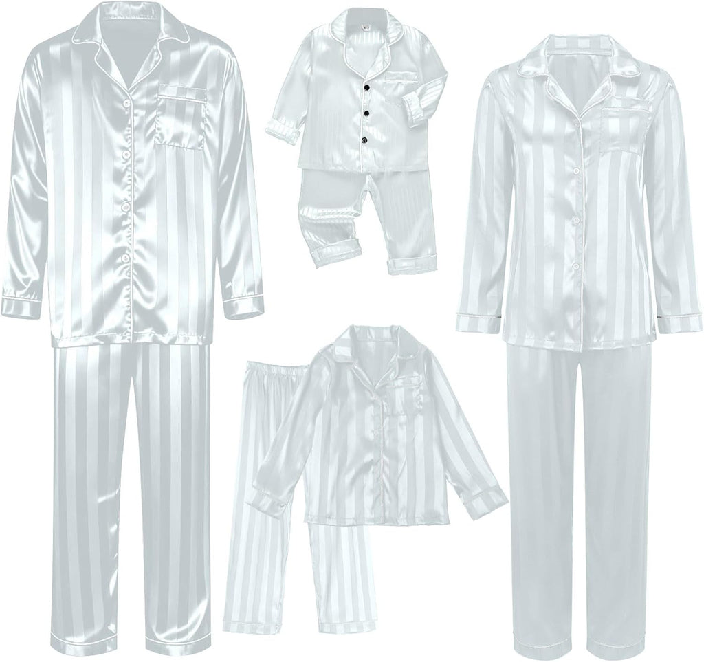 Silk Matching Christmas Pajamas for Family - Striped Button Down Shirt and Pants - Silky Satin Xmas Pjs Sets for Pictures