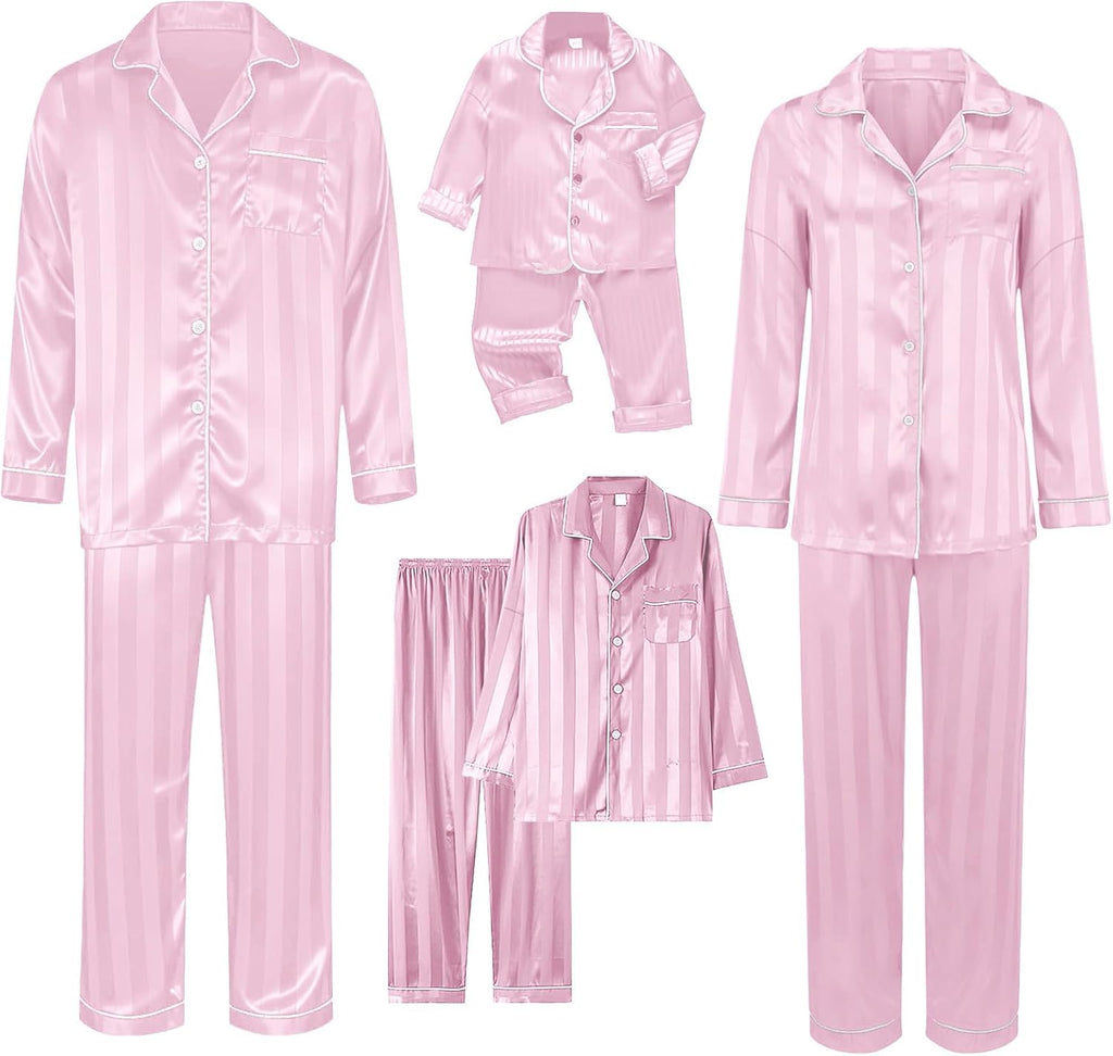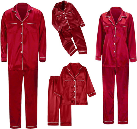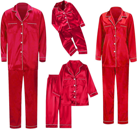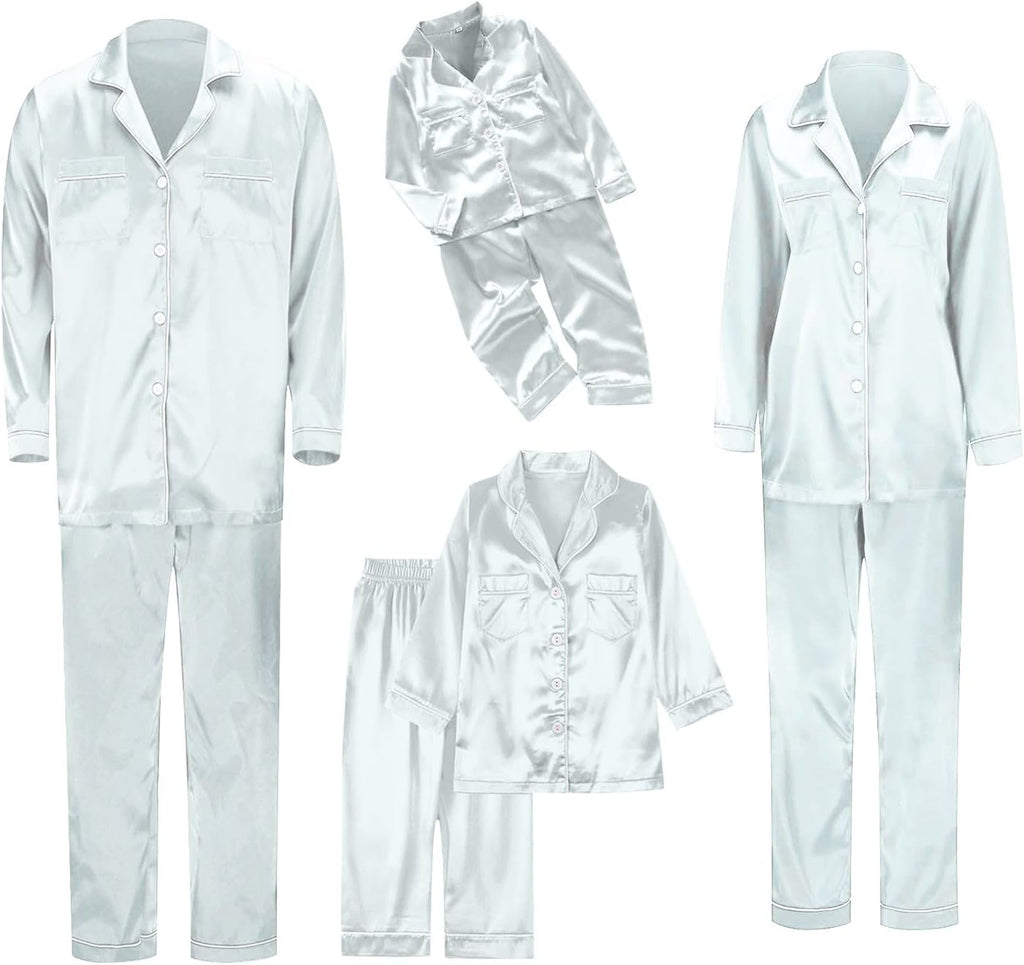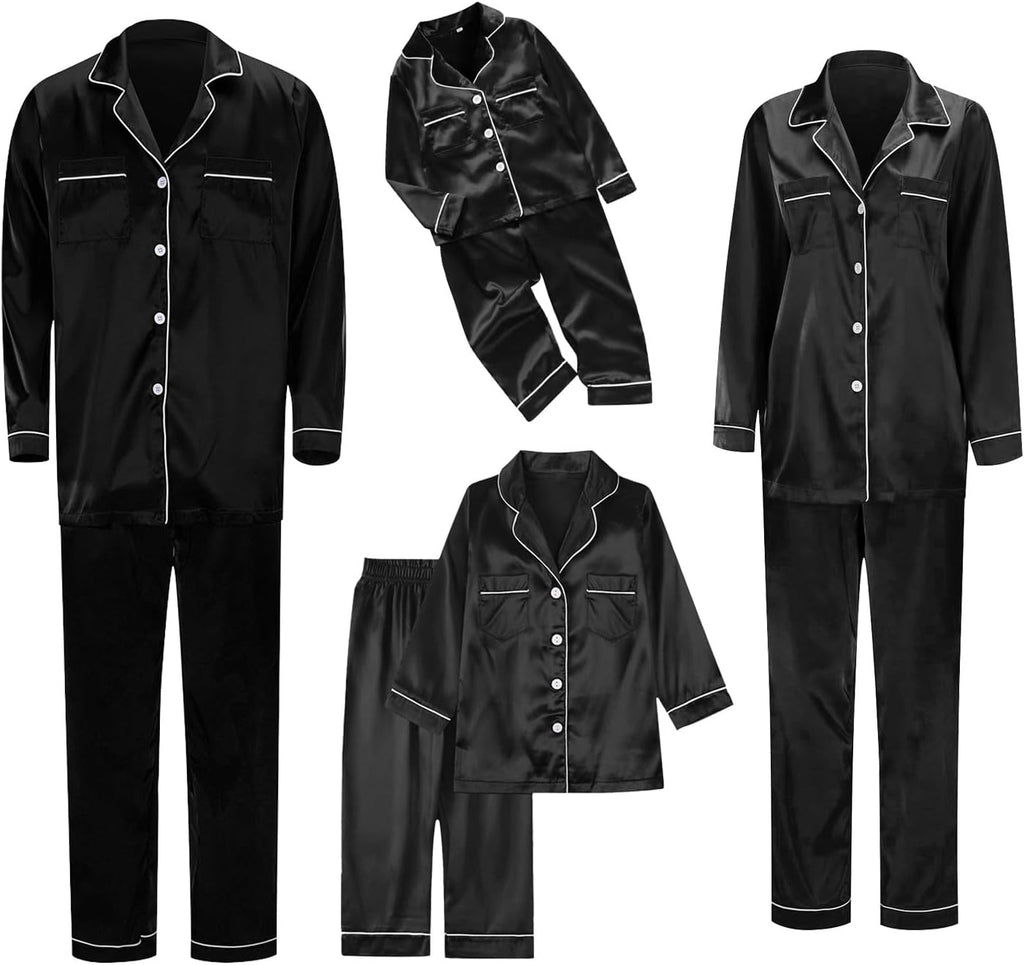 Fabric type:PLEASE NOTE: Must purchase each size individually. Origin:Made in USA or Imported. Product Facts: SOLD SEPARATELY: Family Christmas Matching Pajamas Sets are sold separately, pajama sets come in most sizes for your all family members, each size must be purchased individually for your family, please check against our size chart before ordering. Silk Christmas Pajamas for Family: This Whole Family Christmas Pajama Set features classic christmas theme design in long sleeve button down shirts and pants, make these pj's perfect for Christmas festivities. Soft and Cozy: The Satin Matching Family Christmas Pajamas are made of quality Polyester and spandex, wear soft and comfortable. Your whole family will enjoy these comfy christmas pjs; pjs set include long sleeve shirt and soft full-length pants with a stretchy elastic waistband. Occasions: Silky Family Christmas Pajamas are perfect for taking pictures of the whole family. Family together home party, christmas, holiday, weekends, family dinner night, home wear, gift for family or friends, etc. It can make your big family more close and stick together. SIZE NOTE: Satin Family Christmas Pjs Matching Set comes in sizes for various ages for a picture perfect matching look during the Christmas holiday. Must purchase each size individually. Please refer to our SIZE CHART in the last image before ordering. Recommend order 1-2 size up because of the snug fit.