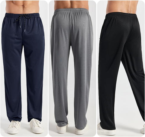Adjustable Waistband with Drawstring: The 3-pack of men’s workout pants includes an elastic waistband with an adjustable drawstring, ensuring a comfortable and secure fit. This design allows for easy adjustments, providing firm support and accommodating all body types while allowing free movement during any activity.