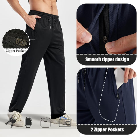 Fabric Composition: This pack of 3 men's pants with pockets is crafted from 100% polyester fabric. Designed for active wear, these pants offer exceptional strength, softness, durability, and resistance to deformation. The breathable mesh construction and quick-drying properties effectively wick moisture away from the skin, ensuring you stay cool and comfortable.