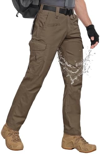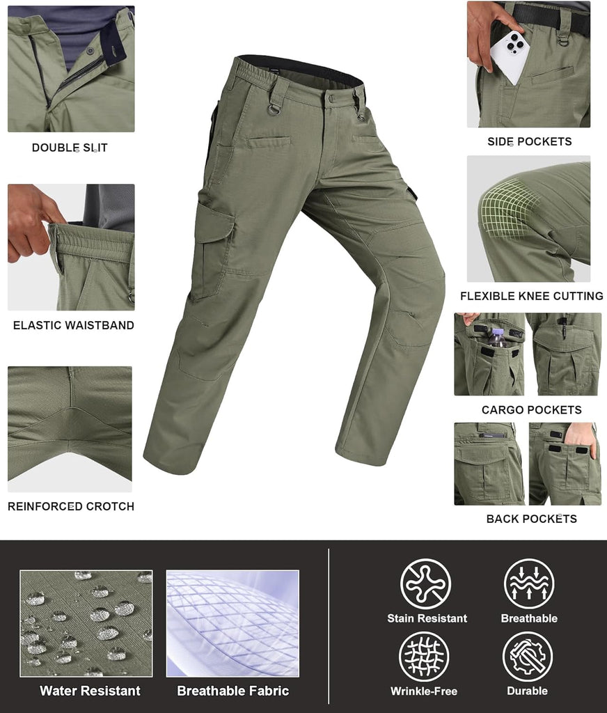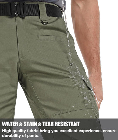 Men's Cargo Pants Ripstop Water Resistant Hiking Work Pants Outdoor Multi Pockets Army Tactical Pants (Not Belt)