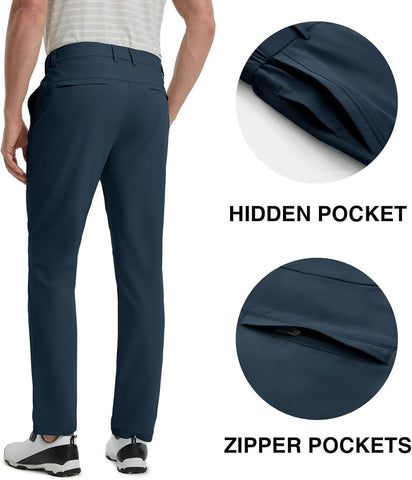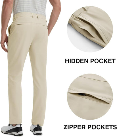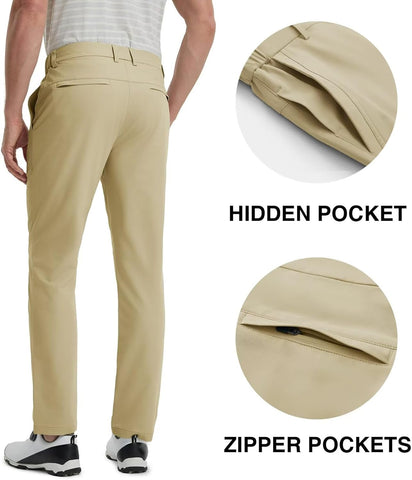 Mens Golf Pants Stretch 30"/32"/34" Water-Resistant Lightweight Stretch Casual Flat Front Dress Pants with 5 Pockets