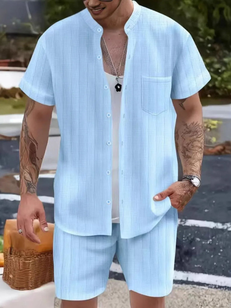 Men's Button Up Short Sleeve Shirt and Shorts Set