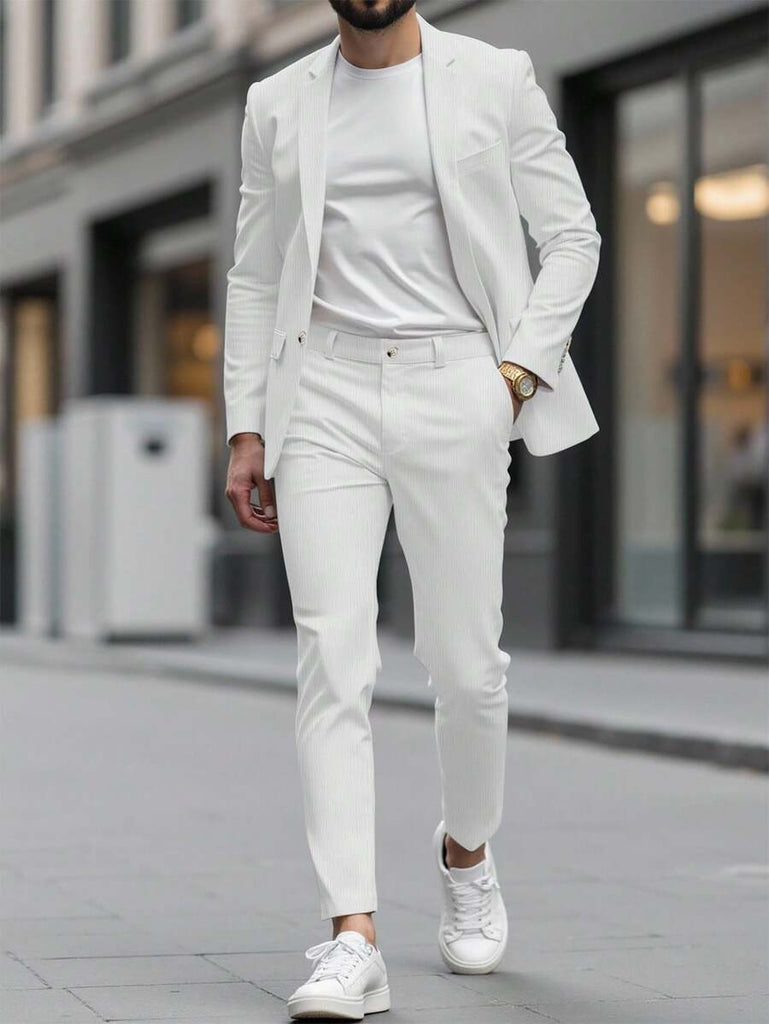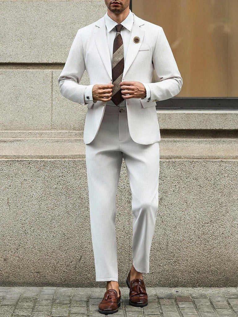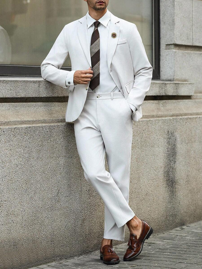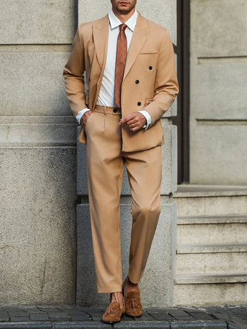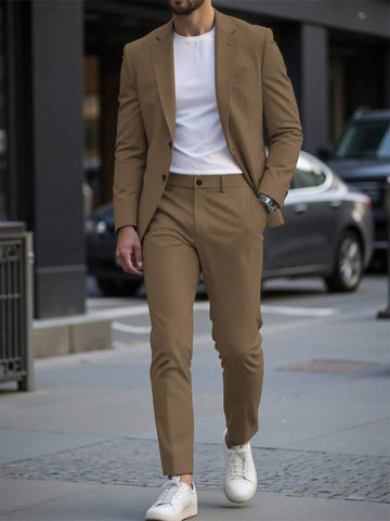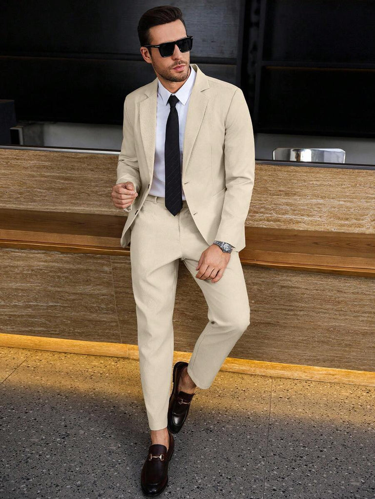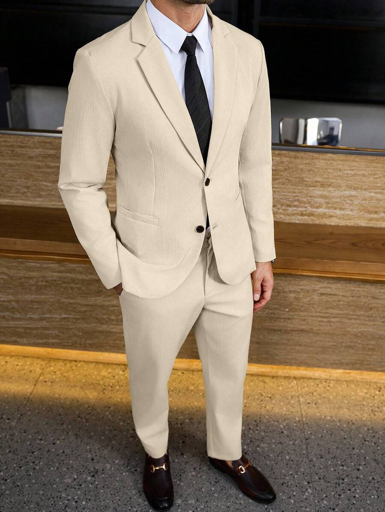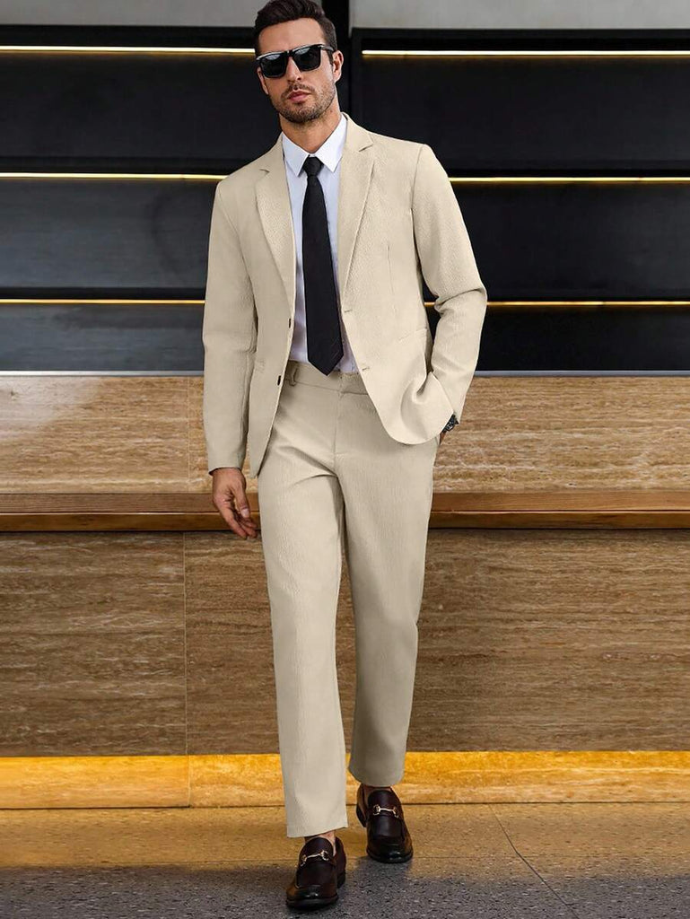 Season: Spring/Fall. Top Type: Blazer. Neckline: Lapel. Bottom Type: Pants. Pattern Type: Plain. Details: Pocket. Fit Type: Regular Fit. Placket: Single Breasted. Details: Zipper. Sleeve Type: Regular Sleeve. Details: Button Front. Season: Fall/Winter. Ideal for: conventional. Style: Business - Business Commuting. Color: Apricot. Fabric Elasticity: Non-Stretch. Care Instructions: Hand wash or professional dry clean. Temperature: Late Fall (10-17℃/50-63℉). Lined For Added Warmth: No. Sheer: No. Pants&Tops Composition: 100% Polyester. Pants Length: Long. Pants Material: Polyester. Pants Body: Unlined. Tops Sleeve Length: Long Sleeve. Tops Length: Regular. Tops Body: Lined.