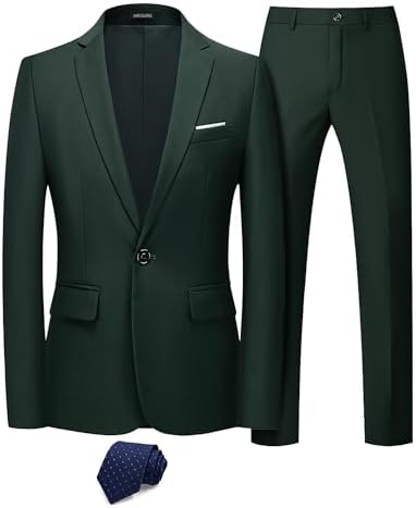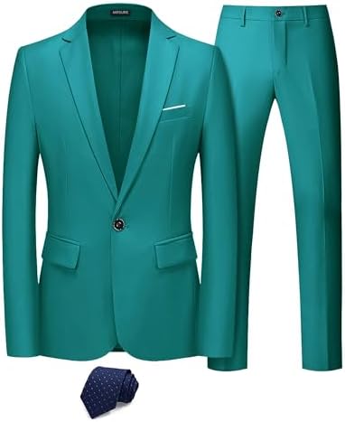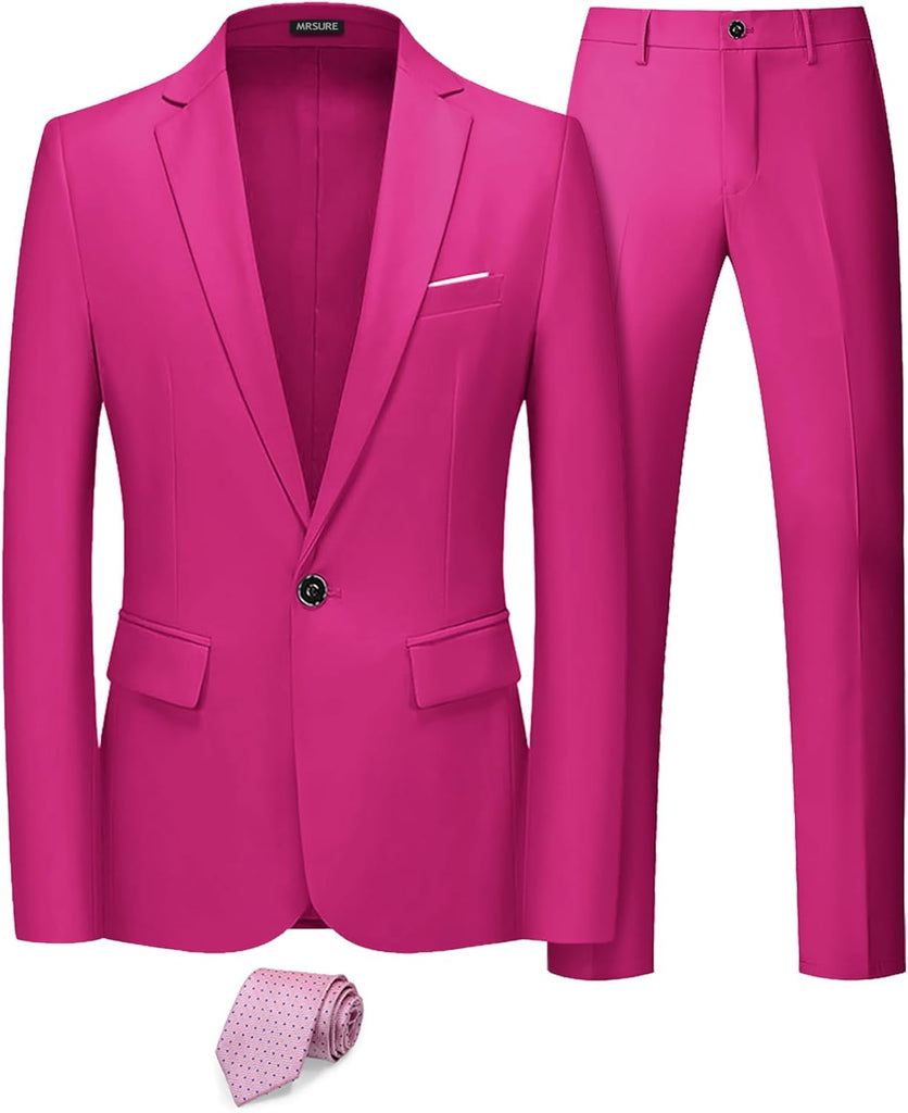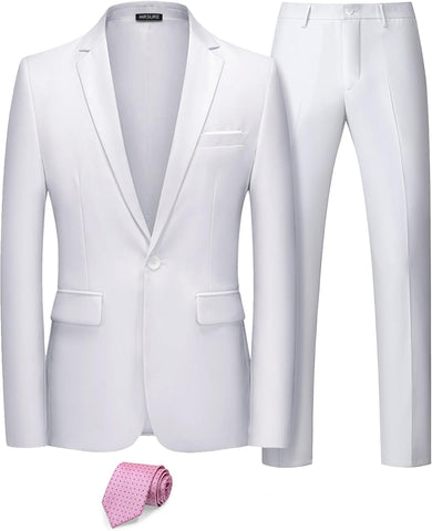 Men's 2 Piece Slim Fit Suit with Stretch Fabric, One Button Solid Jacket Pants