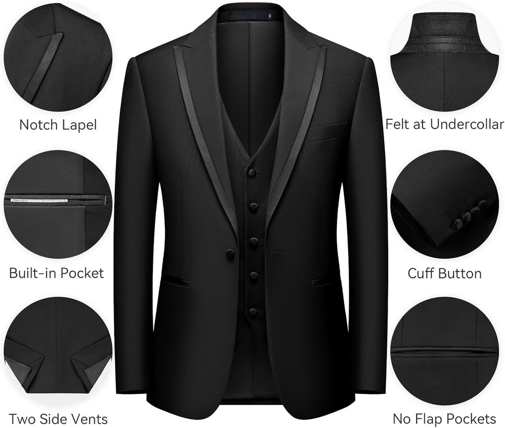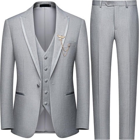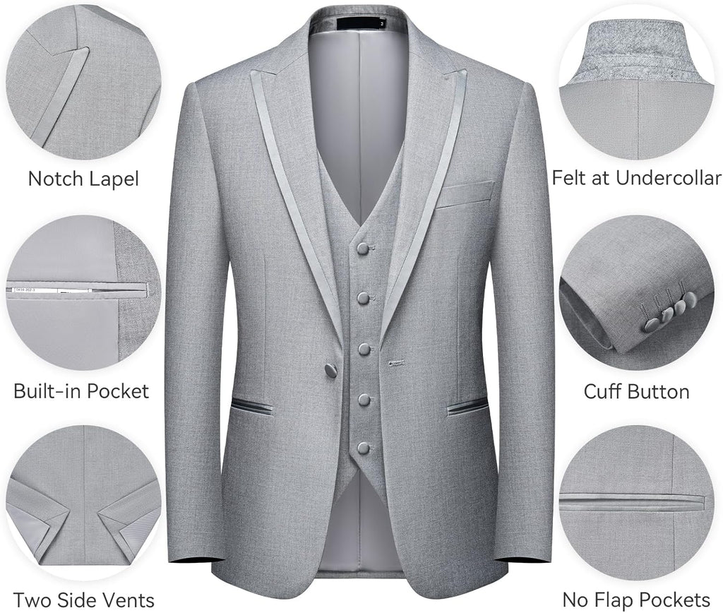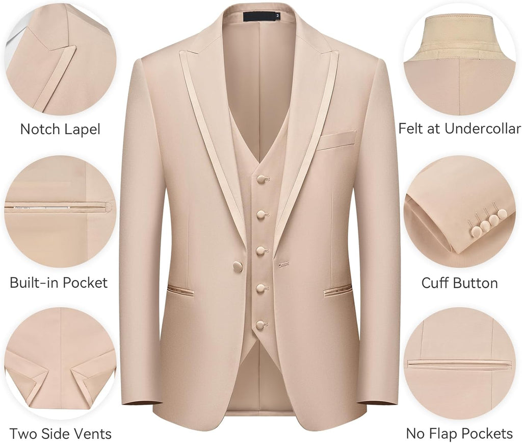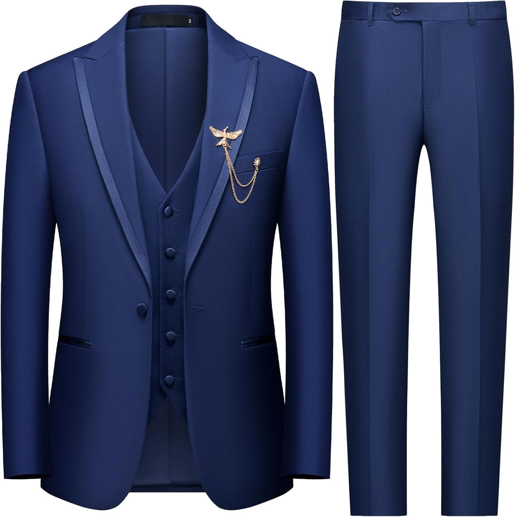 Men's 3 Piece Suit One Button Blazer Jacket Vest Pants Set Slim Fit Formal Wedding Business Suit Tuxedo Suit