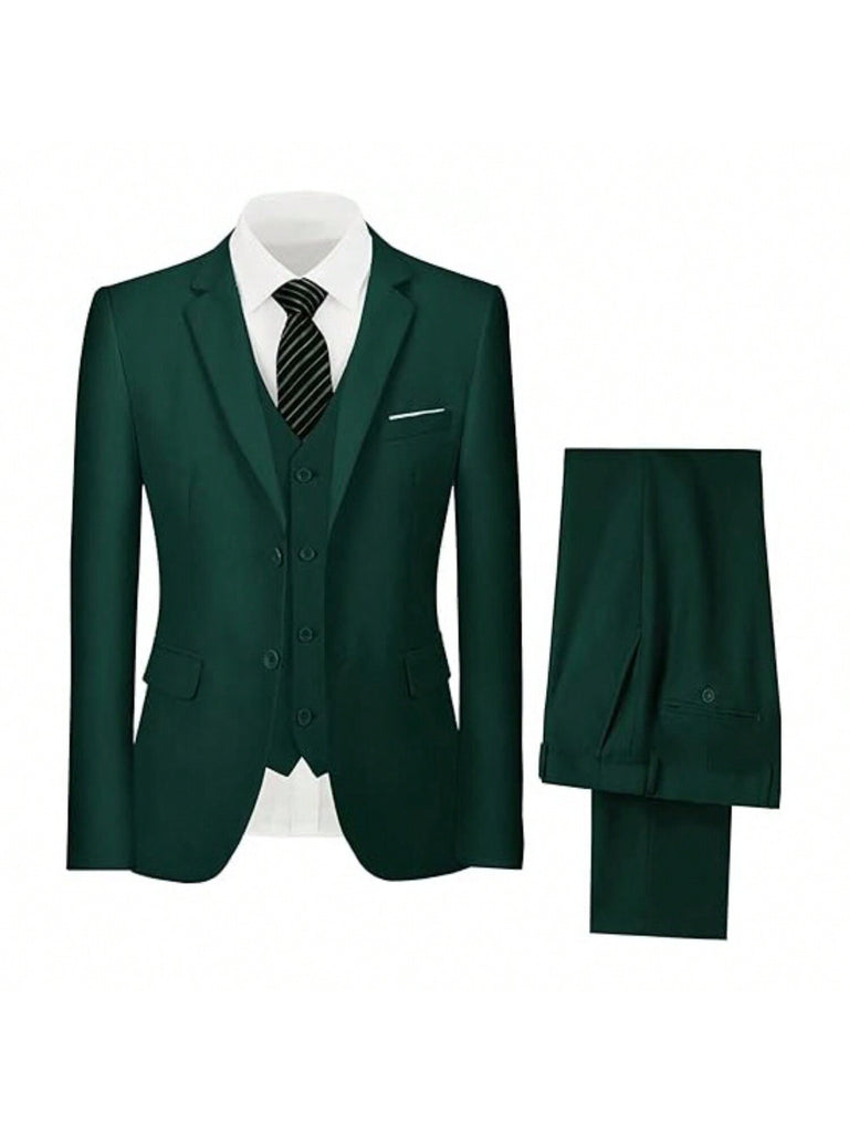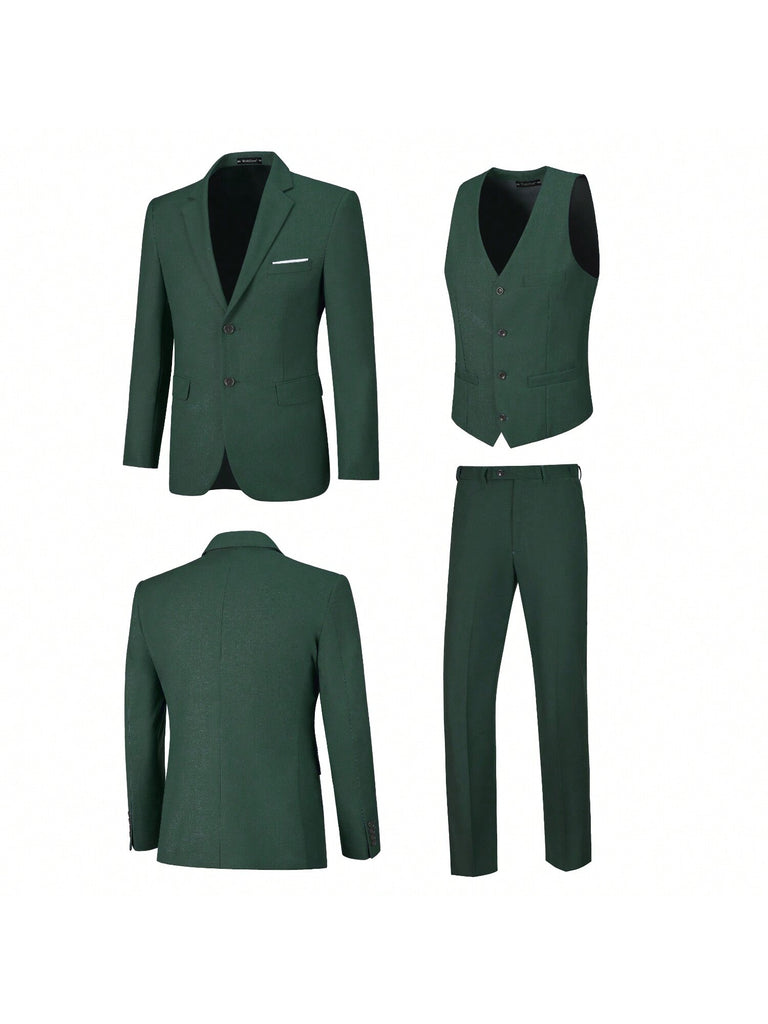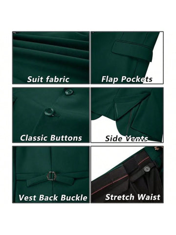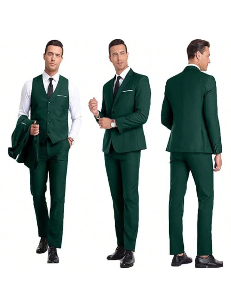 Men's 3 Piece Suit Set Business Wedding Party Formal Slim Tuxedo Jacket Coat Blazer Vest Pants Suit Dark Green Size XS-XXXL
