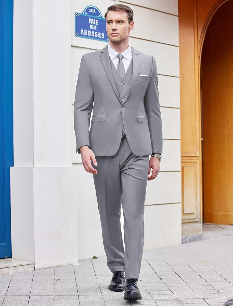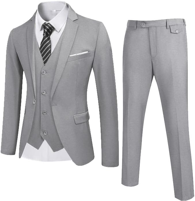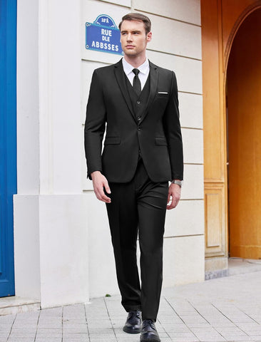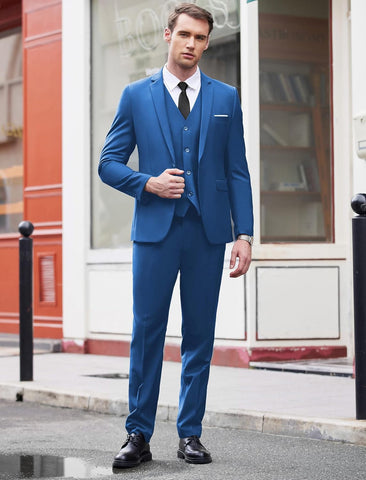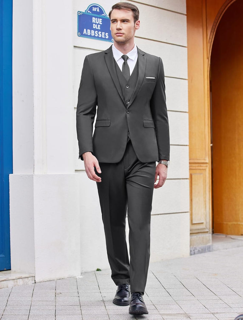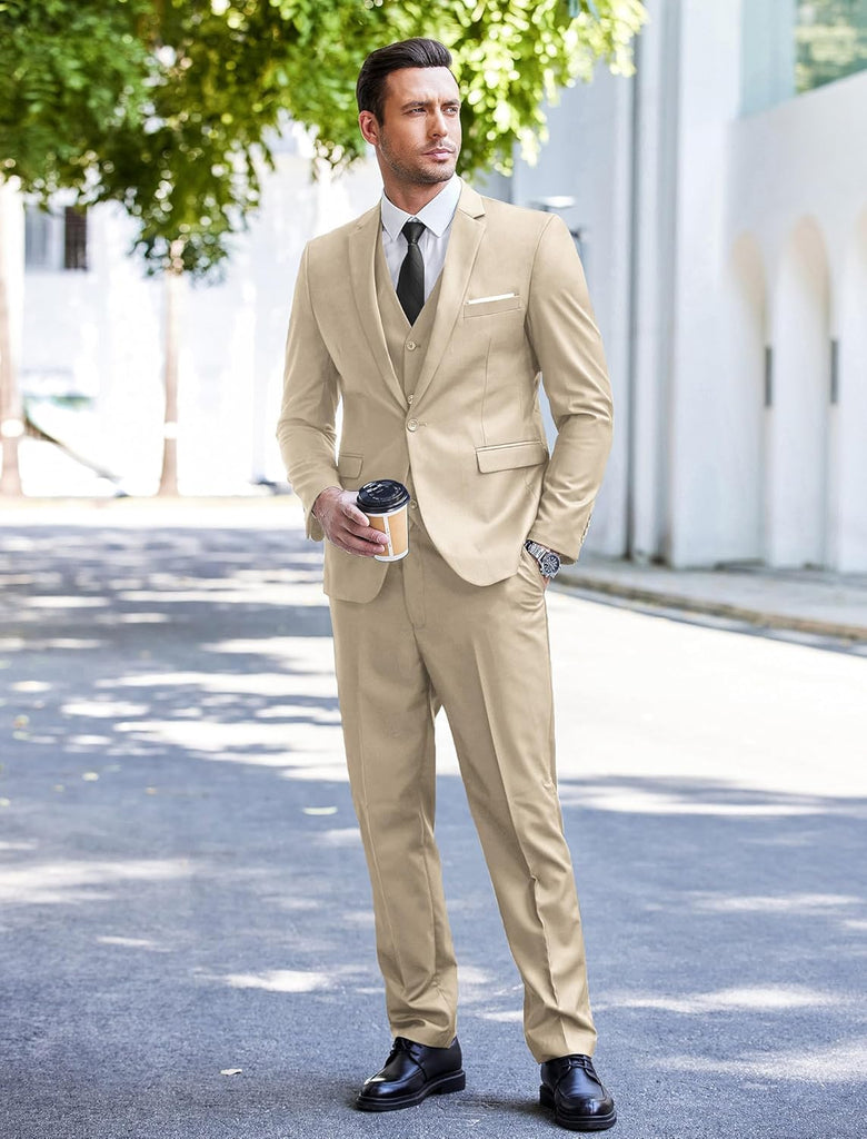 Men's 3 Piece Wedding Suit Set One Button Slim Fit Jacket Blazer Vest Pants Set Groom Prom Tuxedo Suits
