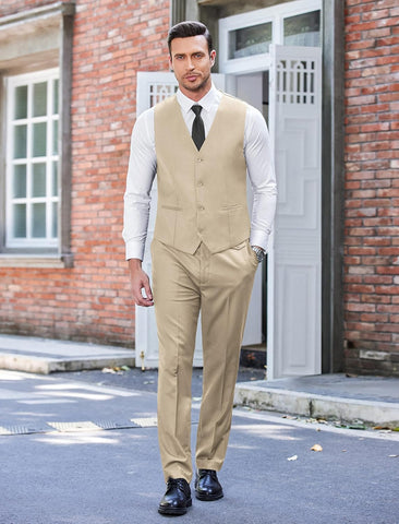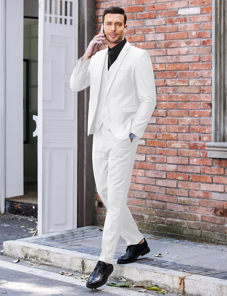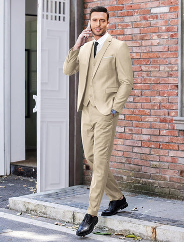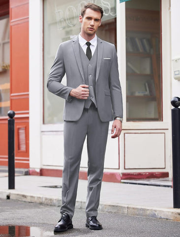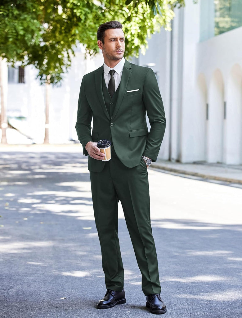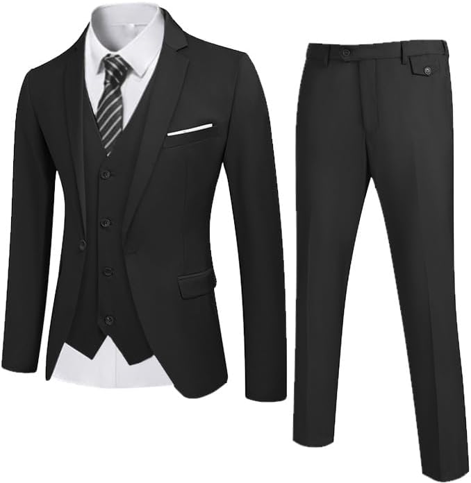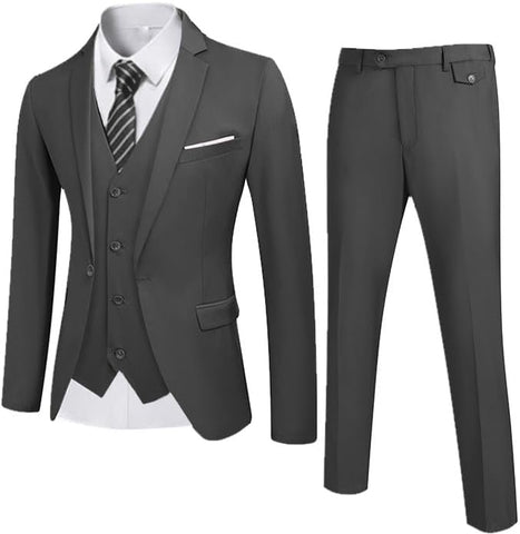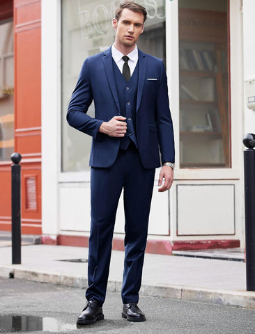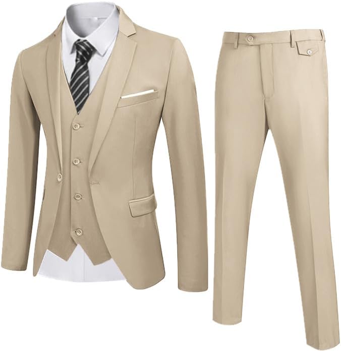 Men's 3 Piece Wedding Suit Set One Button Slim Fit Jacket Blazer Vest Pants Set Groom Prom Tuxedo Suits
