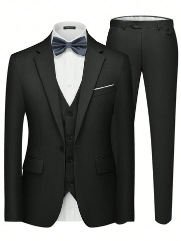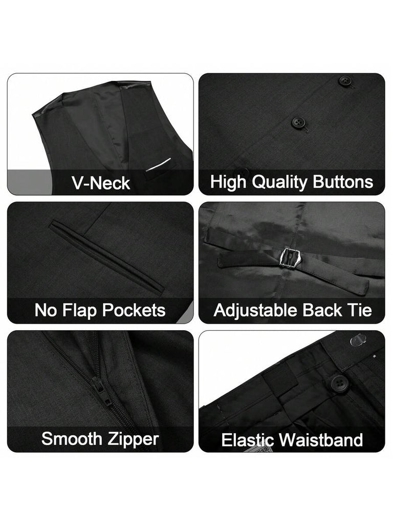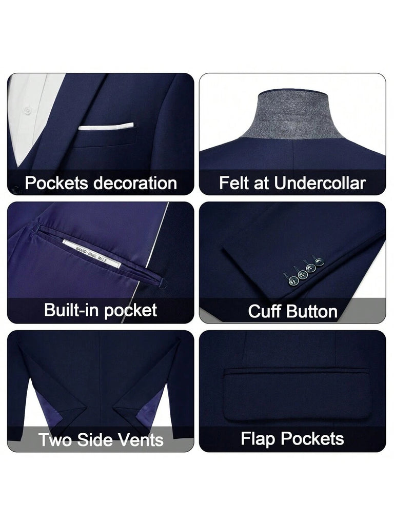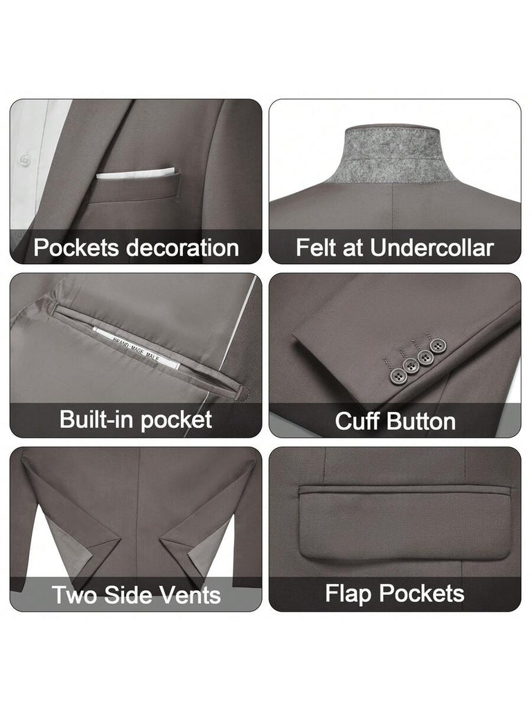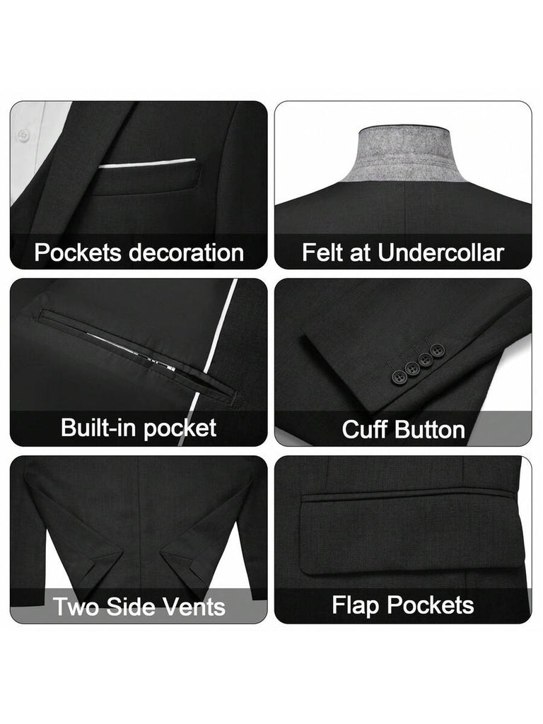Season: Spring/Fall. Features: Comfortable, Great quality, Soft. Top Type: Blazer. Details: Button. Pattern Type: Colorblock. Sleeve Length: Long Sleeve. Neckline: Notched. Bottom Type: Pants. Pattern Type: Plain. Details: Pocket. Fit Type: Regular Fit. Placket: Single Breasted. Sleeve Type: Regular Sleeve. Style: Business - Evening Attire. Color: Carbon Black. Fabric Elasticity: Non-Stretch. Length: Regular. Material: Woven Fabric. Composition: 80% Polyester, 20% Viscose. Care Instructions: Hand wash or professional dry clean. Lined For Added Warmth: No. Body: Lined. Lining: 100% Polyester. Pockets: Yes. Sheer: No.