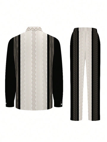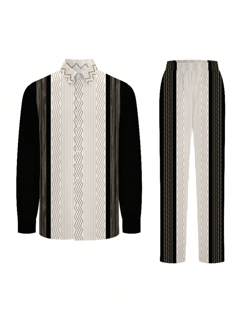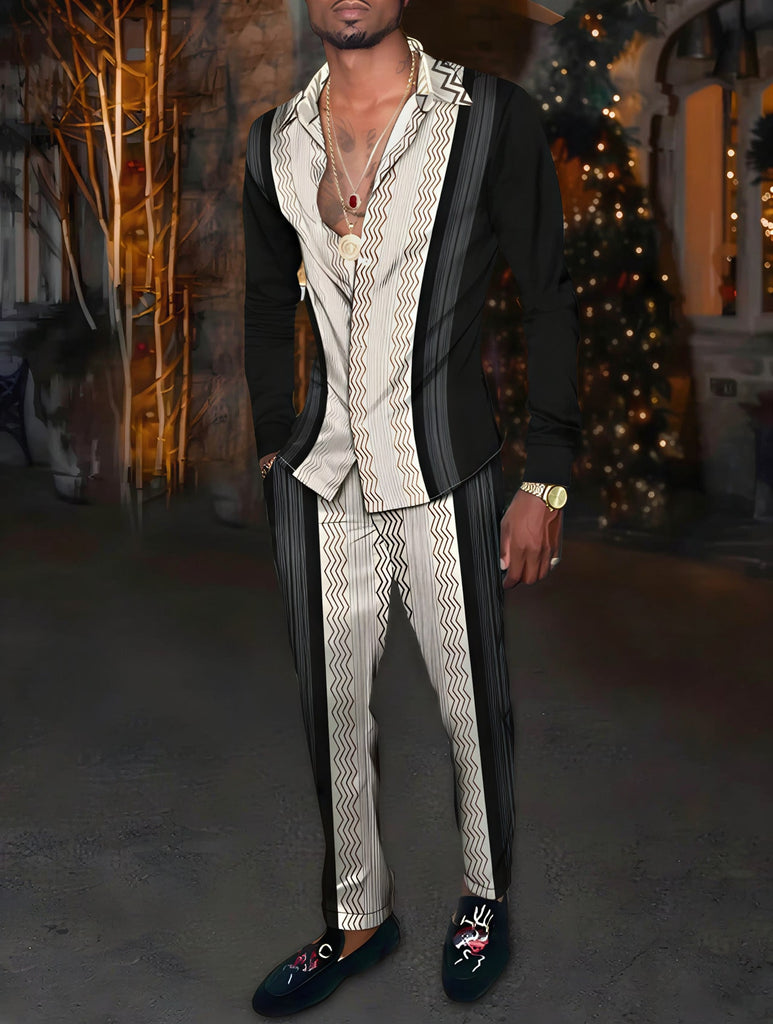 Season: Spring/Fall. Features: Breathable. Top Type: Blazer. Details: Button. Waist Line: High Waist. Sleeve Length: Long Sleeve. Bottom Type: Pants. Fit Type: Regular Fit. Placket: Single Breasted. Pattern Type: Striped. Sleeve Type: Regular Sleeve. Details: Button Front. Season: All. Style: Glamorous - Disco Style. Color: Multicolor. Fabric Elasticity: Non-Stretch. Length: Regular. Material: Simulated Effect Printing. Sheer: No.
