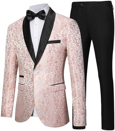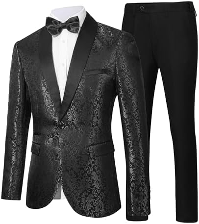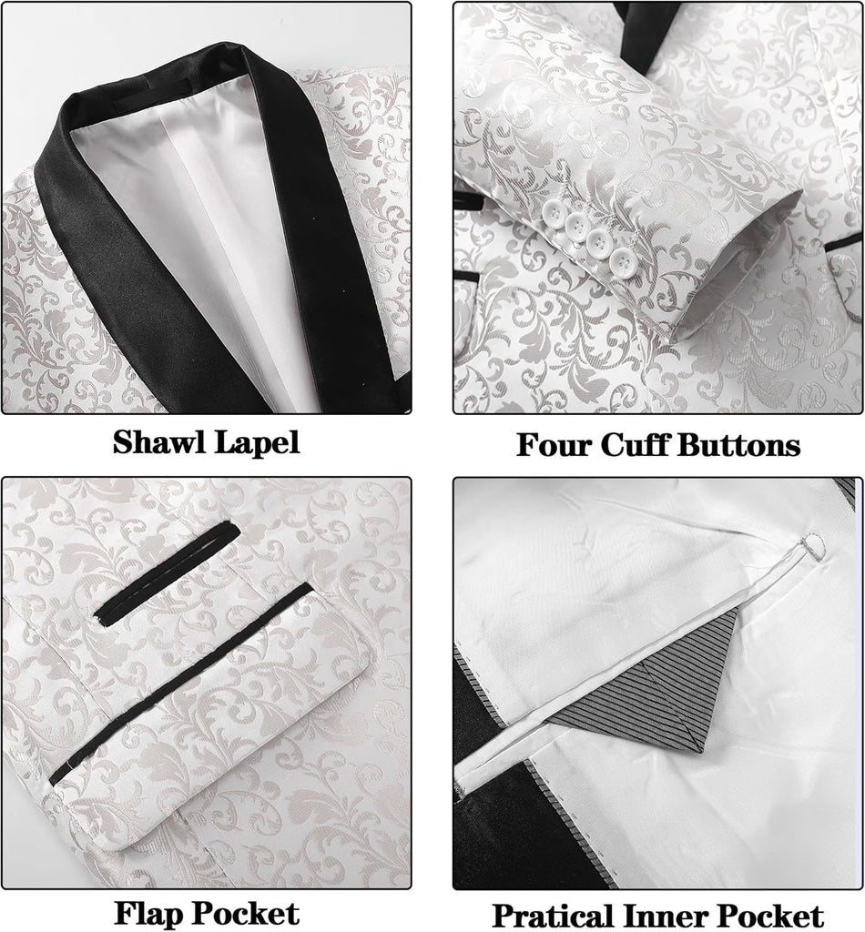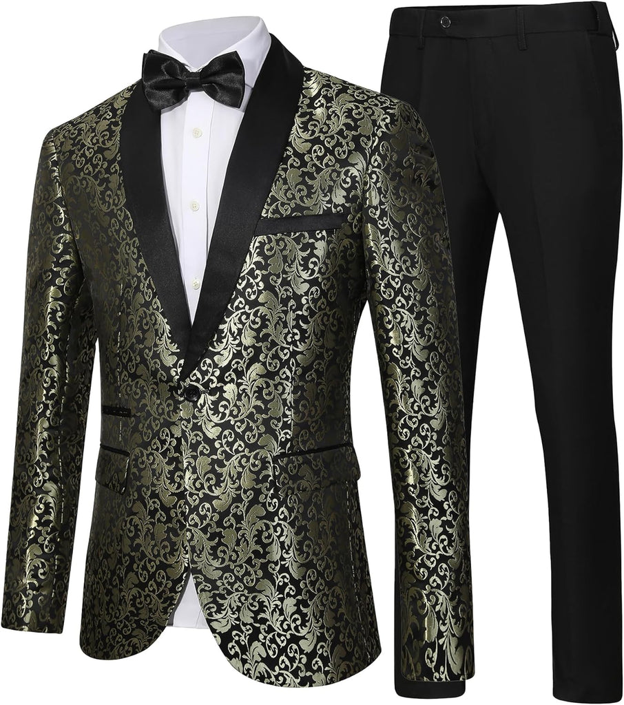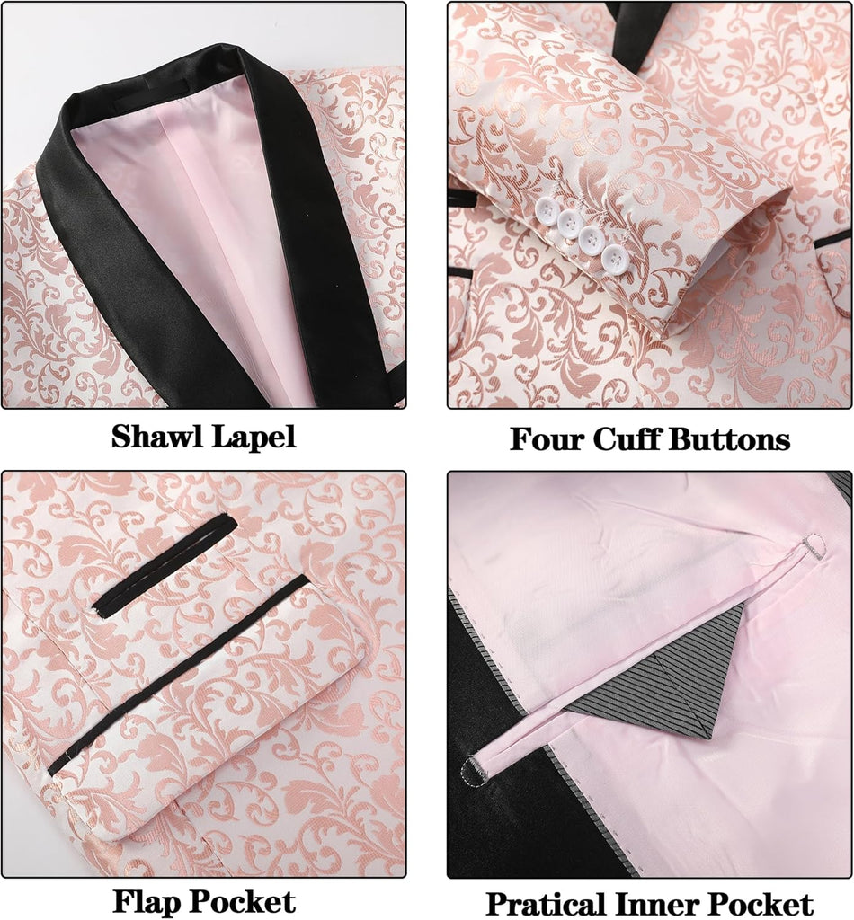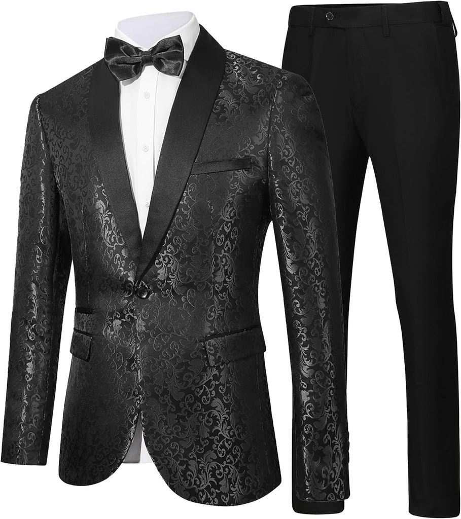 Men's Floral Dinner Party Prom Wedding Stylish Tuxedo Suits for Men One Button Dinner Jacket Pants Set