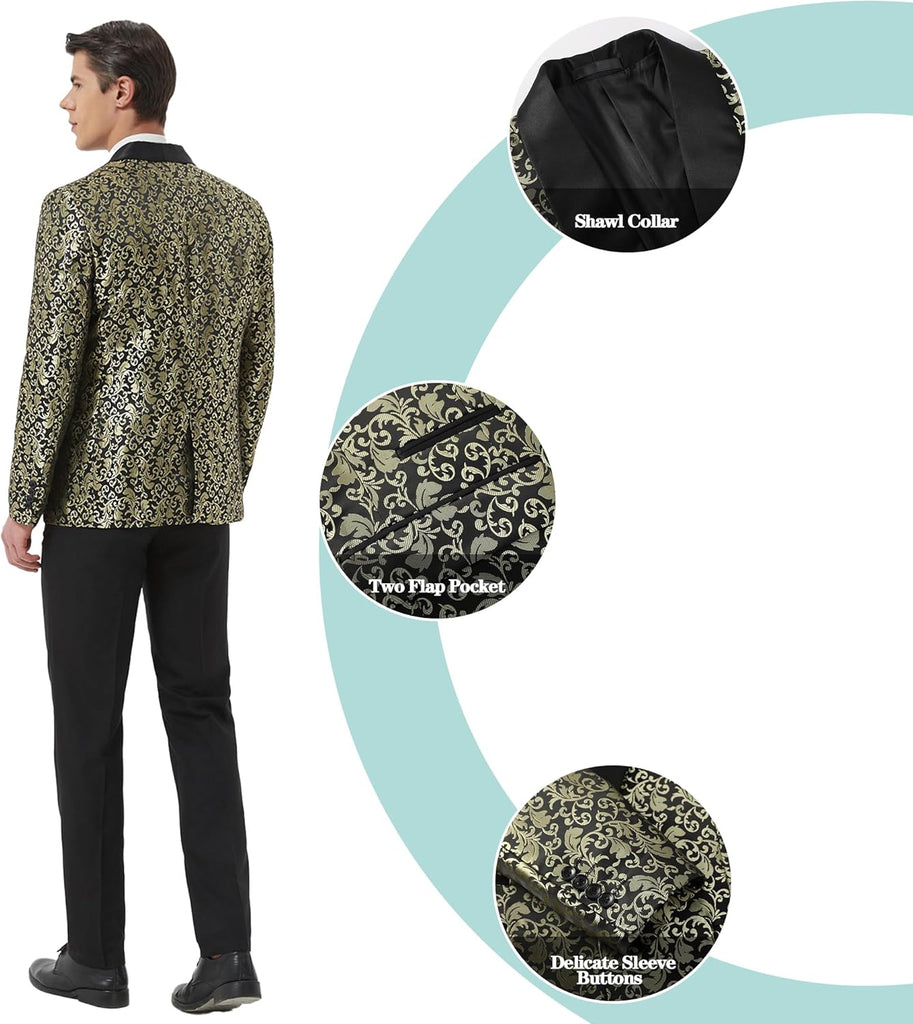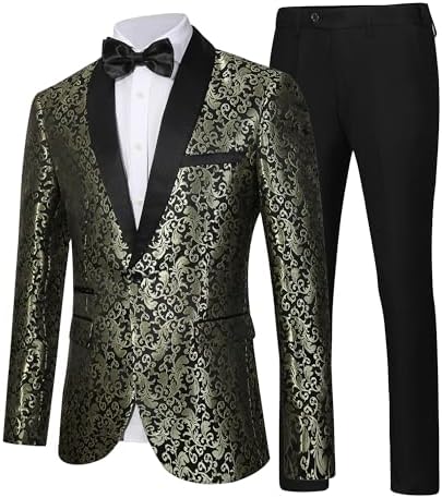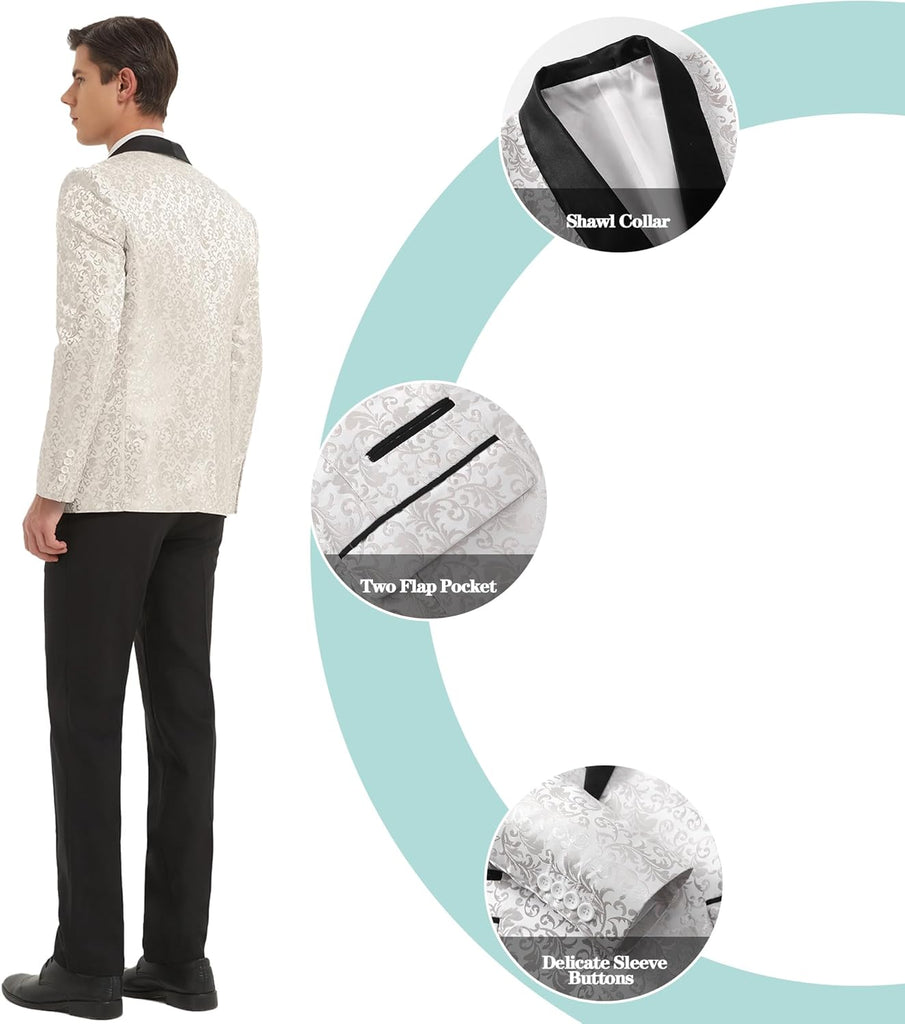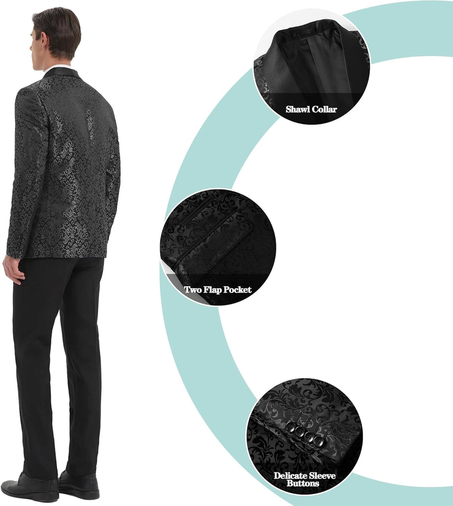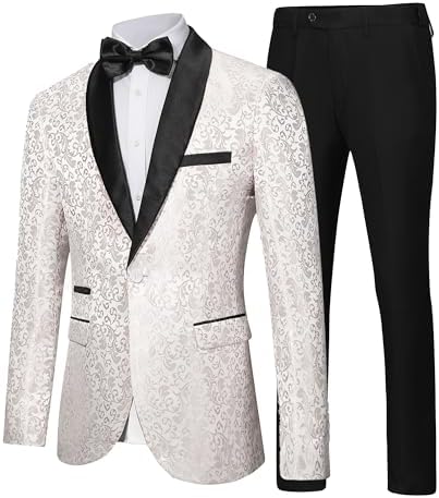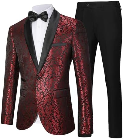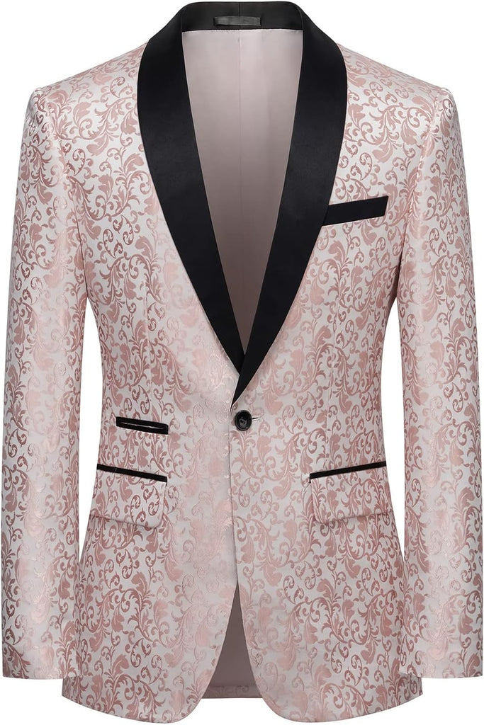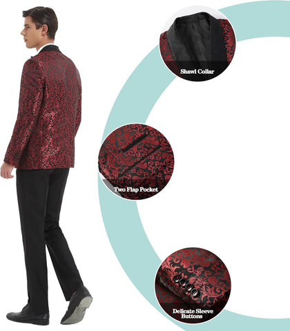 Men's Floral Dinner Party Prom Wedding Stylish Tuxedo Suits for Men One Button Dinner Jacket Pants Set