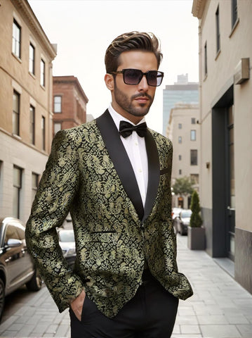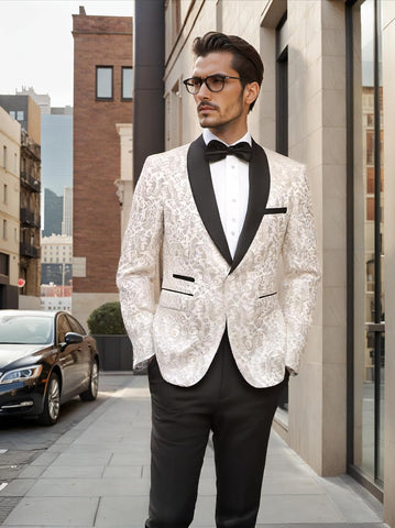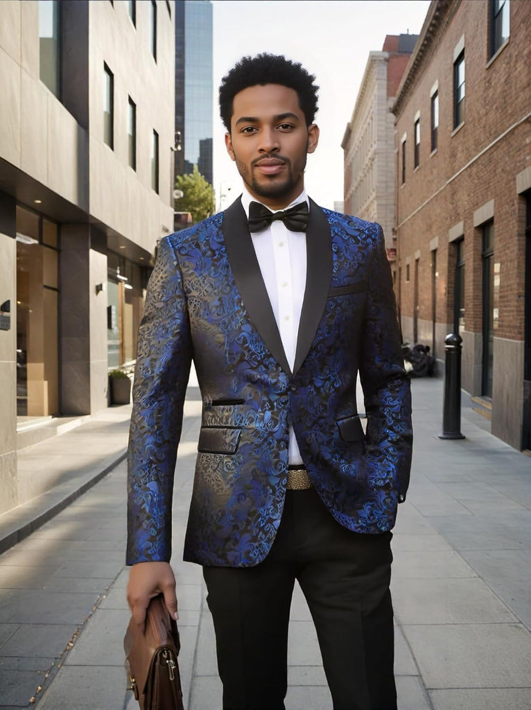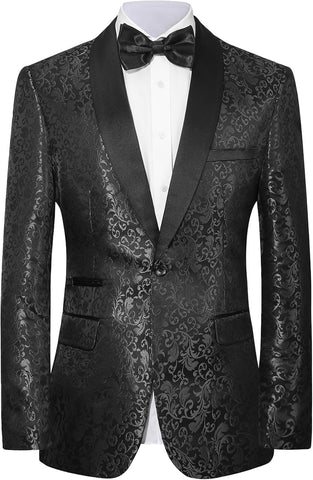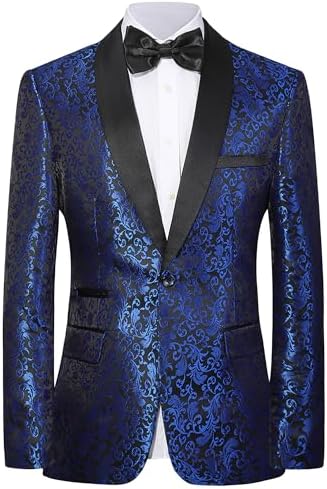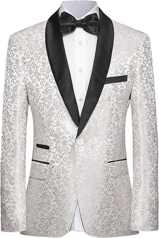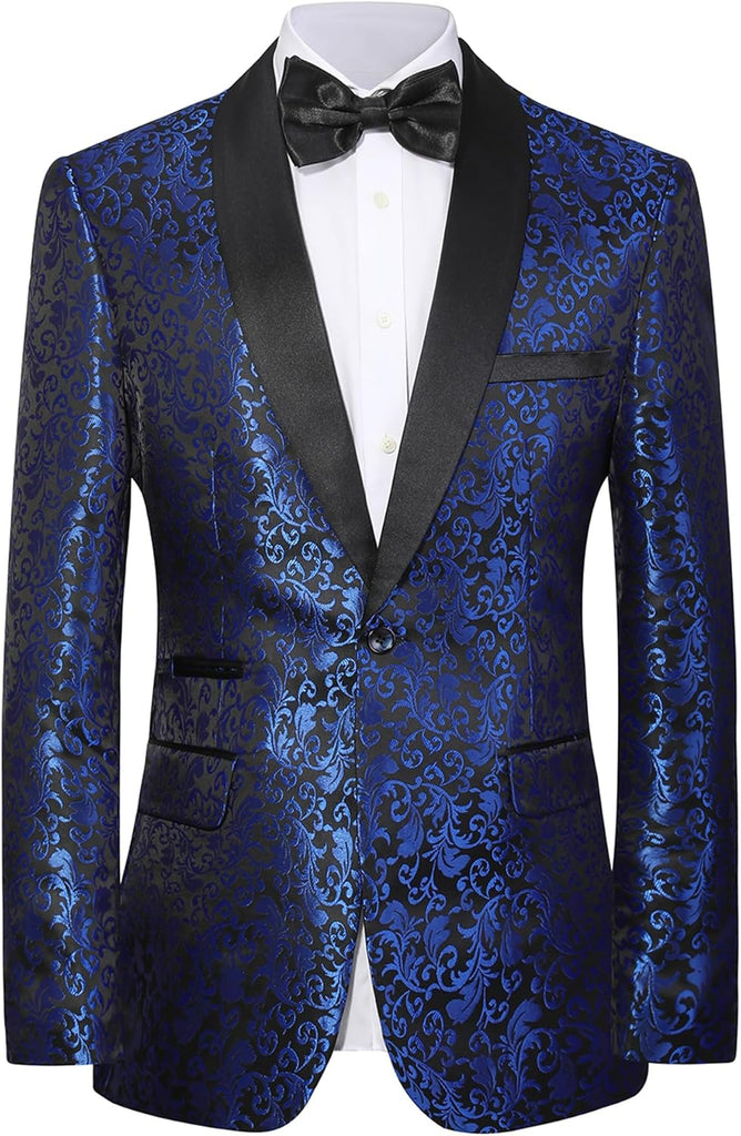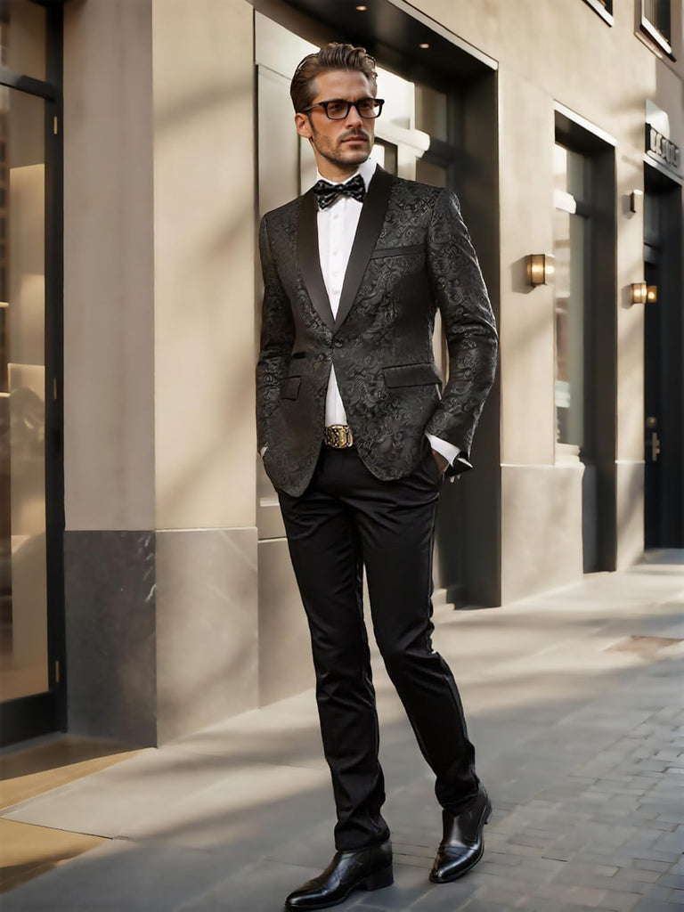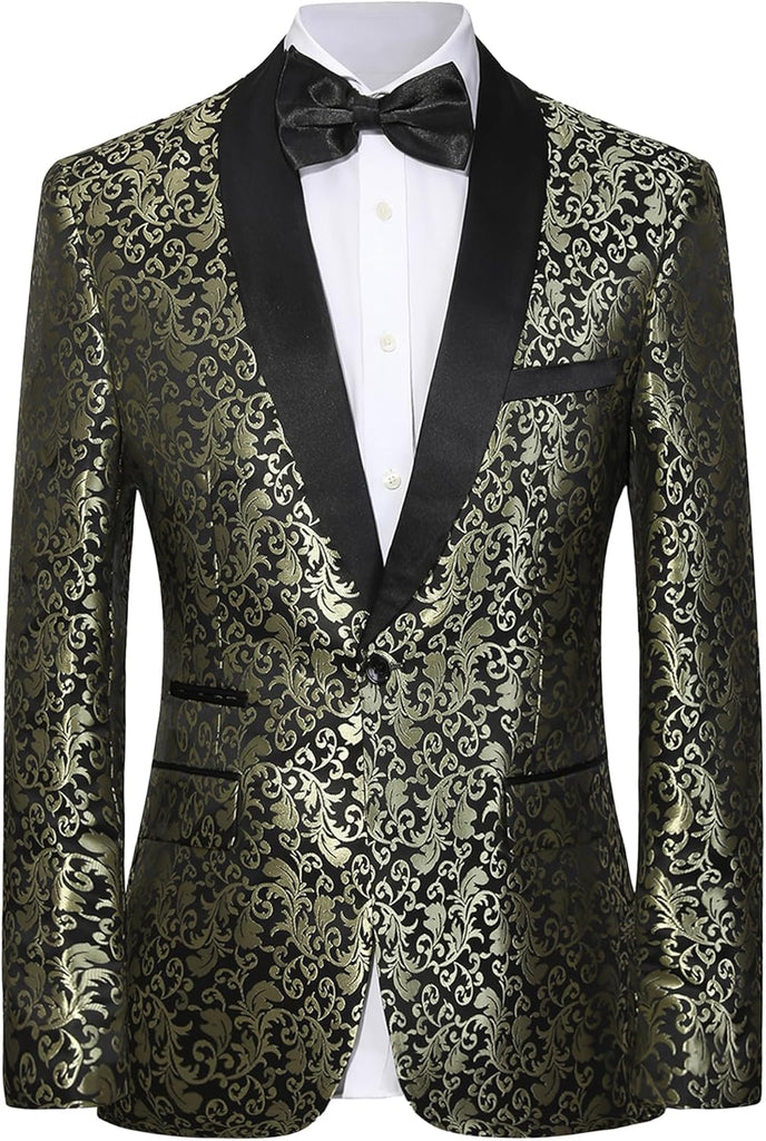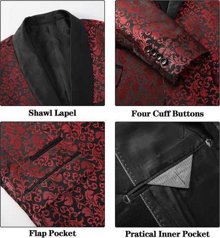 Men's Floral Dinner Party Prom Wedding Stylish Tuxedo Suits for Men One Button Dinner Jacket Pants Set