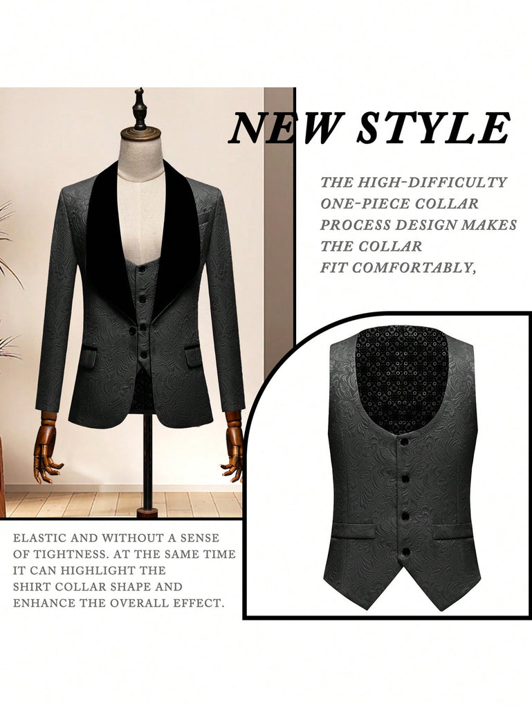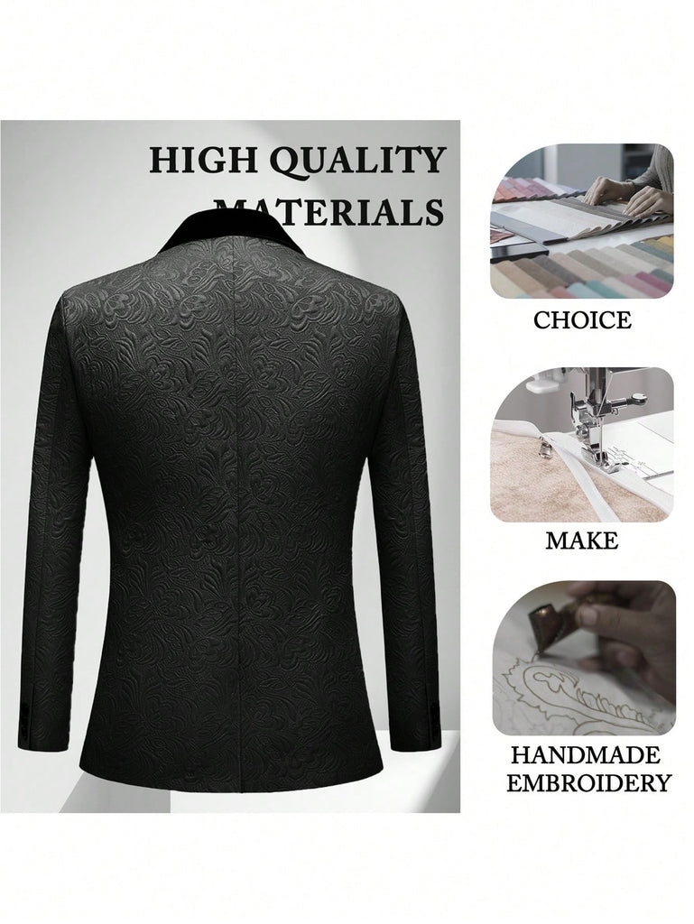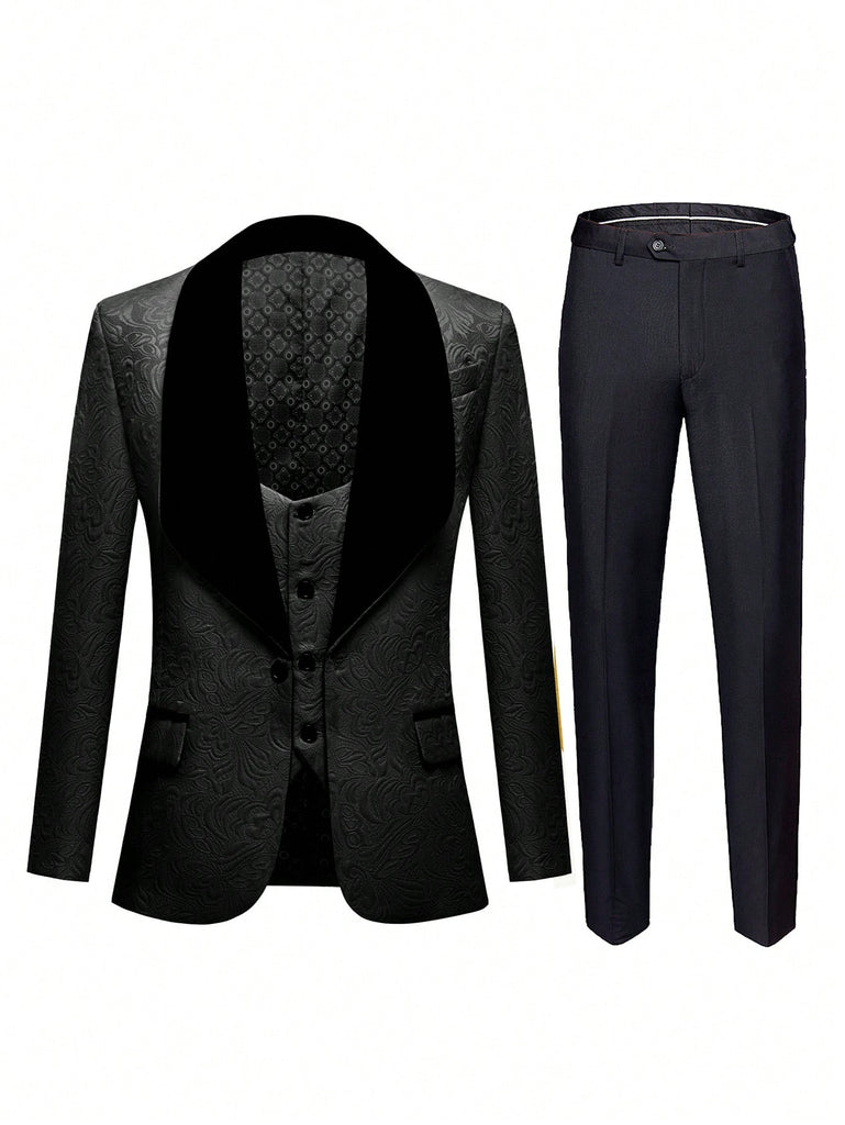 Season: Spring/Fall; Features: Comfortable, Great quality; Top Type: Blazer; Details: Button; Pattern Type: Colorblock, Paisley, All Over Print, Random Print; Sleeve Length: Long Sleeve; Bottom Type: Pants; Details: Pocket; Fit Type: Regular Fit; Neckline: Shawl Collar; Placket: Single Breasted; Top Type: Waistcoat; Sleeve Type: Regular Sleeve; Style: Business - Evening Attire; Color: Black; Fabric Elasticity: Slight Stretch; Length: Regular; Material: Woven Fabric; Composition: 100% Polyester; Care Instructions: Hand wash or professional dry clean; Lined For Added Warmth: No; Body: Lined; Lining: 100% Polyester; Pockets: Yes; Sheer: No