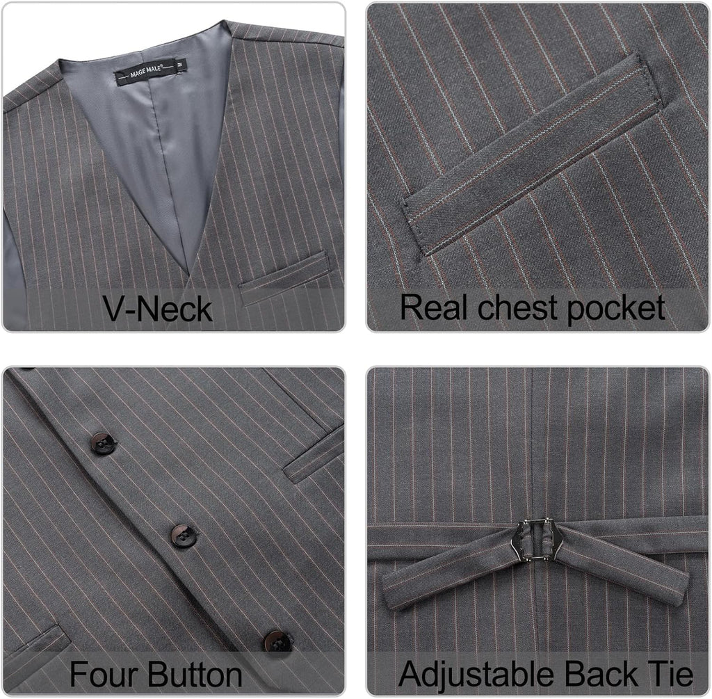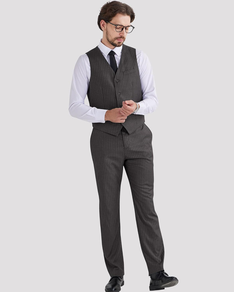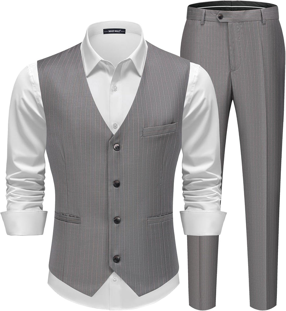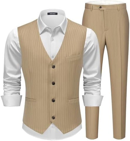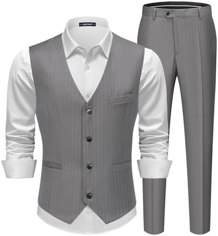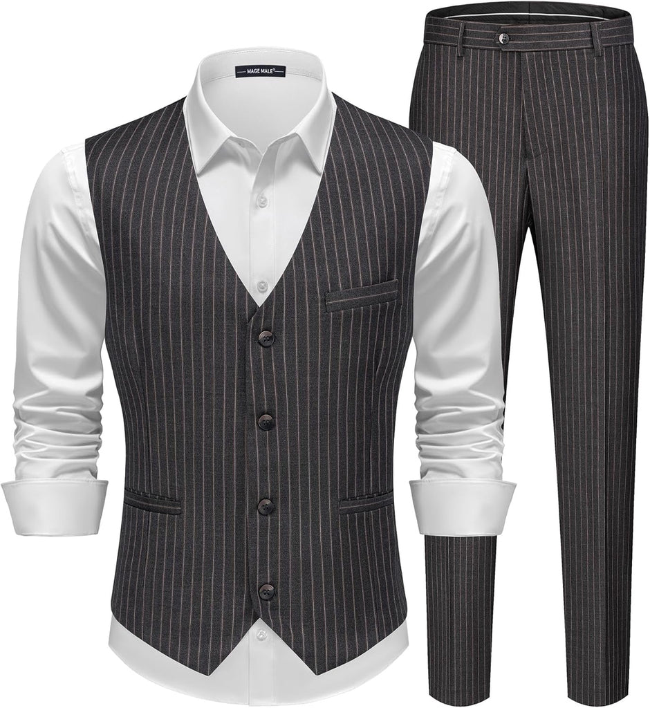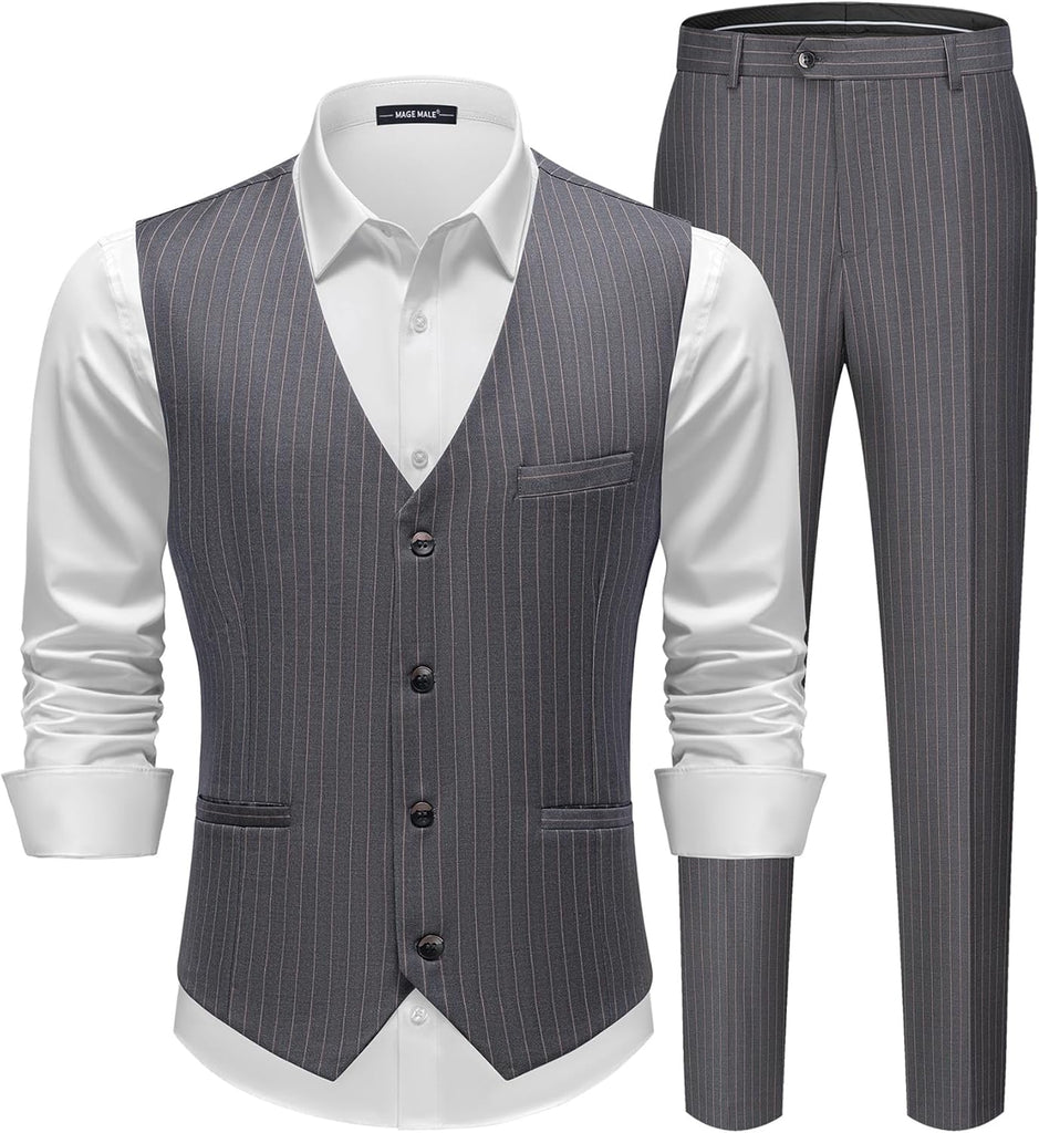 Men's Pinstripe Suit 2 Piece Vest and Pants Set Wedding Groomsmen Summer Slim Fit Formal Prom Tuxedo