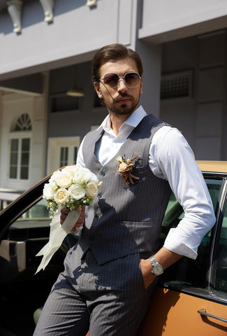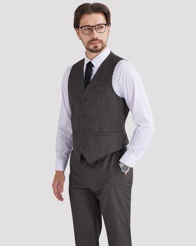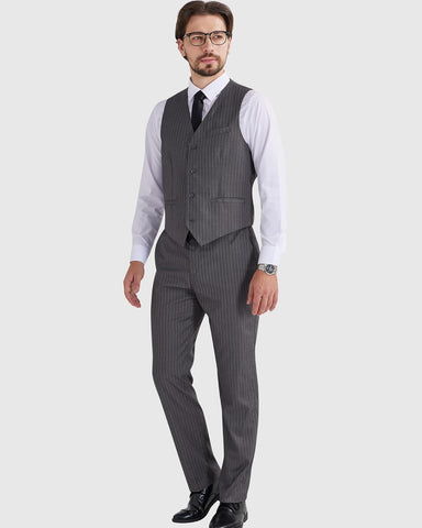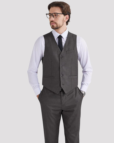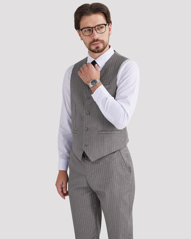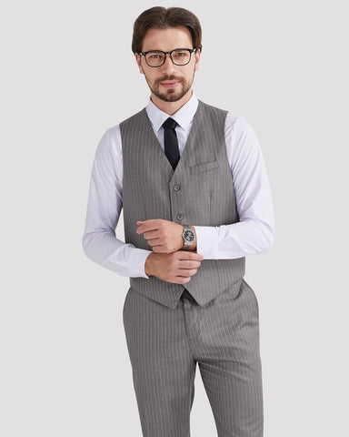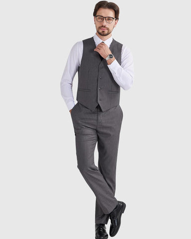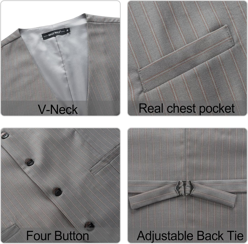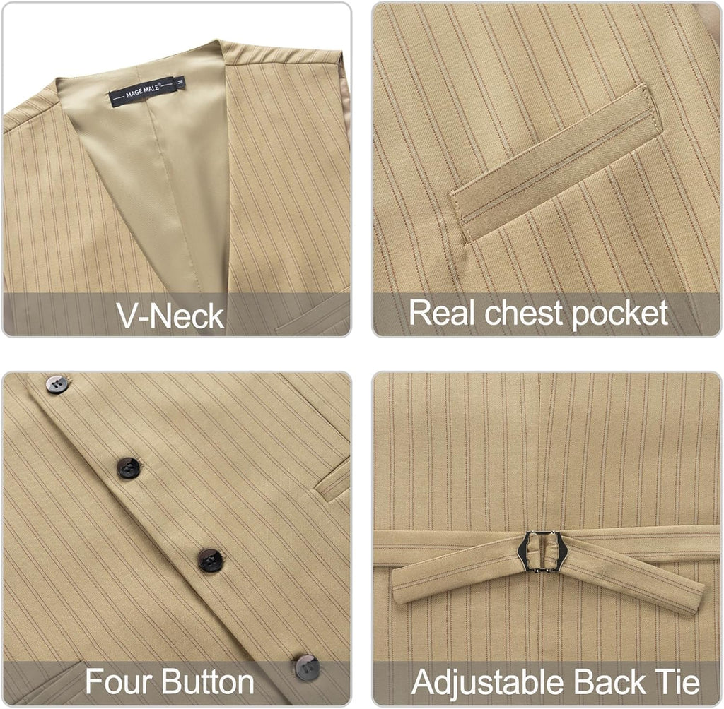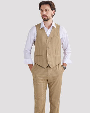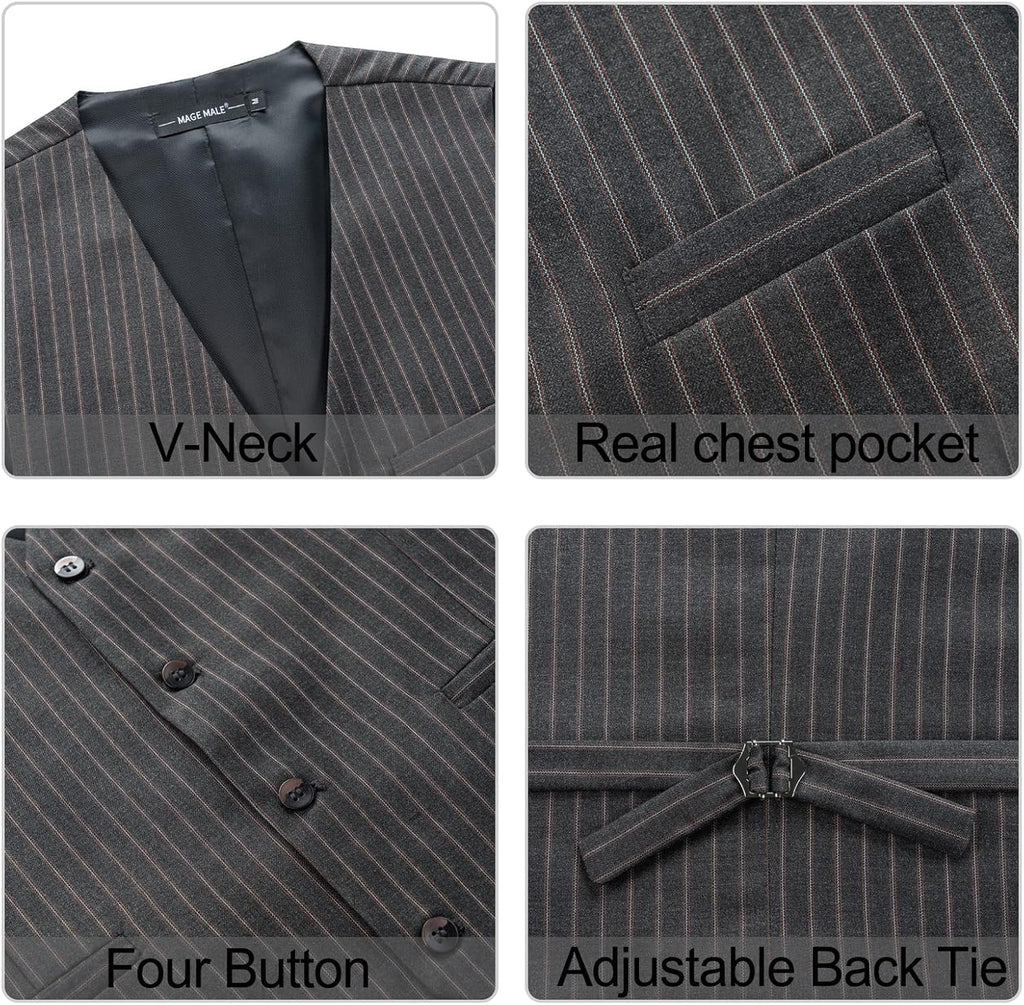 Men's Pinstripe Suit 2 Piece Vest and Pants Set Wedding Groomsmen Summer Slim Fit Formal Prom Tuxedo