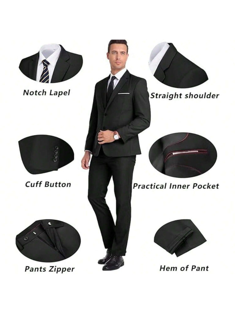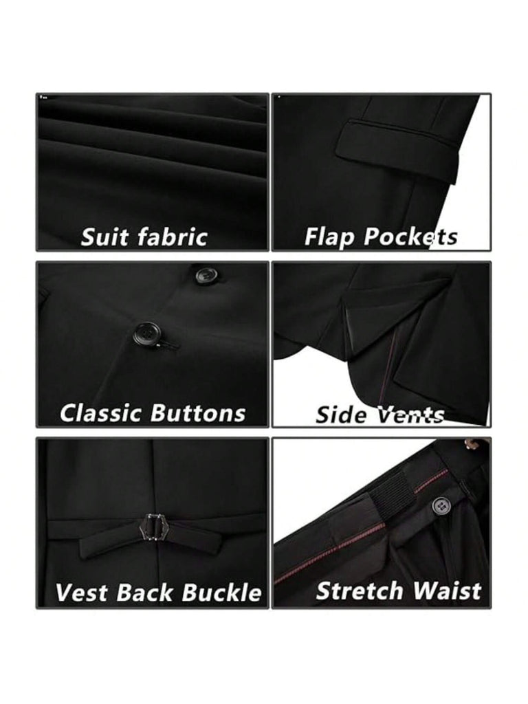 Season: Spring/Fall. Features: Great quality, Soft. Top Type: Blazer. Festivals: Christmas, Halloween, Thanksgiving Day, Valentine's Day. Details: Double Button, Pocket. Occasion: Going Out, Night Out, Weekend Casual, Holiday, Garden, Formal & Evening, Photoshoot, Anniversary. Fit Type: Regular Fit. Placket: Single Breasted. Season: Summer. Top Type: Waistcoat. Sleeve Length: Long Sleeve. Neckline: Lapel. Waist Line: Natural(Mid Waist). Belt: No. Bottom Type: Pants. Pattern Type: Plain. Sleeve Type: Regular Sleeve. Placket type: Placket. Scenes: Holiday, School, Vacation, Party, Office. Theme: Daily. Ideal for: conventional. Style: Business - Formal Business. Color: Black. Fabric Elasticity: Slight Stretch. Length: Regular. Material: Fabric. Composition: 80% Polyester, 20% Viscose. Care Instructions: Hand wash or professional dry clean. Lined For Added Warmth: No. Body: Lined. Lining: 100% Polyester. Pockets: Yes. Sheer: No.