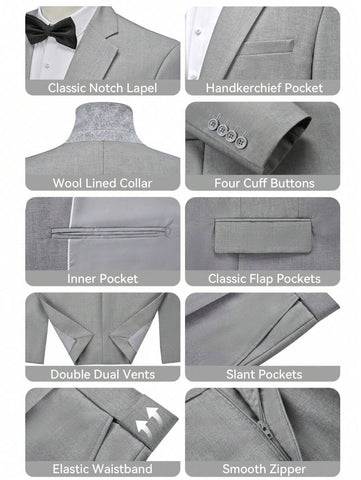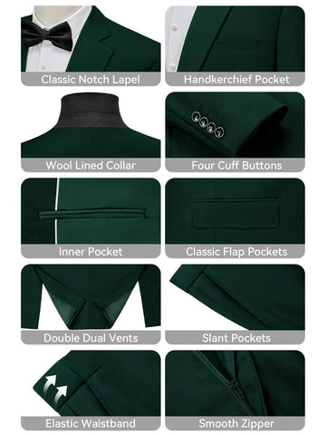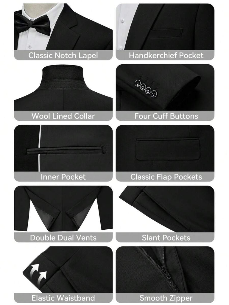 Men's Suits Slim Fit 2 Piece One Button Blazer Jacket Wedding Prom Tuxedo Pants Set