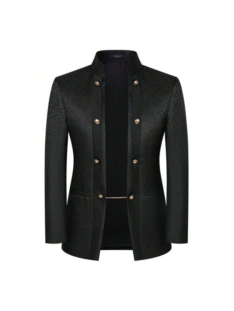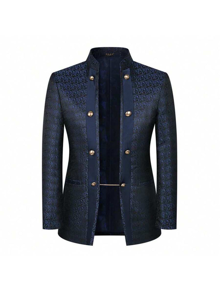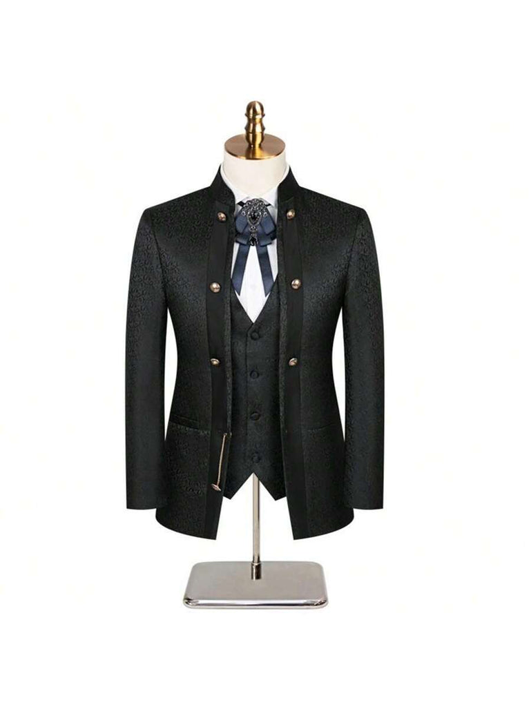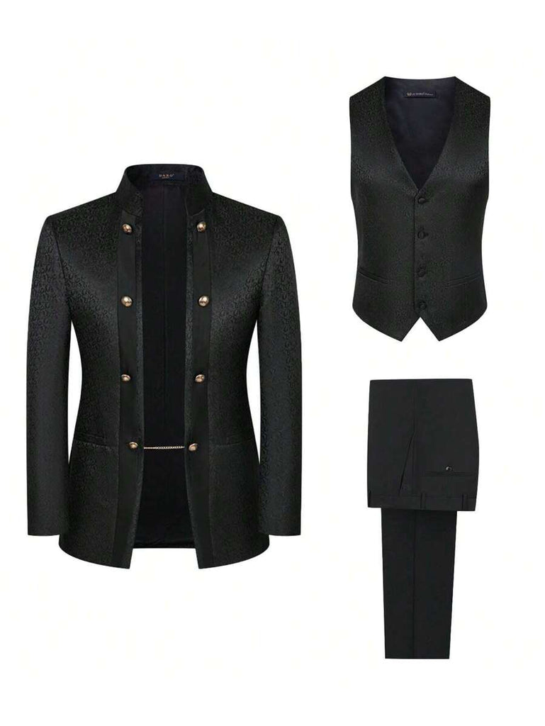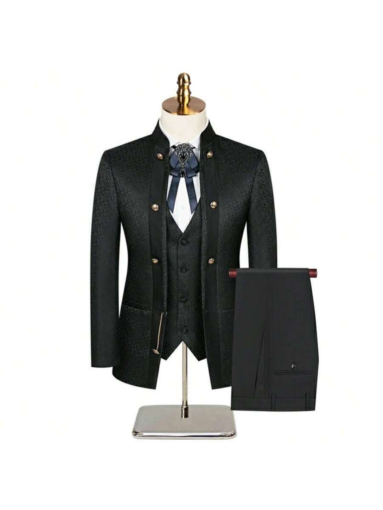 Features: Great quality. Top Type: Blazer. Details: Button. Placket: Double Breasted. Sleeve Length: Long Sleeve. Pattern Type: Paisley. Bottom Type: Pants. Fit Type: Regular Fit. Neckline: Stand Collar. Season: Summer. Sleeve Type: Regular Sleeve. Placket type: Placket. Pattern Type: Baroque. Style: Business - Evening Attire. Scenes: Business Commuting, Formal Business, Banquets. Color: Black. Fabric Elasticity: Non-Stretch. Length: Regular. Care Instructions: Hand wash or professional dry clean. Pockets: Yes. Sheer: No.