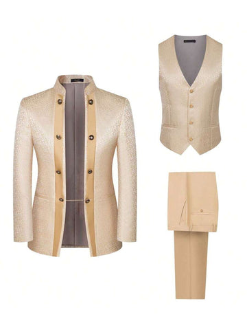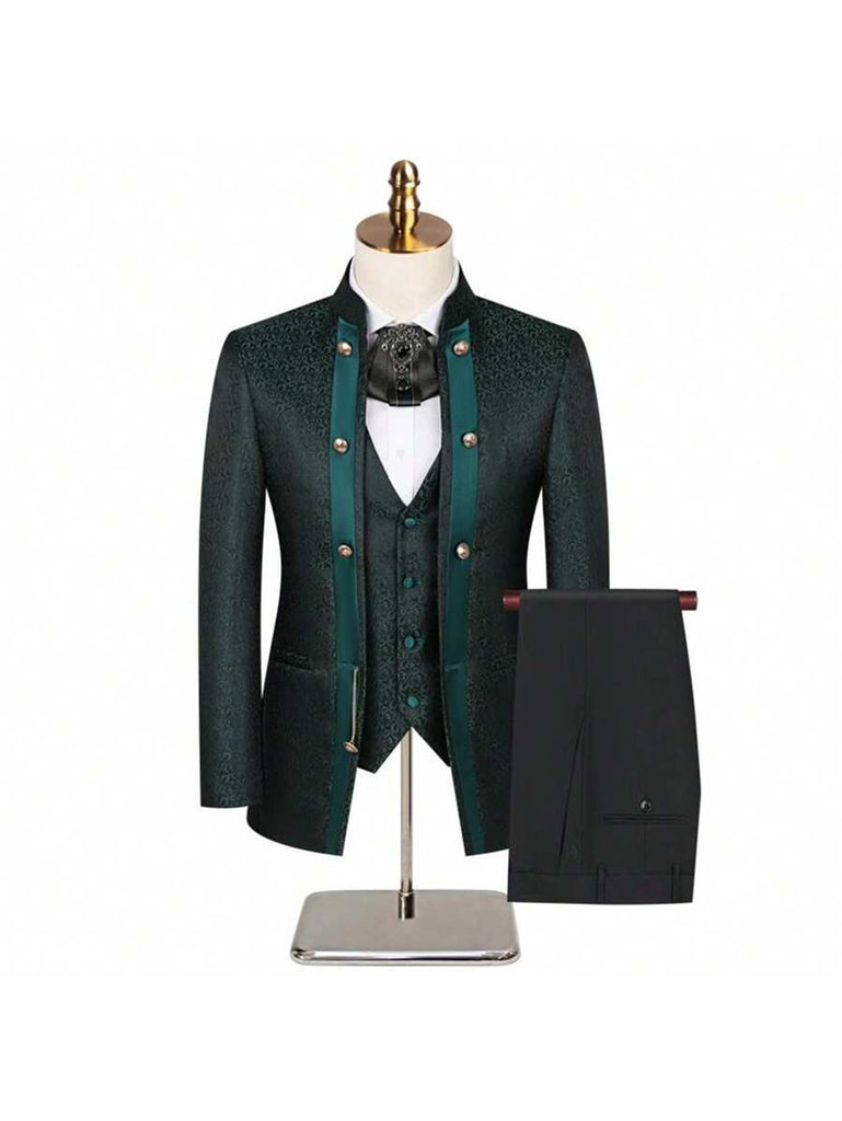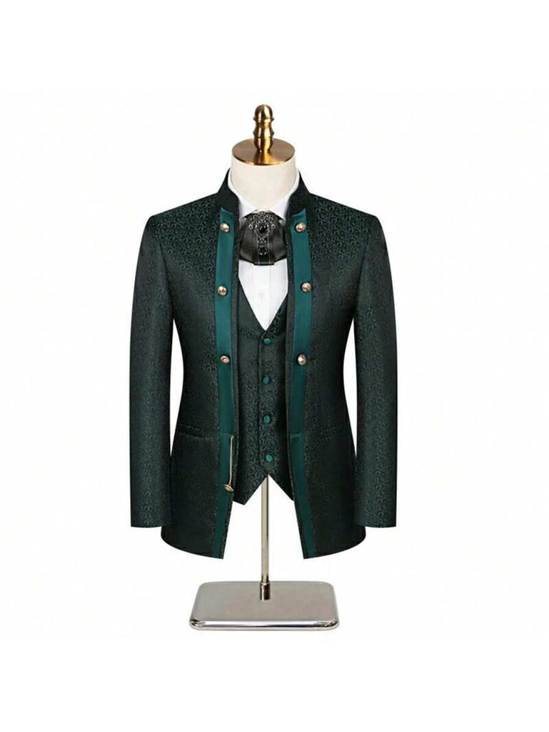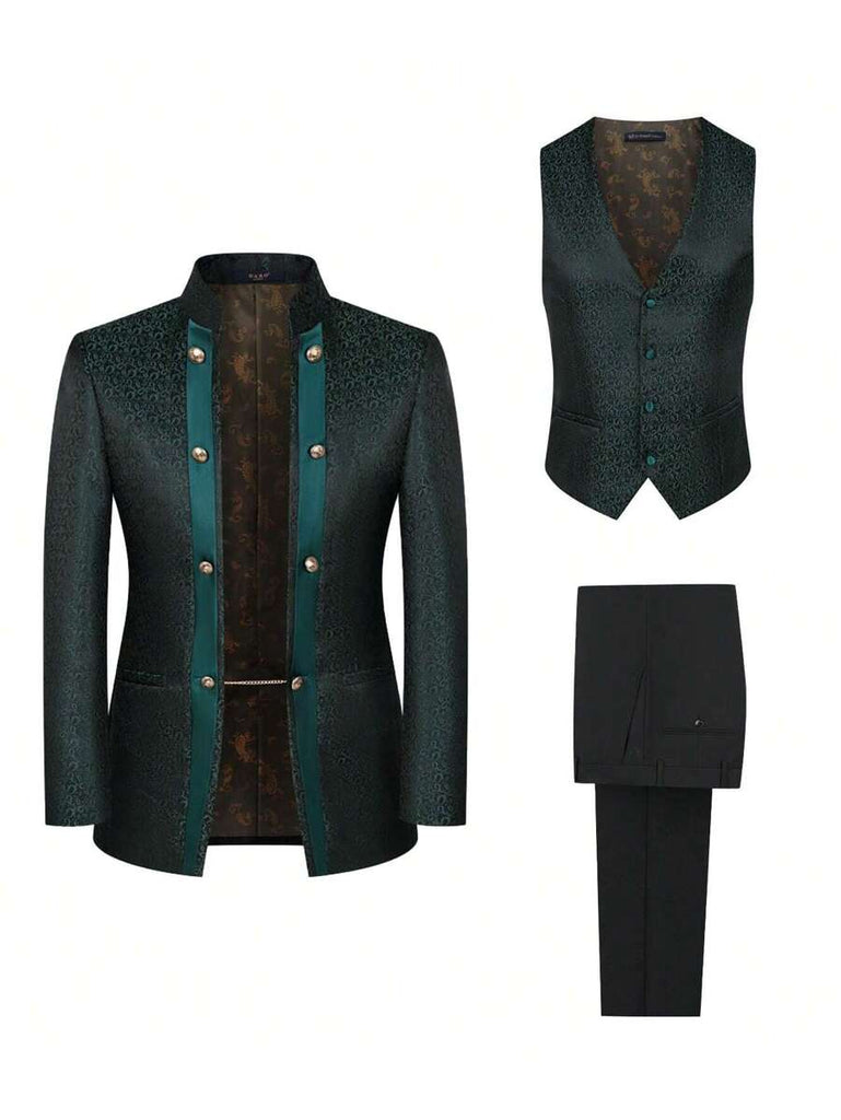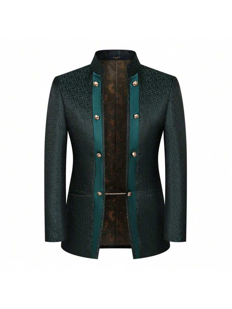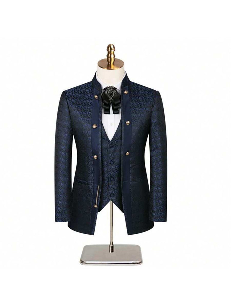 Features: Great quality. Top Type: Blazer. Details: Button. Placket: Double Breasted. Sleeve Length: Long Sleeve. Pattern Type: Paisley. Bottom Type: Pants. Fit Type: Regular Fit. Neckline: Stand Collar. Season: Summer. Sleeve Type: Regular Sleeve. Placket type: Placket. Pattern Type: Baroque. Style: Business - Evening Attire. Scenes: Business Commuting, Formal Business, Banquets. Color: Black. Fabric Elasticity: Non-Stretch. Length: Regular. Care Instructions: Hand wash or professional dry clean. Pockets: Yes. Sheer: No.