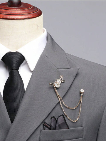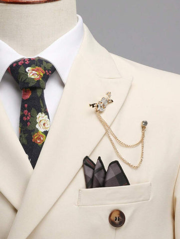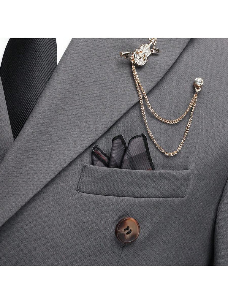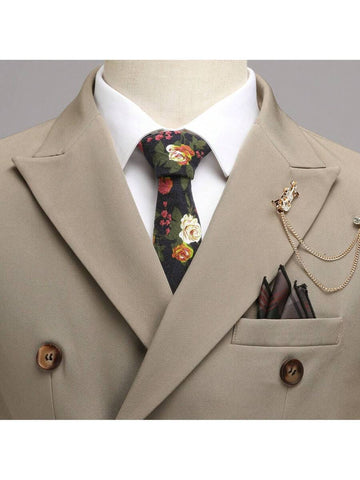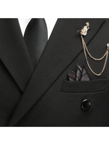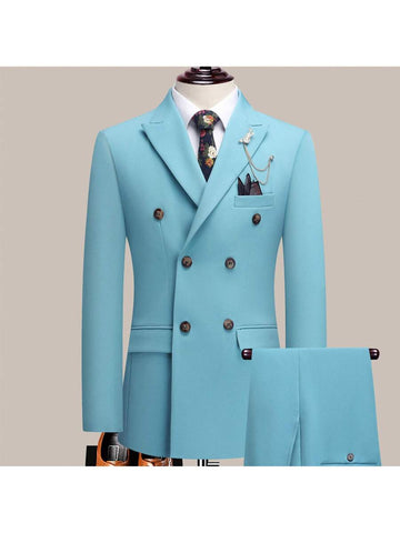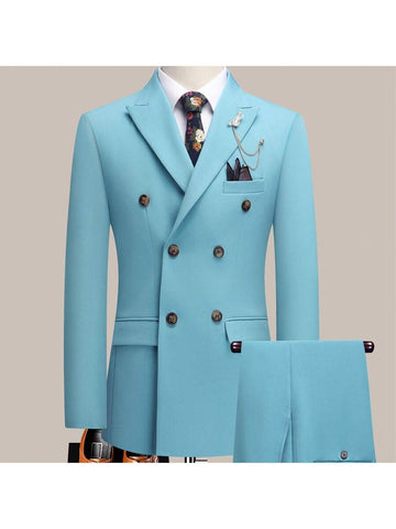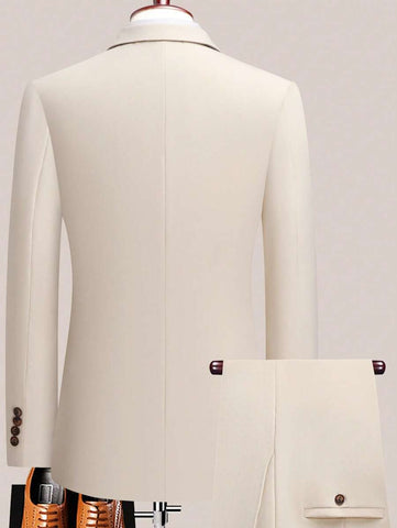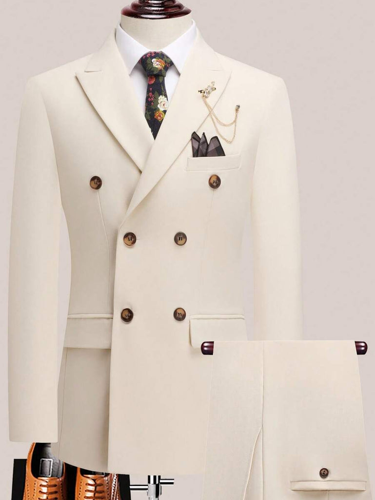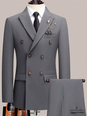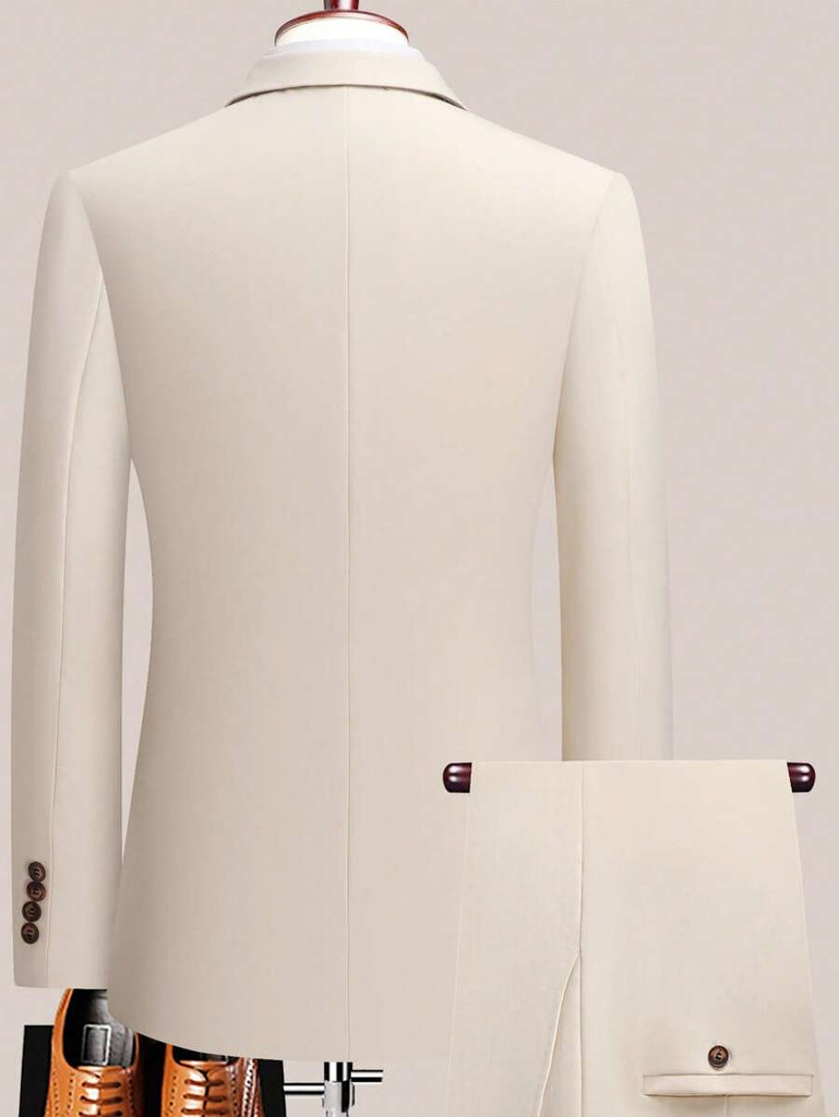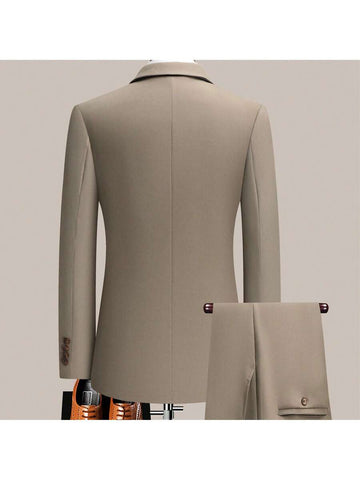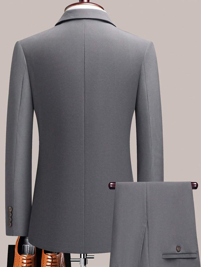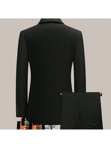 The Latest Men's Solid Color Suit Two-Piece Set With Lapel Collar And Double Breasted Buttons For Four Seasons