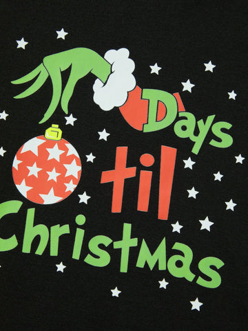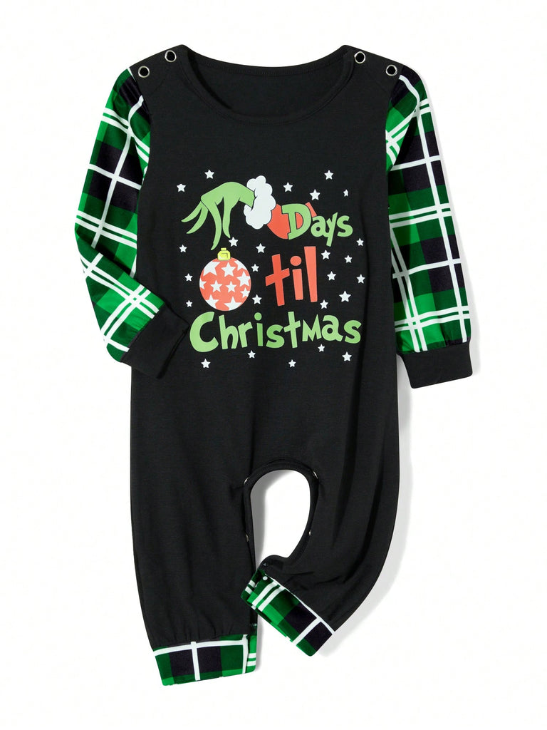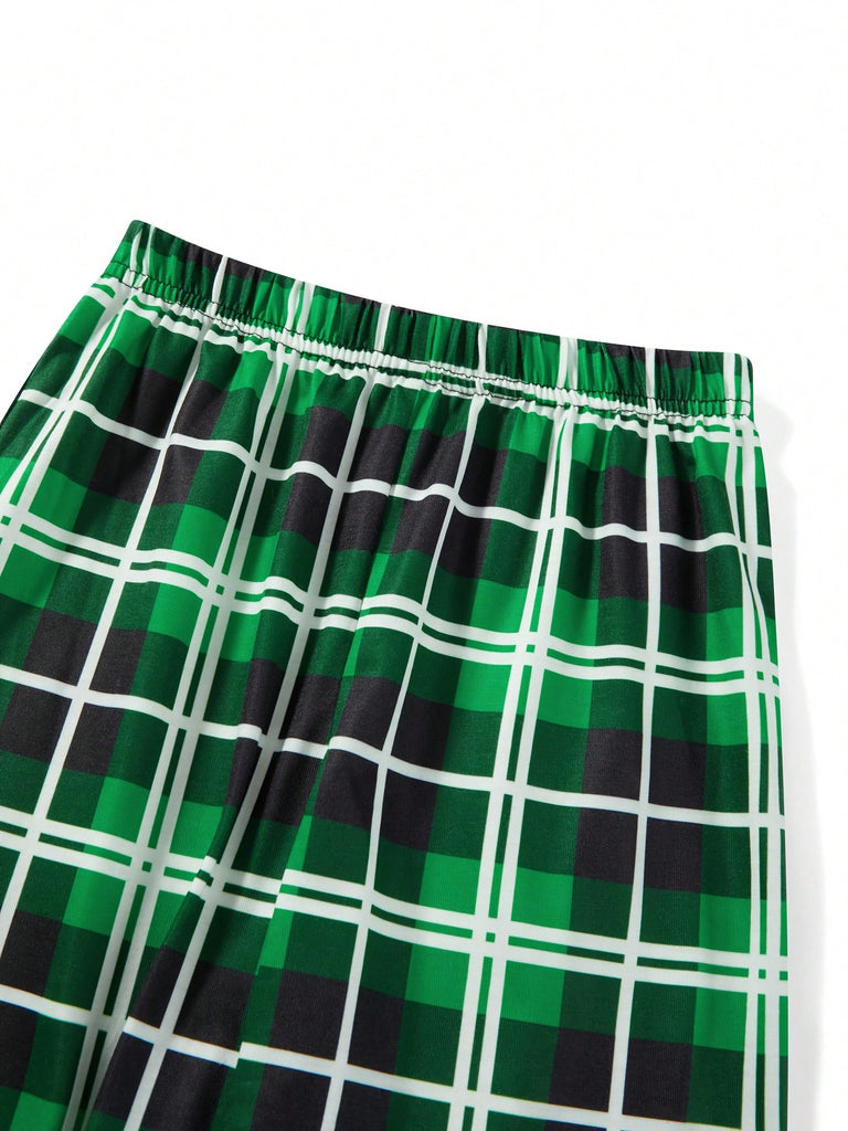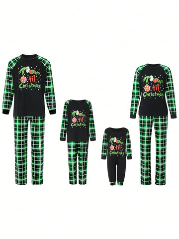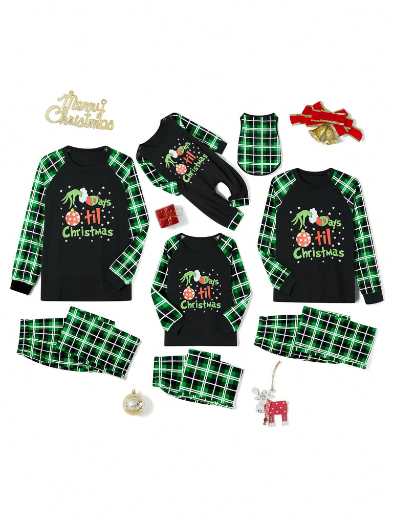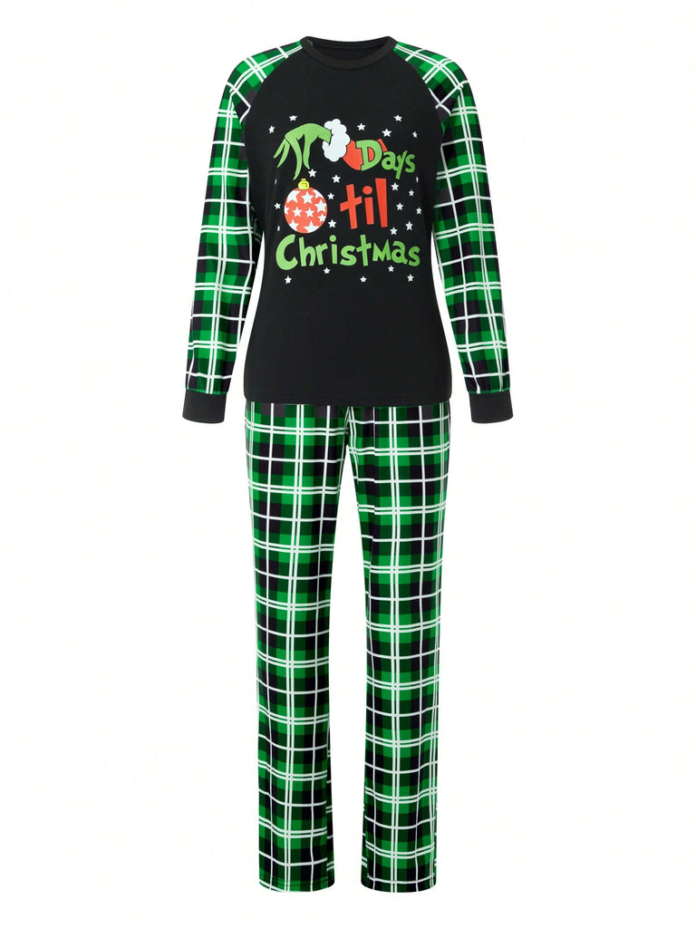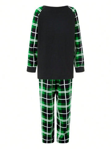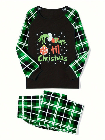 Christmas Family Pajamas Matching Set, Long Sleeve Letters Print T-Shirt With Plaid Pants Sleepwear Loungewear