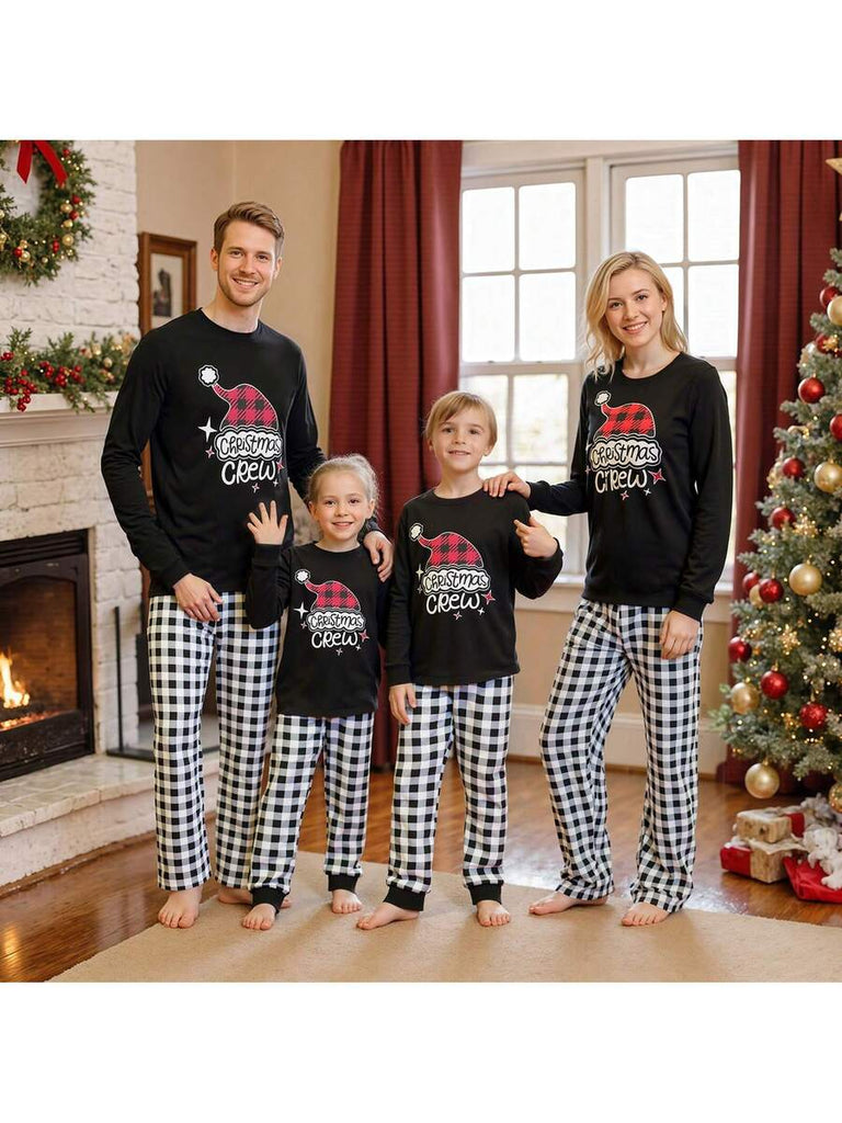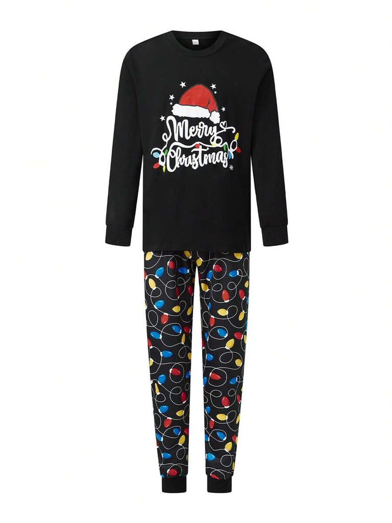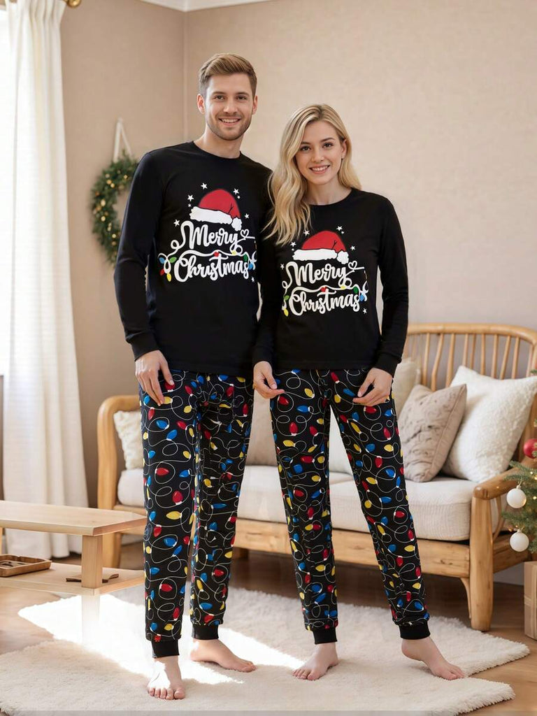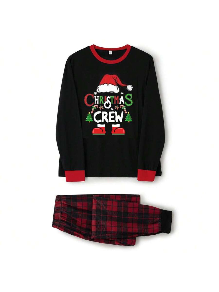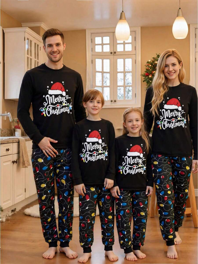 Pattern Type: Christmas. Season: Spring/Fall. Style: Unisex. Color: Black. Type: Pant Sets. Neckline: Round Neck. Sleeve Length: Long Sleeve. Sleeve Type: Regular Sleeve. Fit Type: Loose. Number of Pieces: 2 Piece Set. Sheer: No. Fabric Elasticity: Slight Stretch. Underwear & Sleepwear Users: Family. Festivals: Christmas. Length: Regular. Scenes: Daily. Material: Woven Fabric. Composition: 95% Cotton, 5% Elastane. Placket type: Pullovers. Care Instructions: Machine wash or professional dry clean. Belt: No.