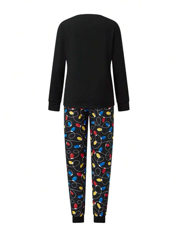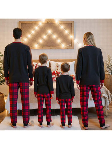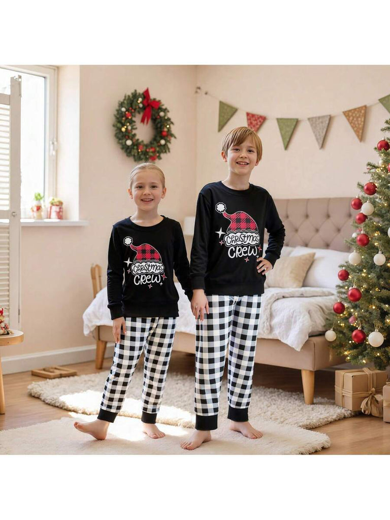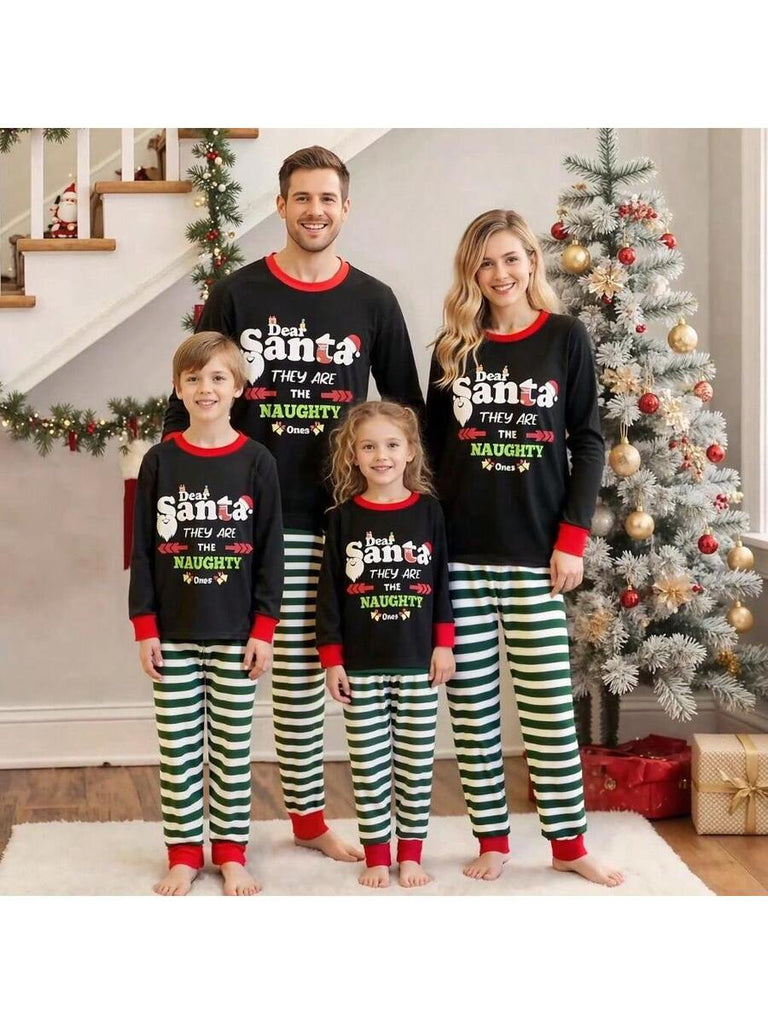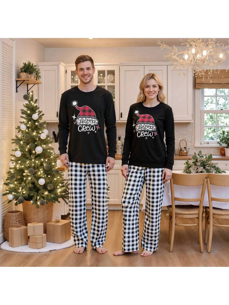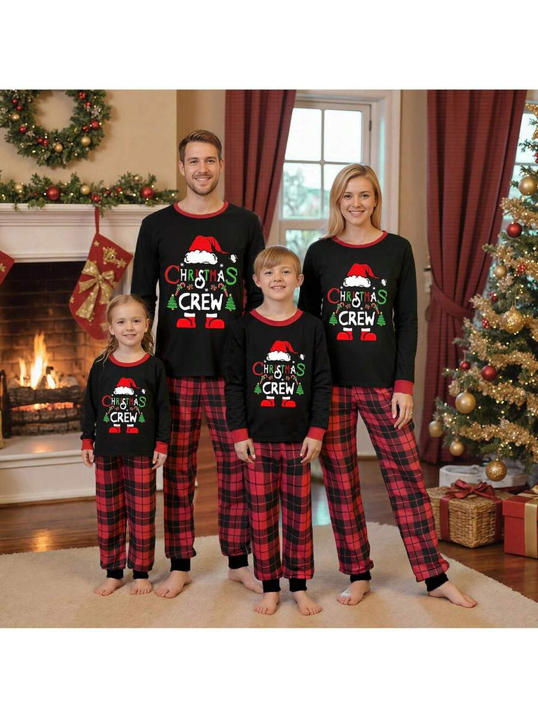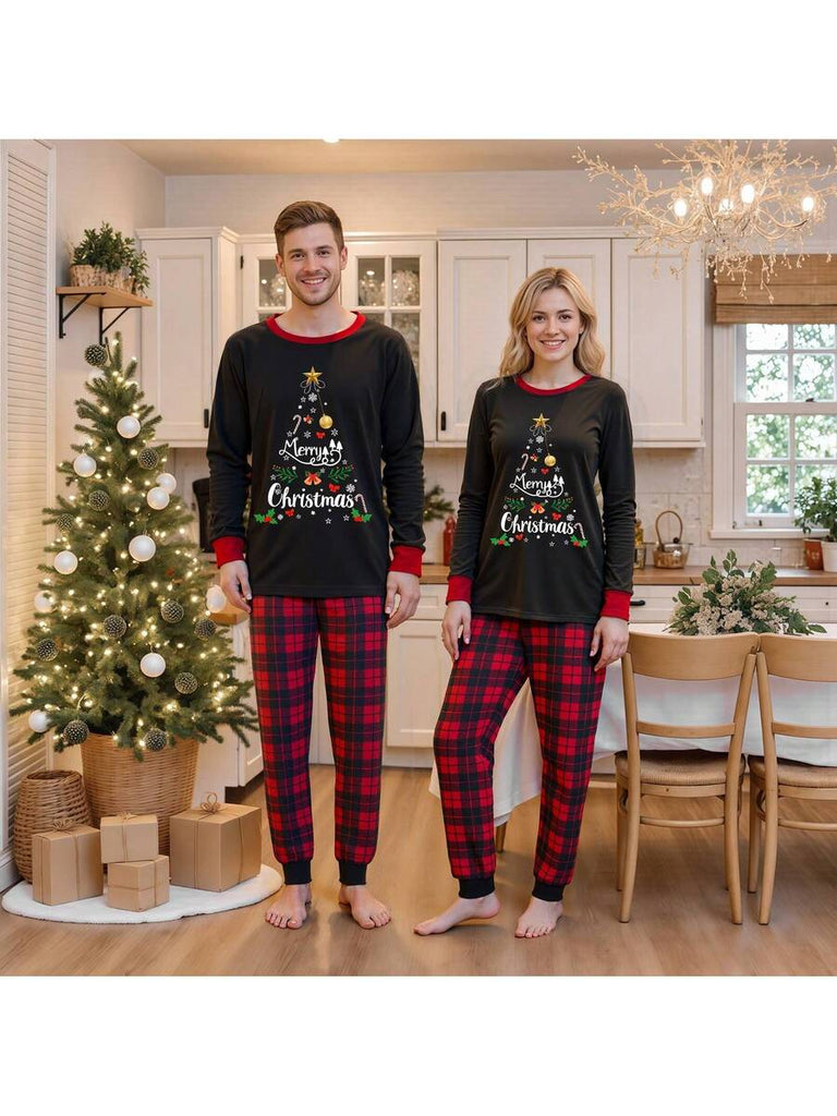 Pattern Type: Christmas. Season: Spring/Fall. Style: Unisex. Color: Black. Type: Pant Sets. Neckline: Round Neck. Sleeve Length: Long Sleeve. Sleeve Type: Regular Sleeve. Fit Type: Loose. Number of Pieces: 2 Piece Set. Sheer: No. Fabric Elasticity: Slight Stretch. Underwear & Sleepwear Users: Family. Festivals: Christmas. Length: Regular. Scenes: Daily. Material: Woven Fabric. Composition: 95% Cotton, 5% Elastane. Placket type: Pullovers. Care Instructions: Machine wash or professional dry clean. Belt: No.