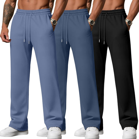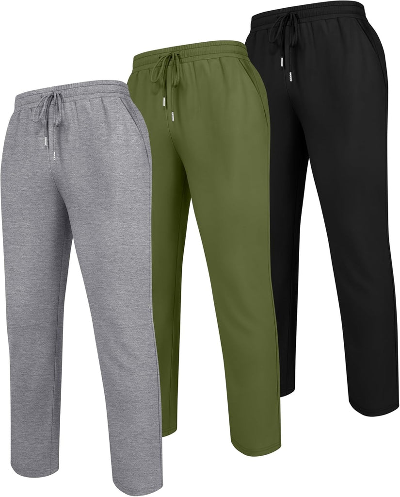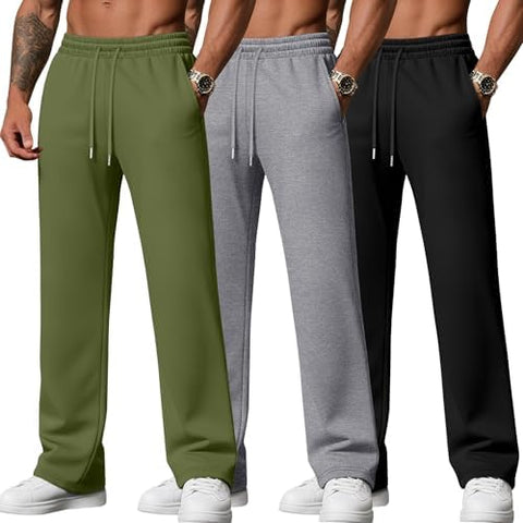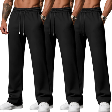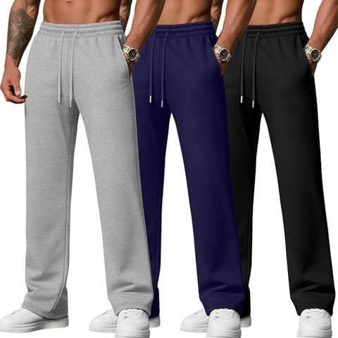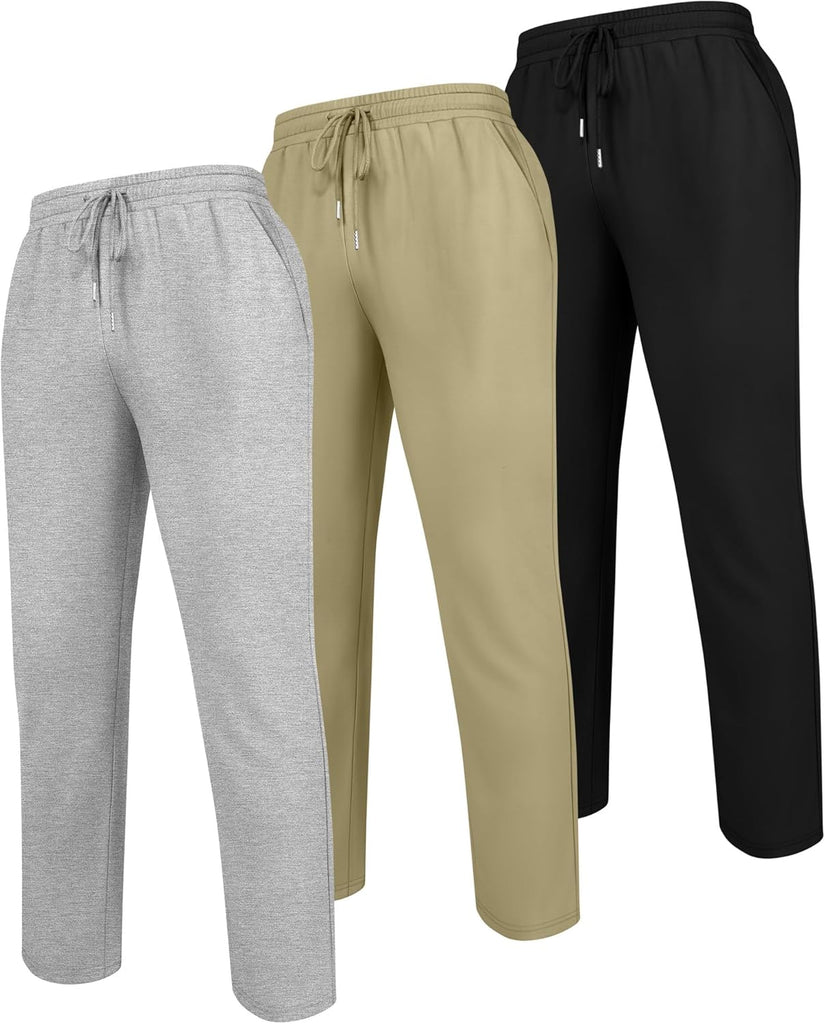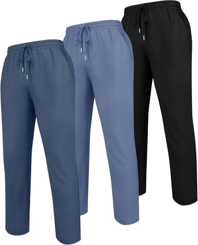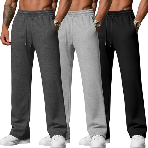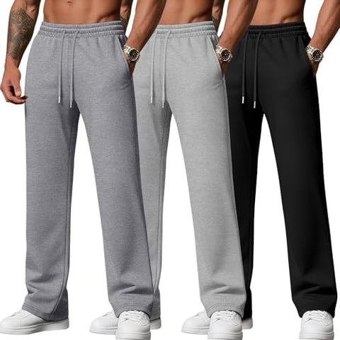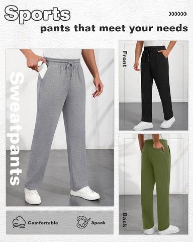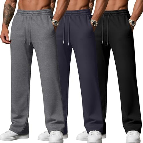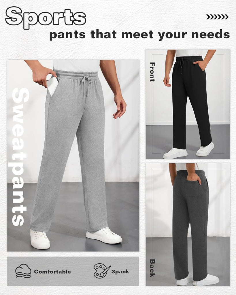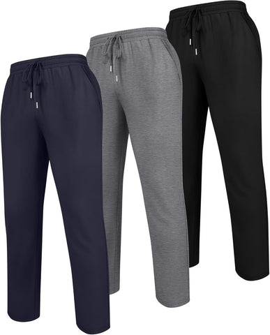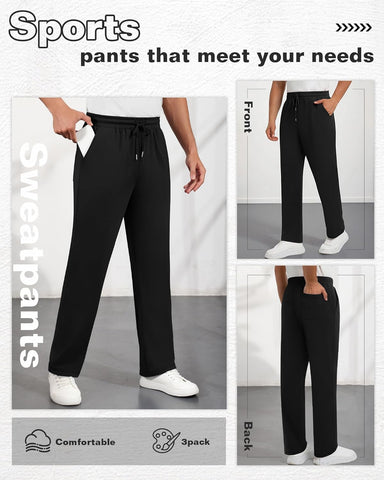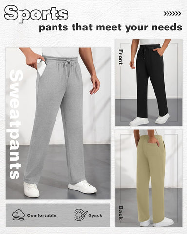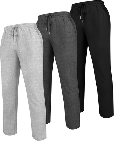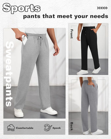 3 Pack Men's Sweatpants Athletic Lounge Pants Open Bottom Yoga Baggy Casual Drawstring Lightweight Joggers with Pockets