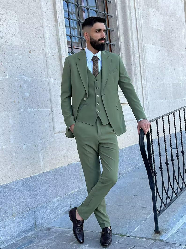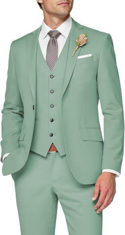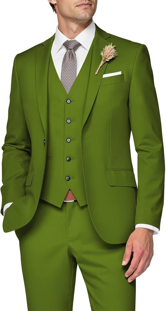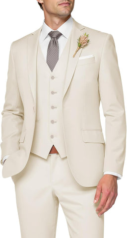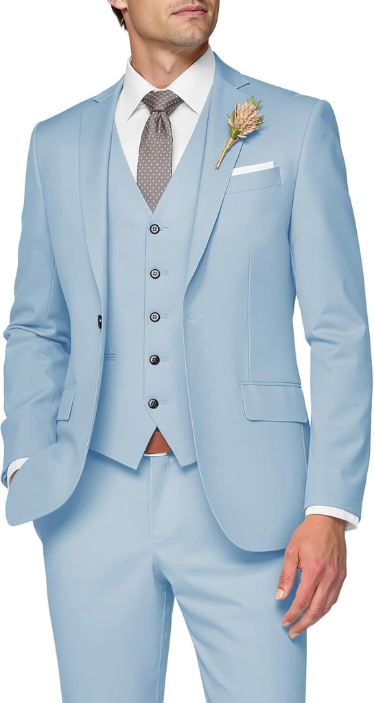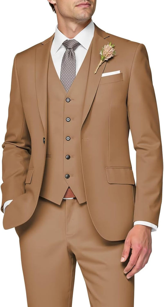 3 Piece Suit Men Slim Fit Wedding Suits for Mens Elegant One Button Jacket Single Breasted Vest Pants Set