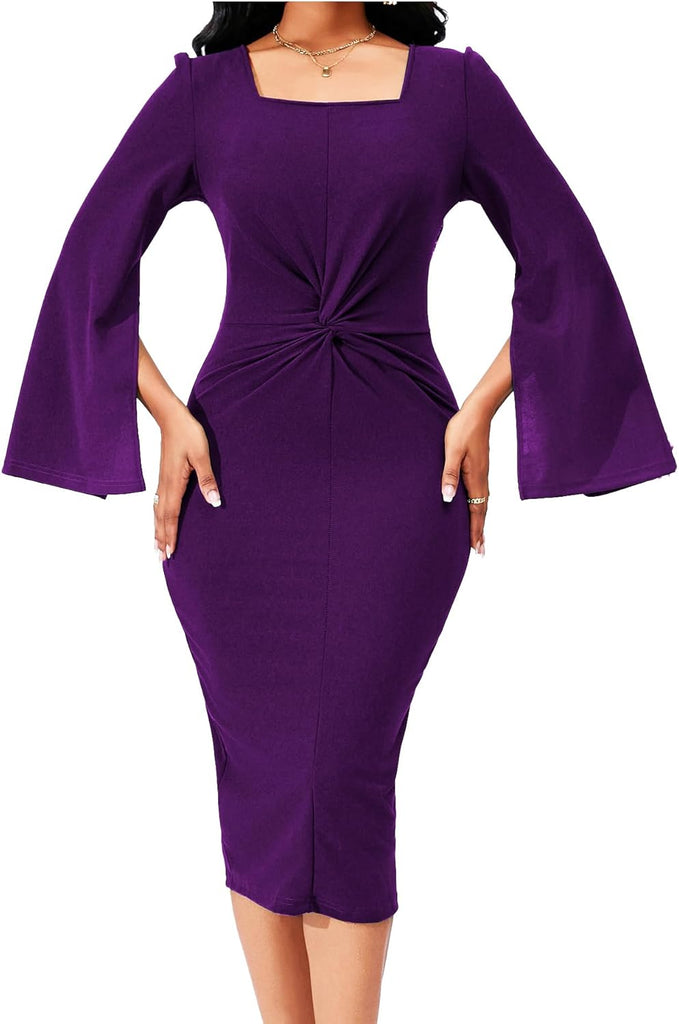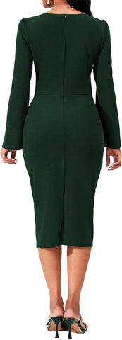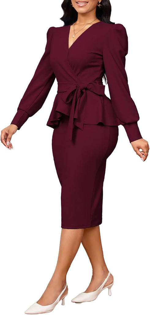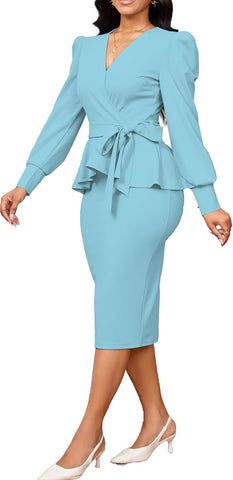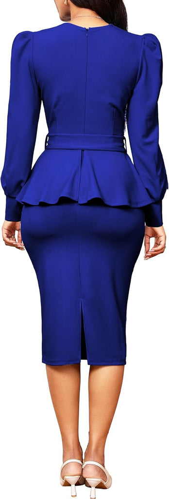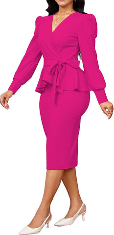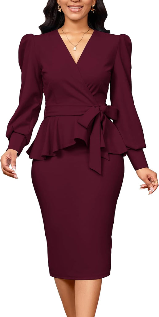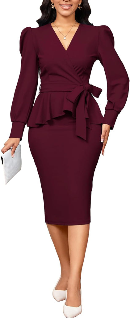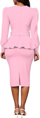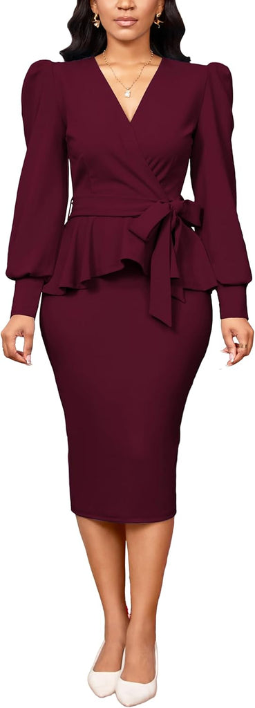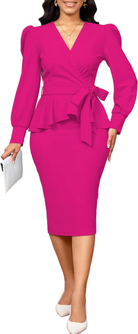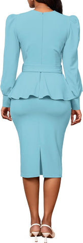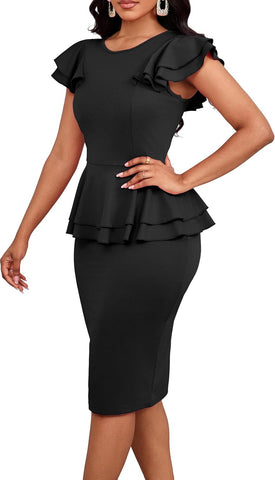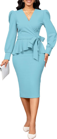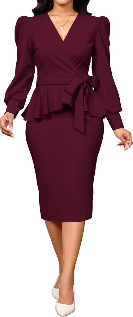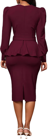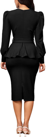 Elegant Dresses for Women Sexy Church Long Ruffles Sleeve Business Pencil Vintage Peplum Dress Wear to Work